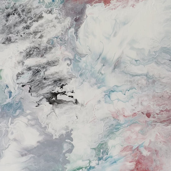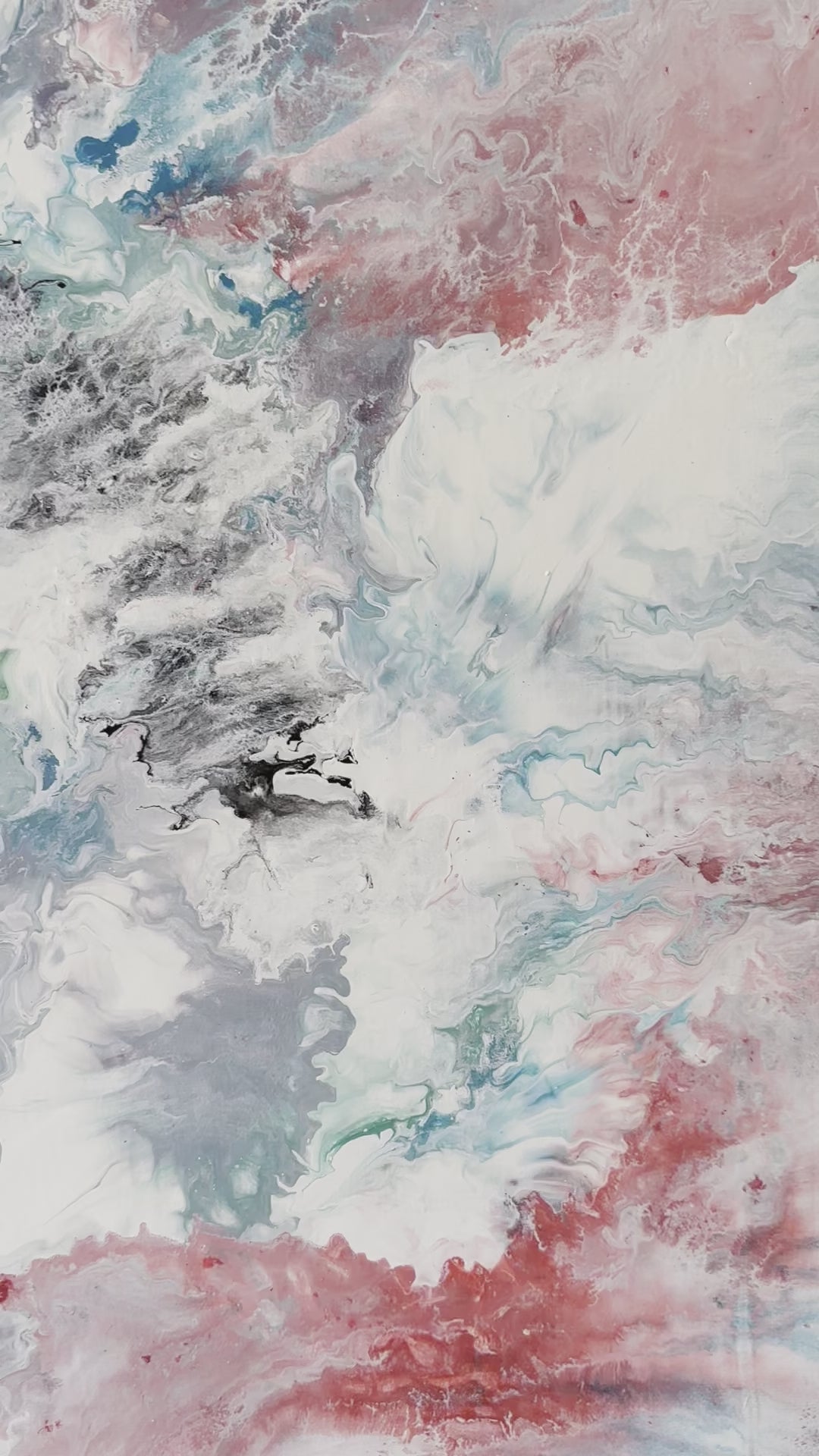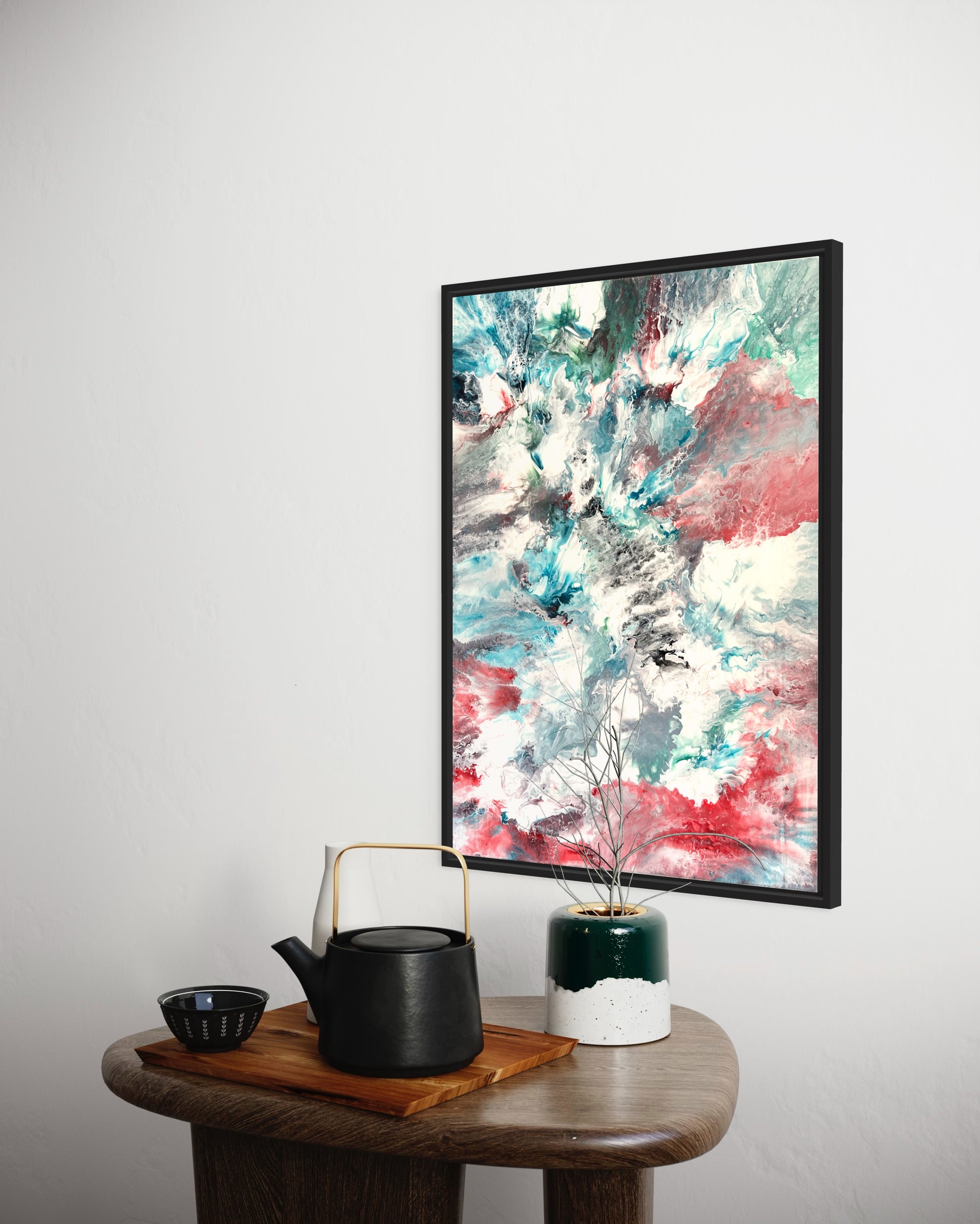 Ik nodig je uit om de fascinerende wereld van verandering te ontdekken met mijn kunstwerk "Van vuur tot ijs". Dit abstracte schilderij, 50x70 cm omgeven door een elegante zwarte lijst, legt de spannende transformatie van vuur naar ijs vast in een levendig kleurenpalet.