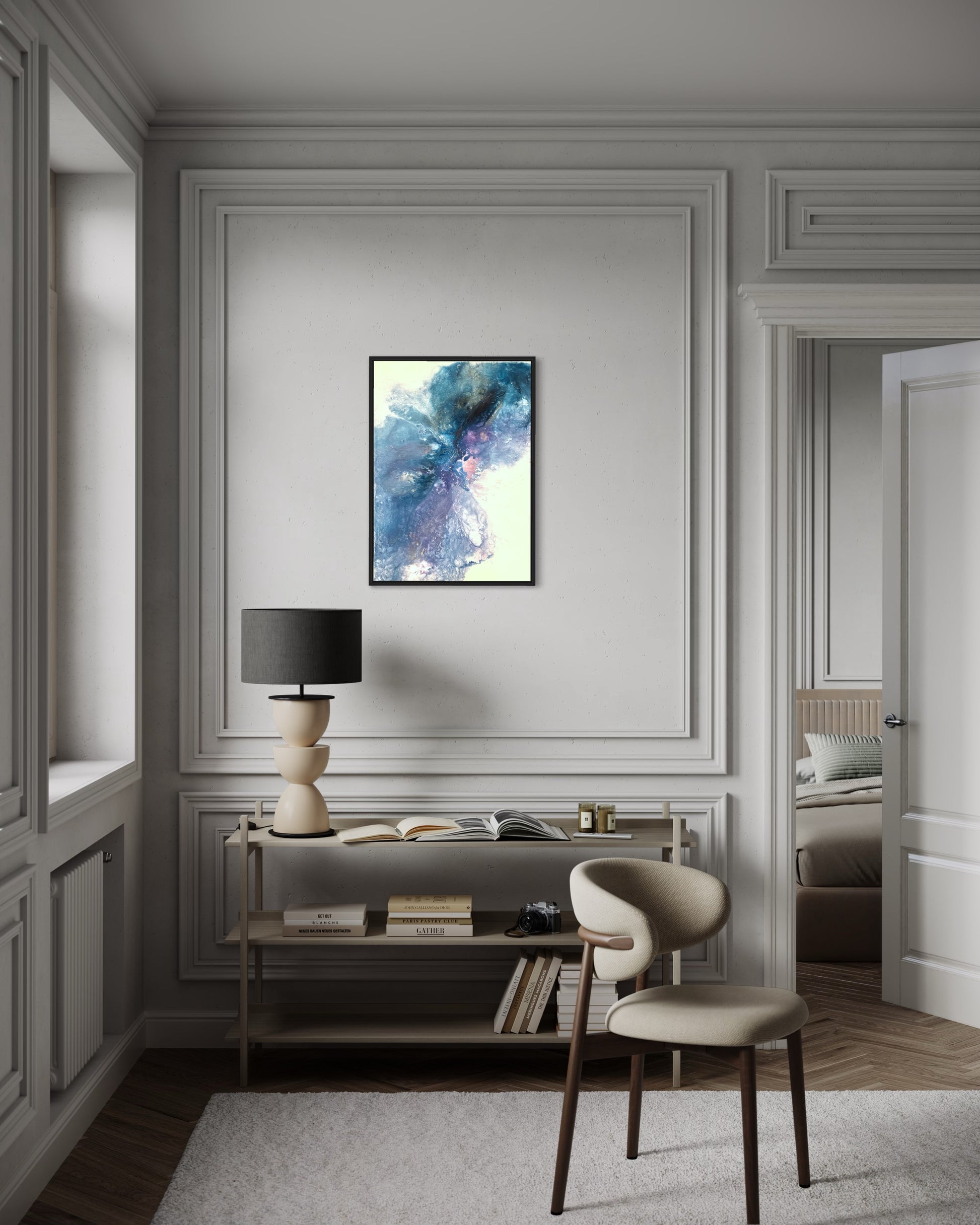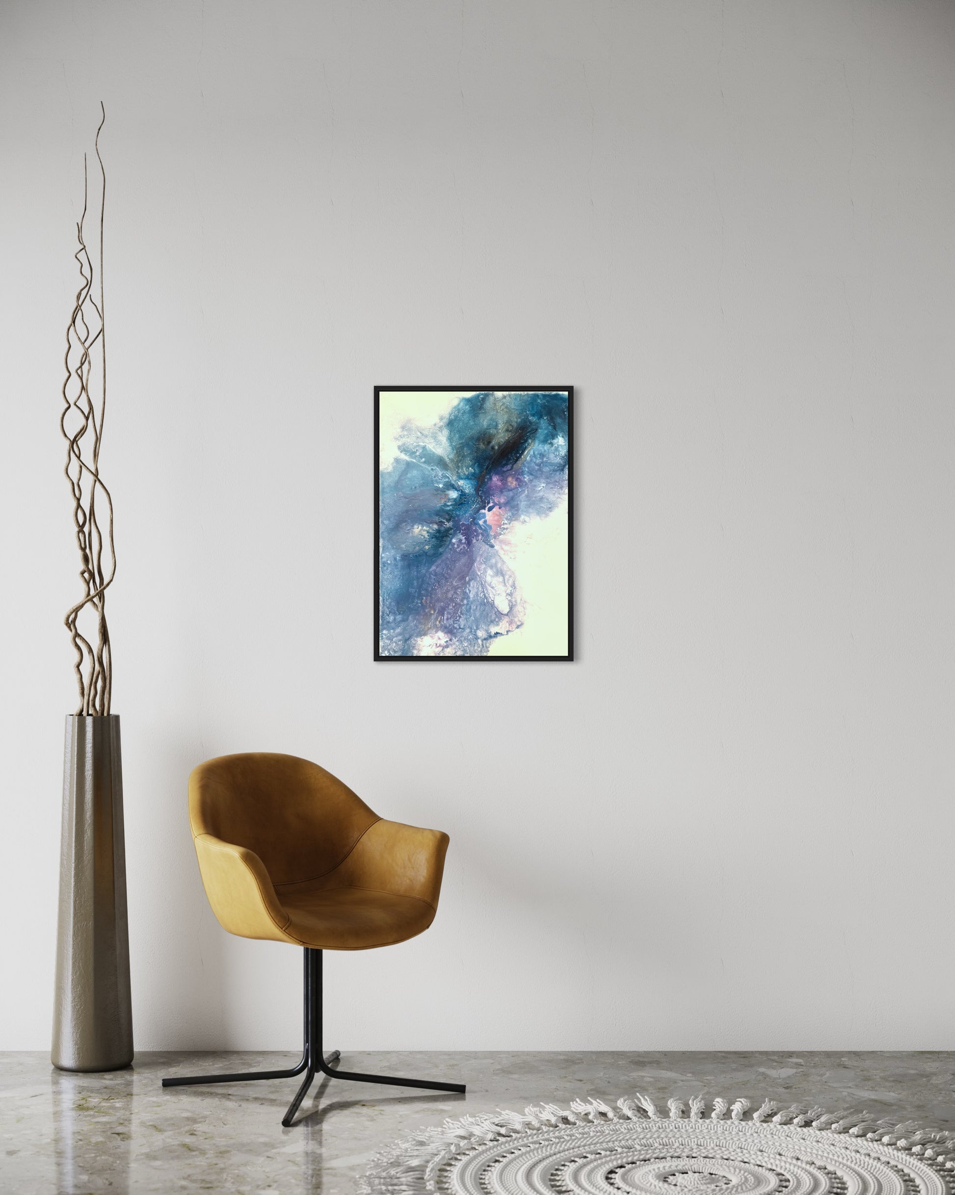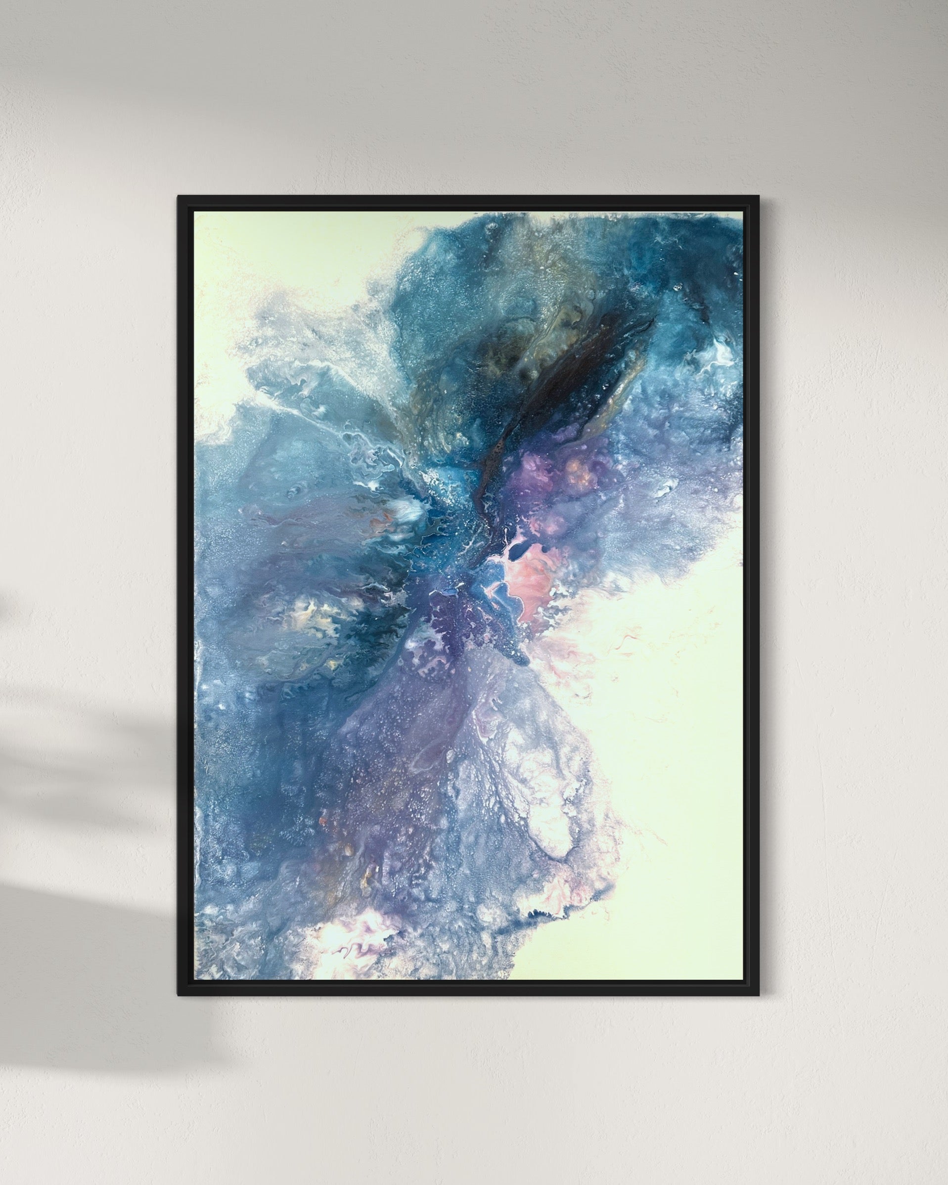 Laat je betoveren door "Wings of Fantasy" - een fascinerend abstract schilderij in de kleuren donkerblauw, paars en wit. Met een afmeting van 70x50 cm nodigt dit kunstwerk je uit om jezelf onder te dompelen in een wereld van verbeelding. Elk kleurverloop en elke vloeiende beweging wekt de indruk van een magisch landschap dat op een vlinder lijkt en je een gevoel van lichtheid en vrijheid geeft.