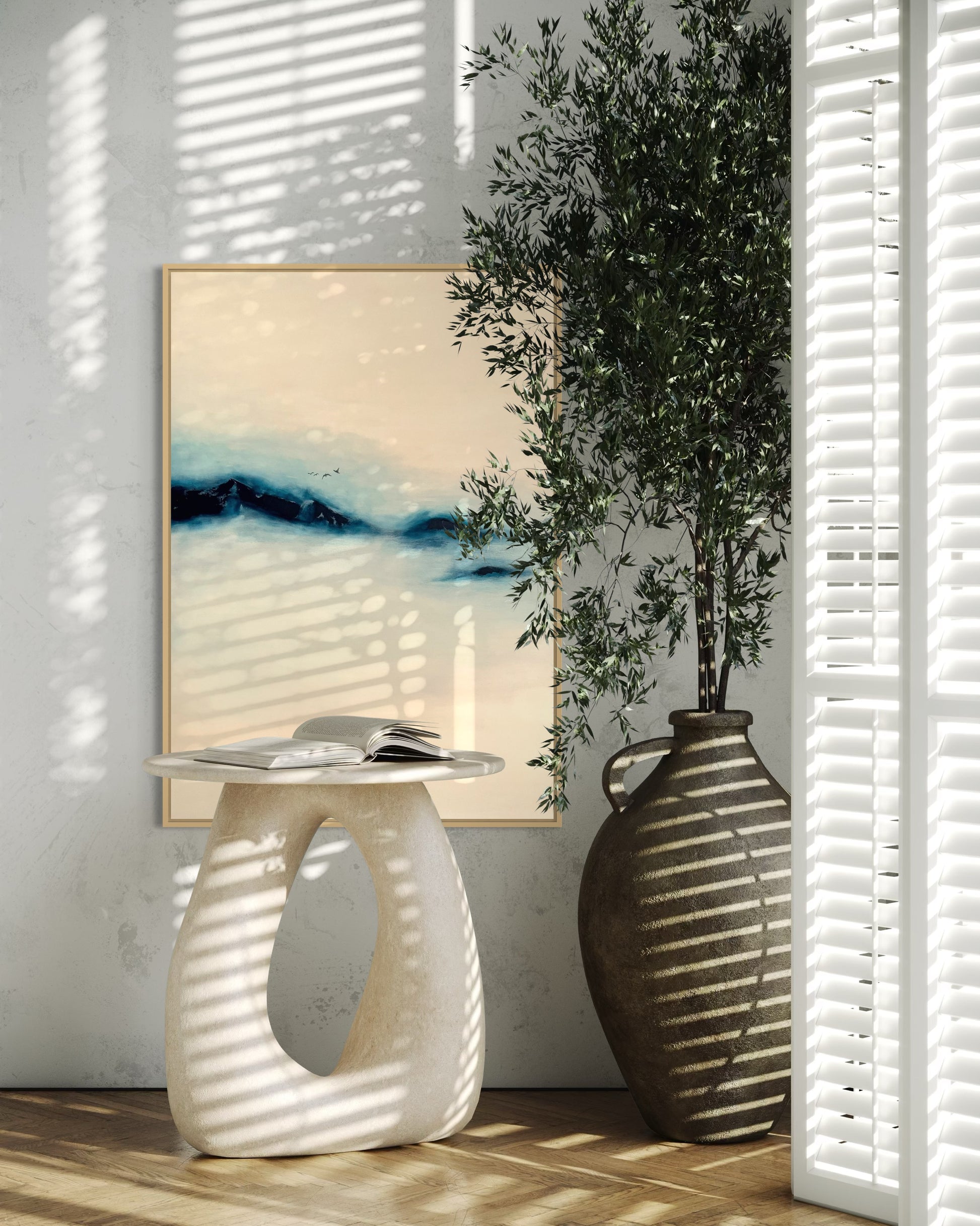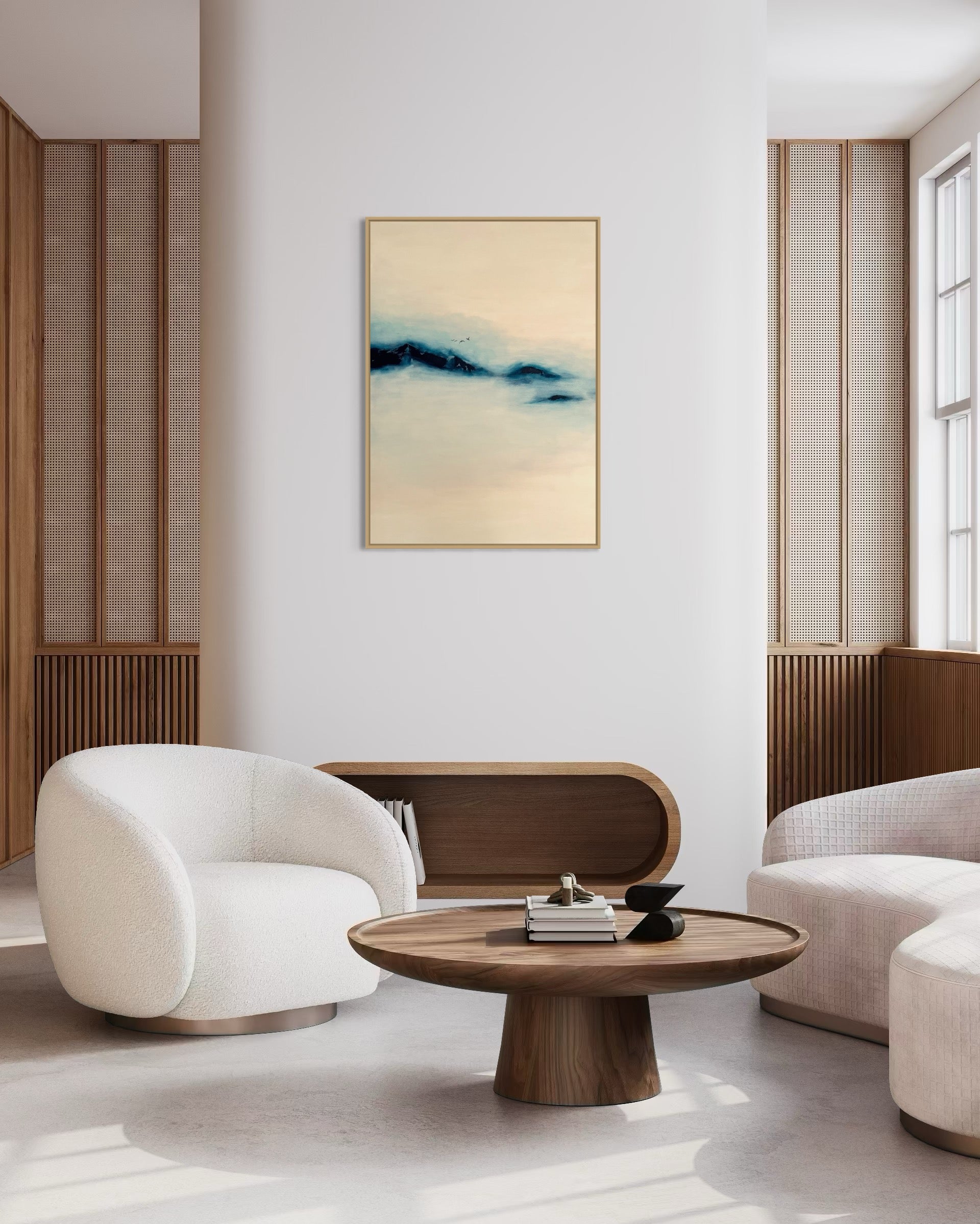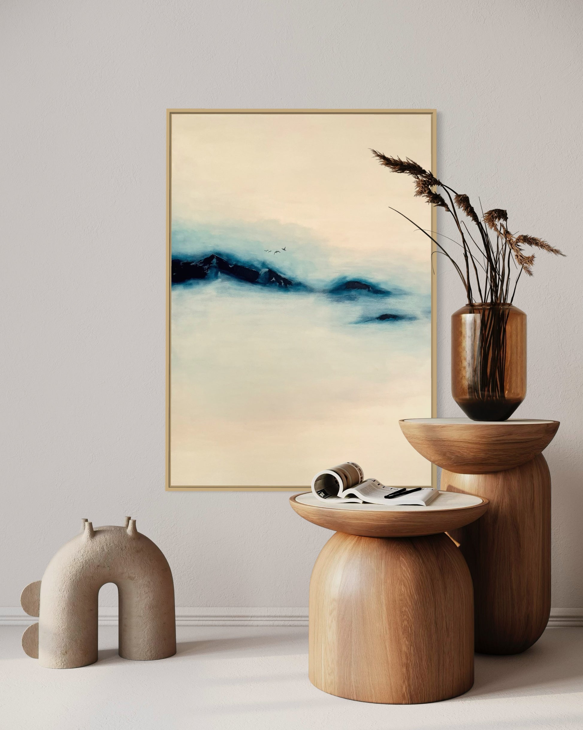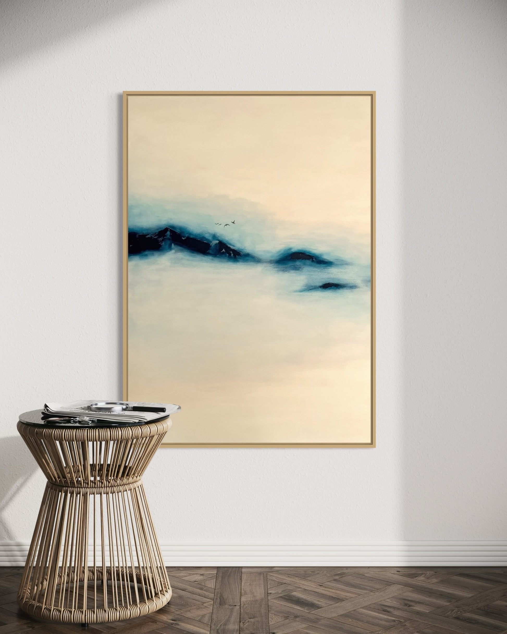 Zacht, zwevend en vol rust – het kunstwerk "Soar" voert de kijker mee in een sfeer van lichtheid en ruimtelijkheid. Geïnspireerd door de balans tussen hemel en aarde, roept het beeld een gevoel van vrijheid op, terwijl subtiele kleurverlopen en delicate structuren een kalmerende harmonie creëren.