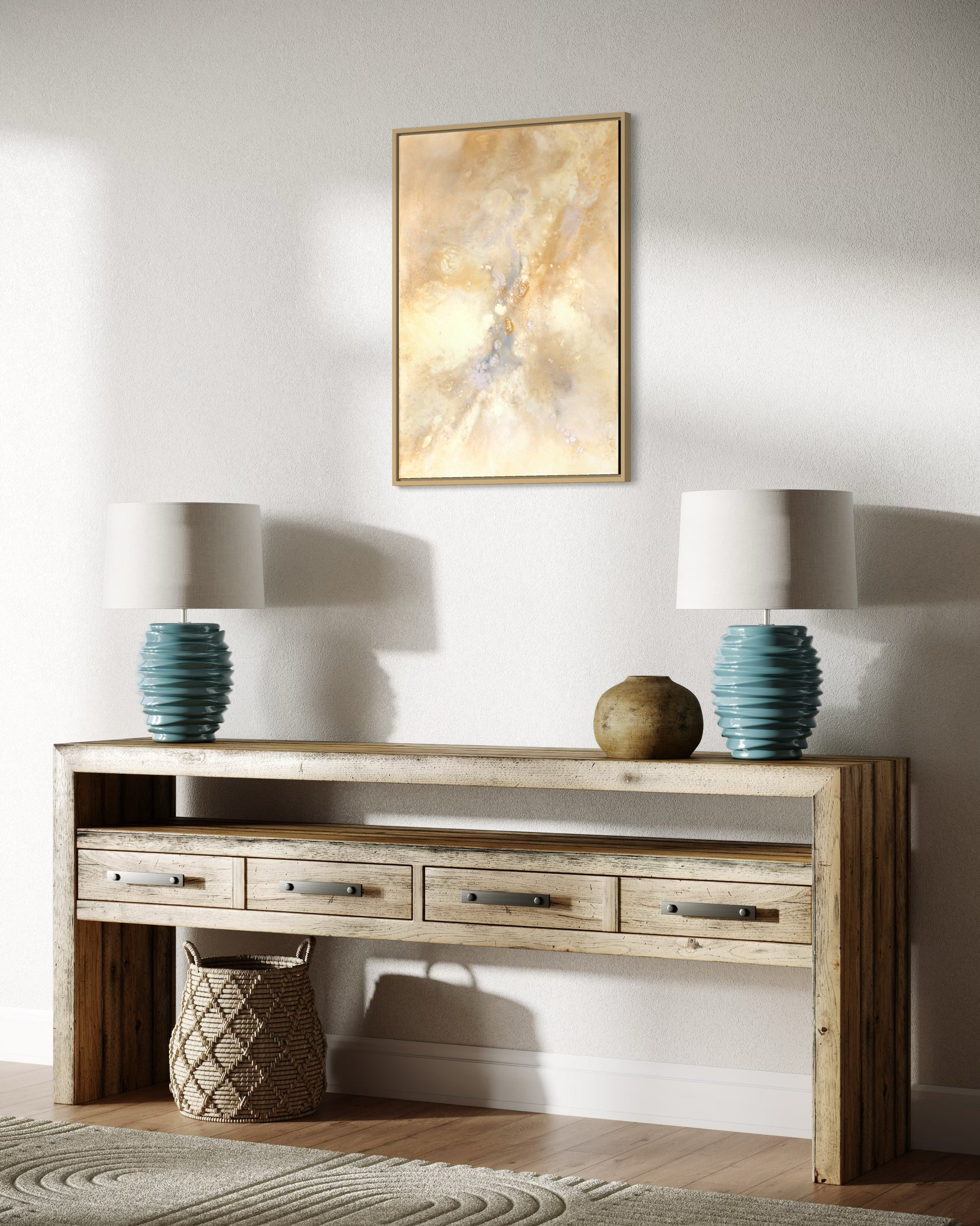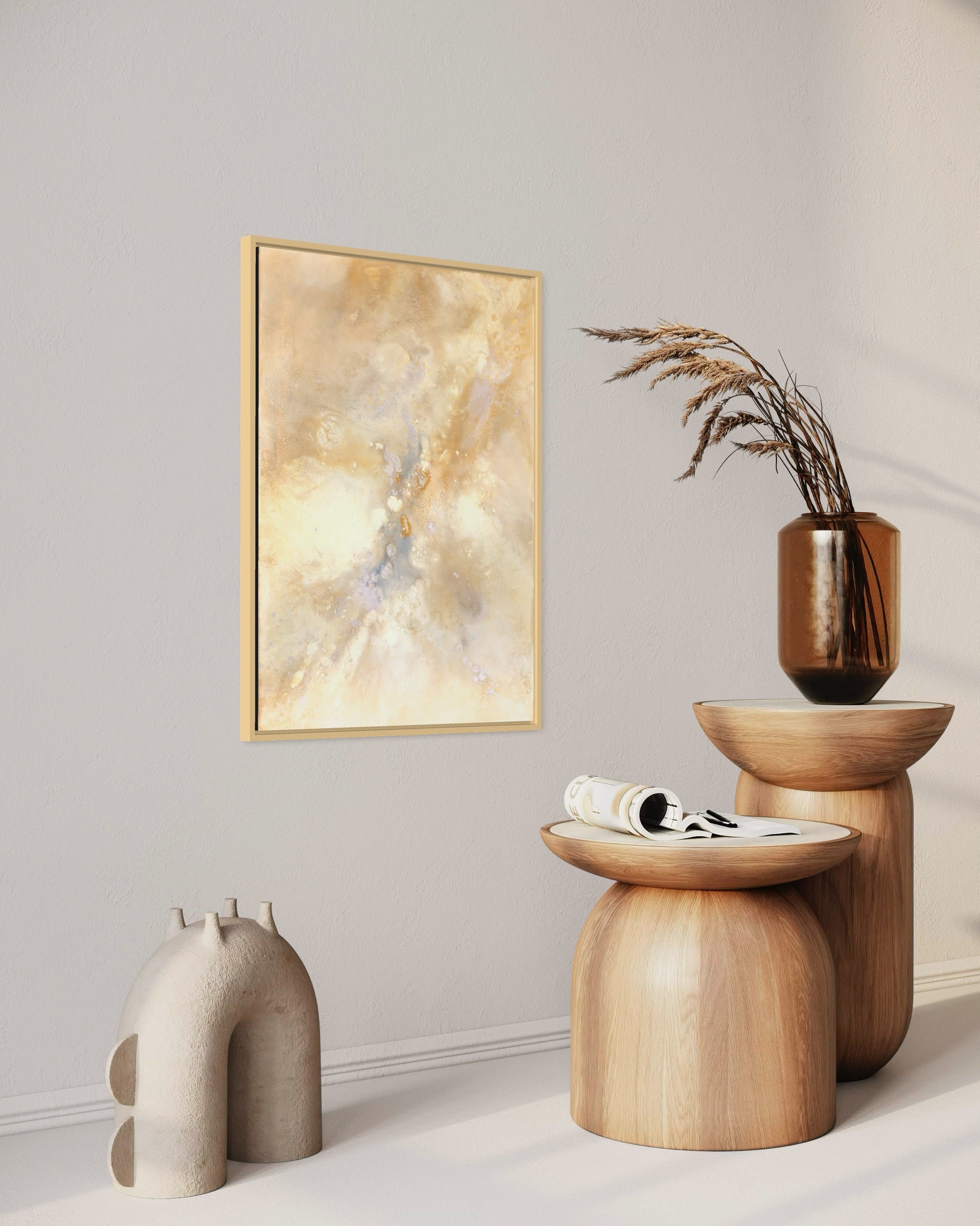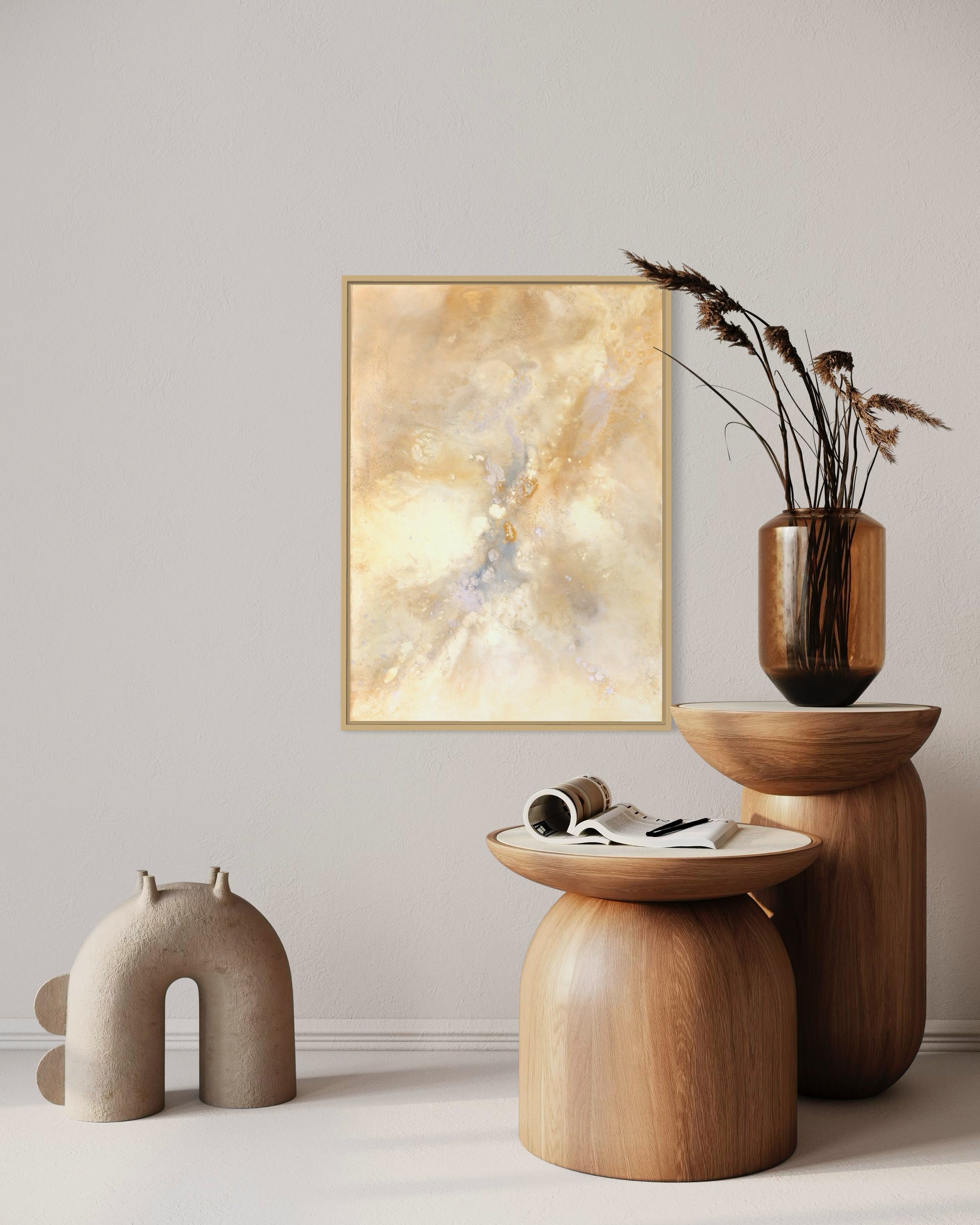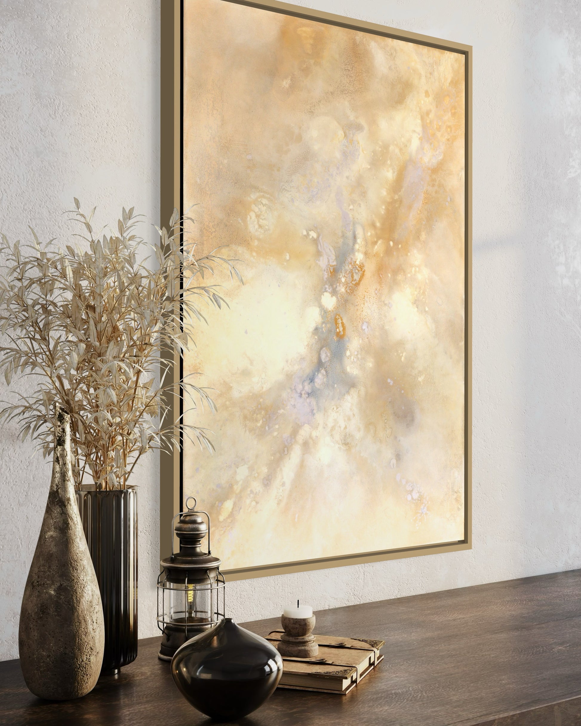 Elysium vangt de magie van een ideale plek die symbool staat voor verlangen en vernieuwing. De zachte kleurovergangen en dynamische penseelstreken weerspiegelen de harmonieuze verbinding van leven en emoties. Dit kunstwerk is niet alleen een verrijking voor je interieur, maar ook een bron van inspiratie en rust.