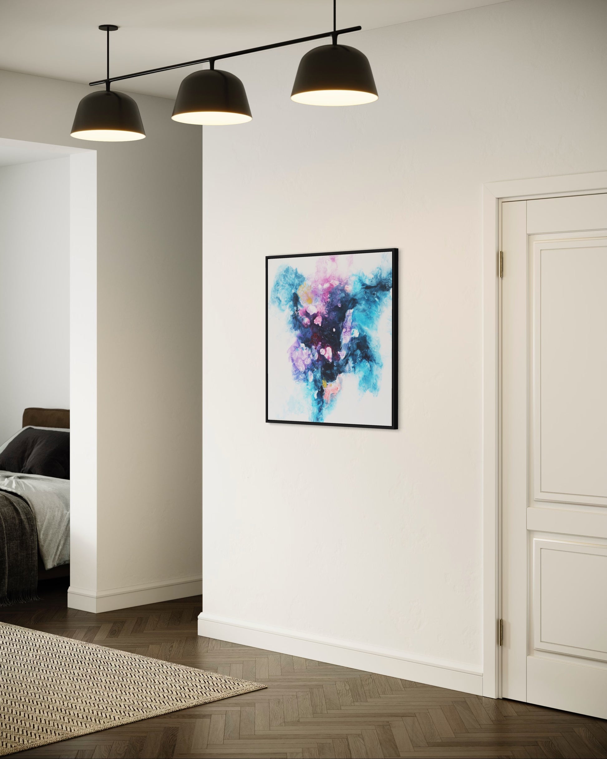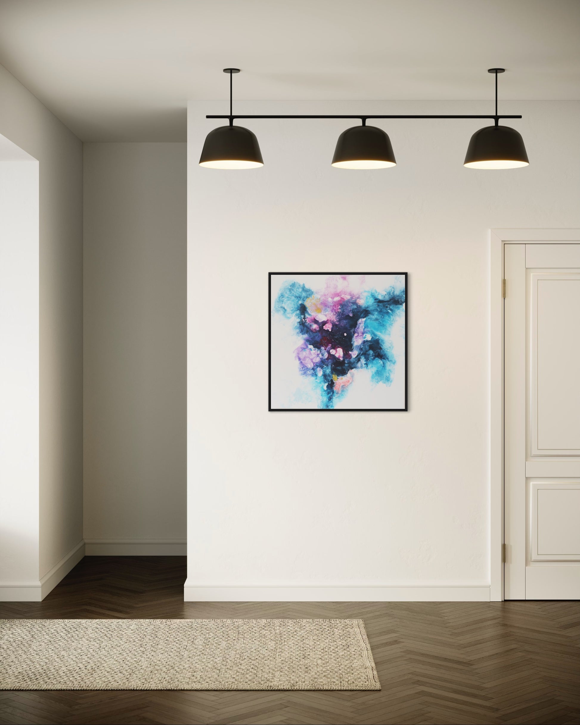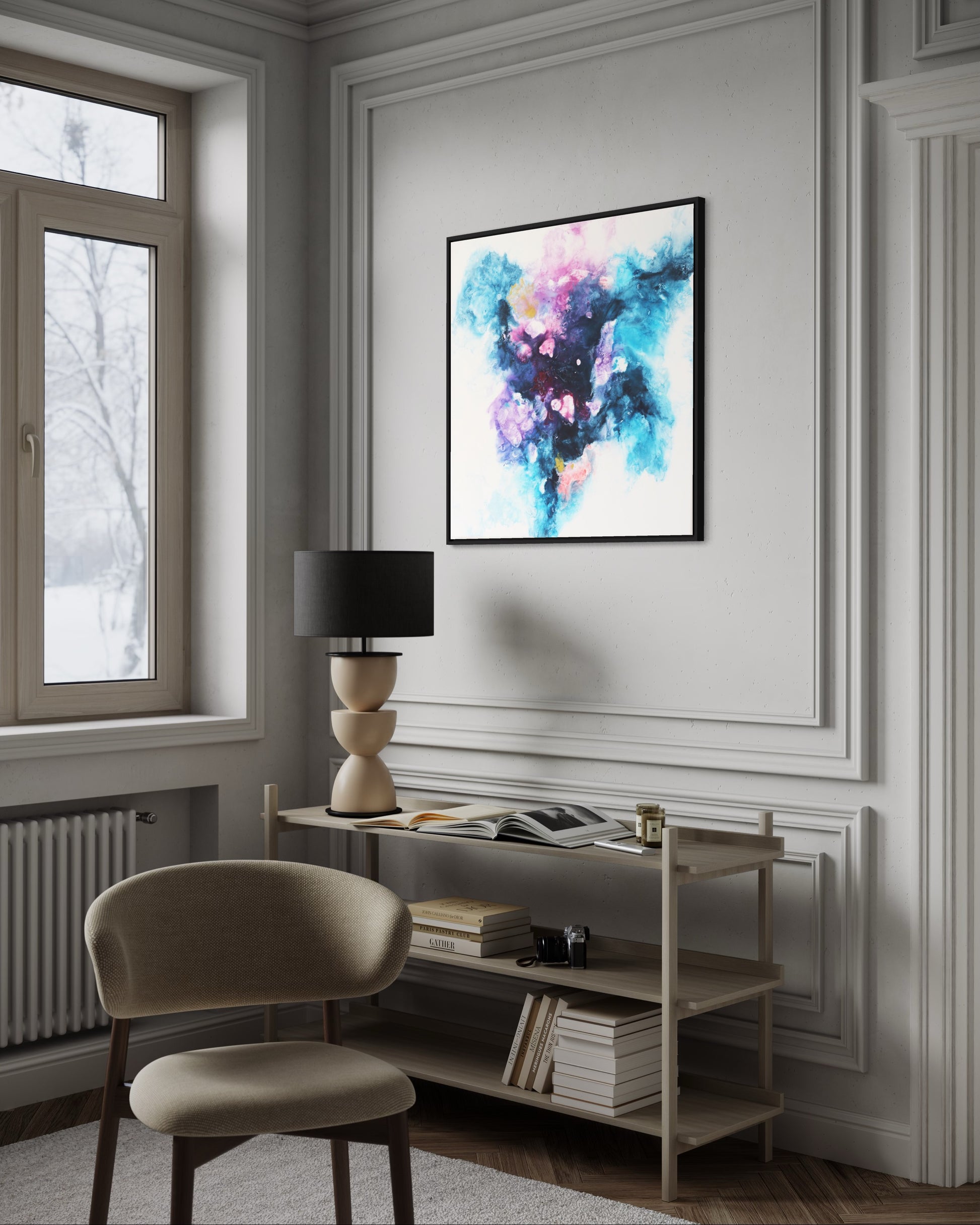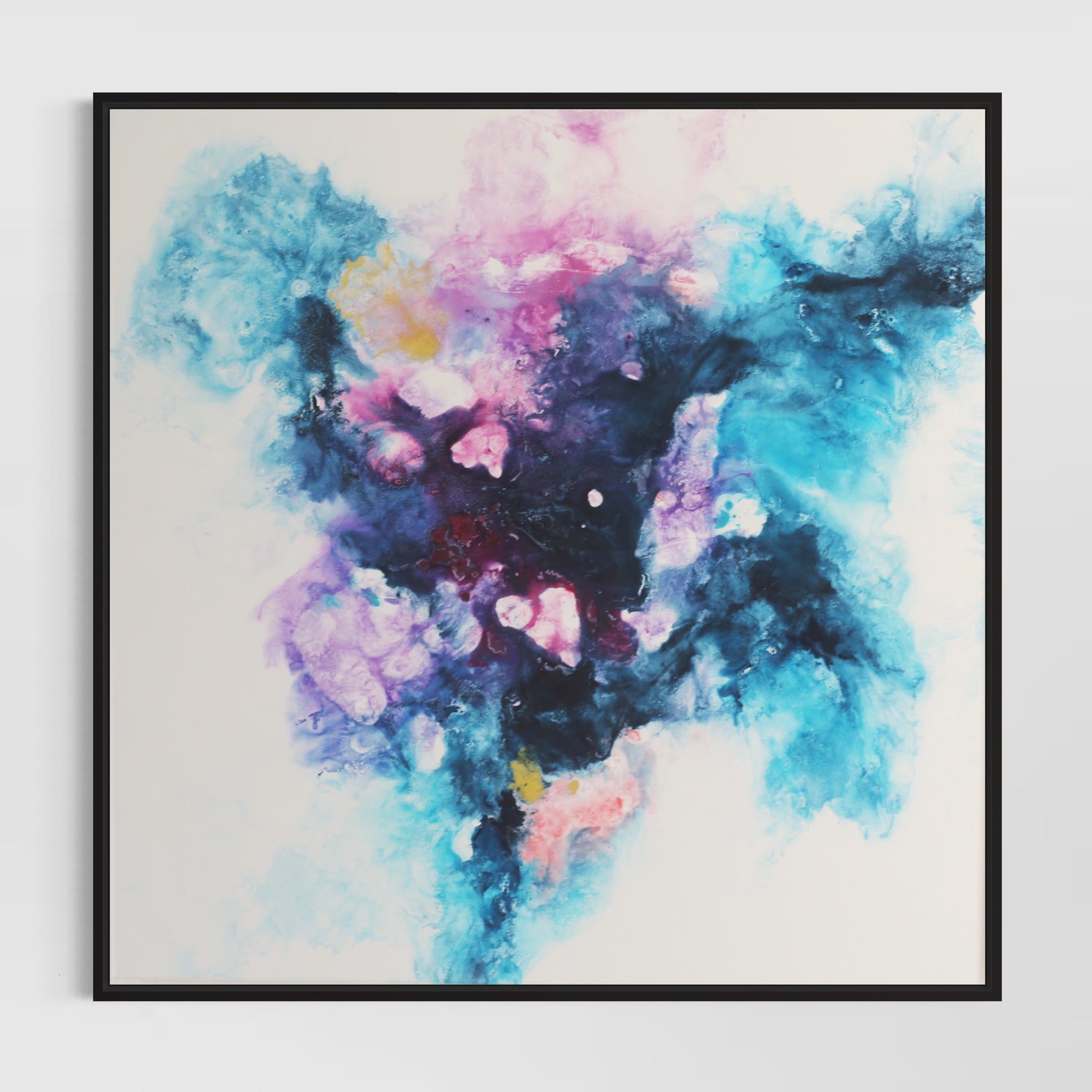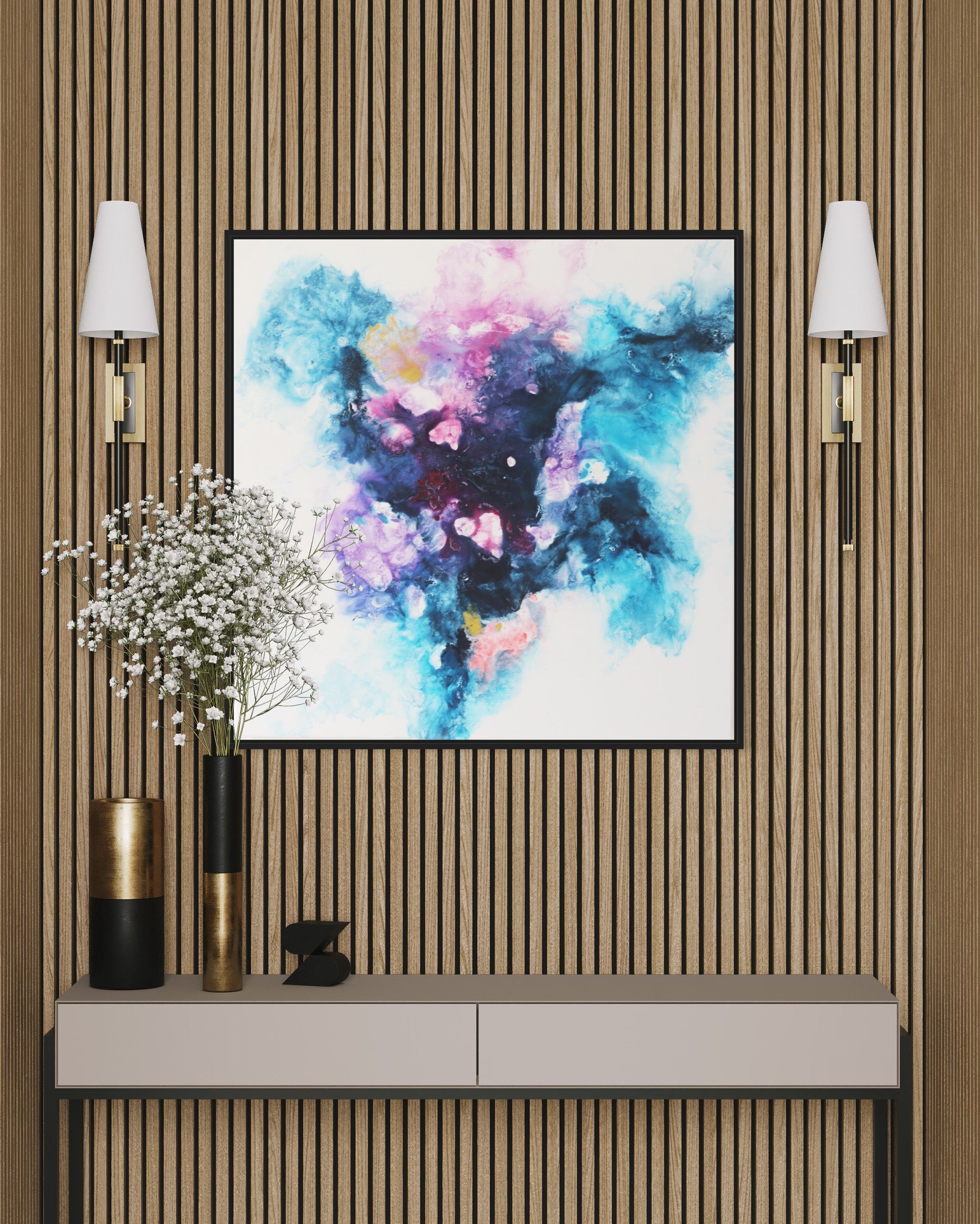 Transformeer je ruimte met 'Sphere', een betoverend abstract acrylschilderij op canvas, meesterlijk vervaardigd met behulp van de tegeltechniek. Dit prachtige kunstwerk, met een afmeting van 80x80 cm, heeft een levendige mix van blauwe, paarse en roze tinten, waardoor een dynamische en etherische compositie ontstaat die elke kunstliefhebber zal bekoren.