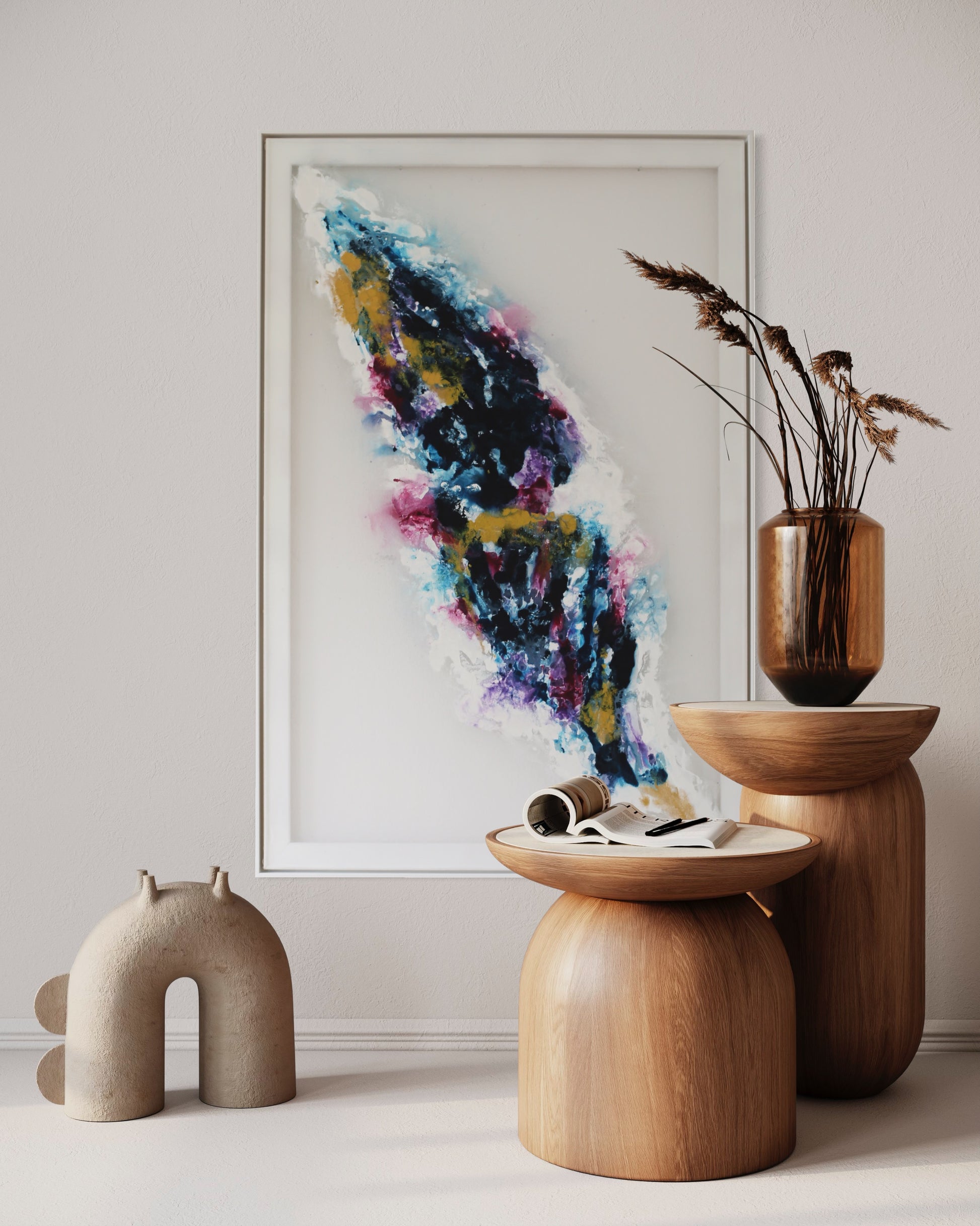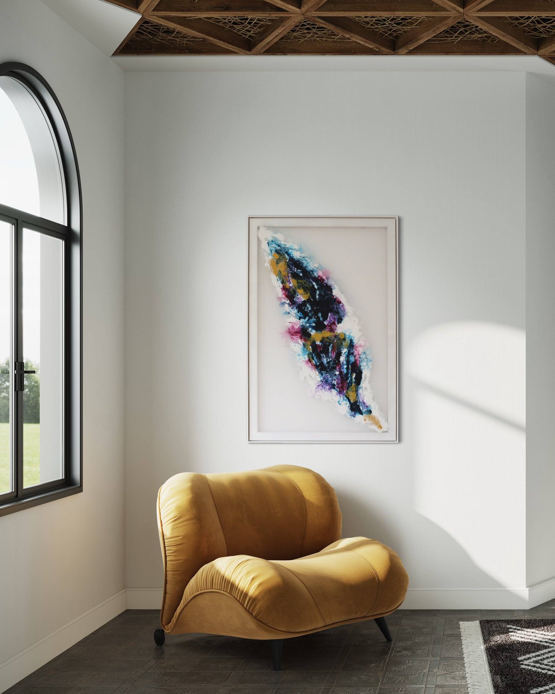 De witte lijst die wordt meegeleverd, benadrukt het kunstwerk stijlvol en past perfect in elke interieurstijl, of het nu modern, minimalistisch of klassiek is.