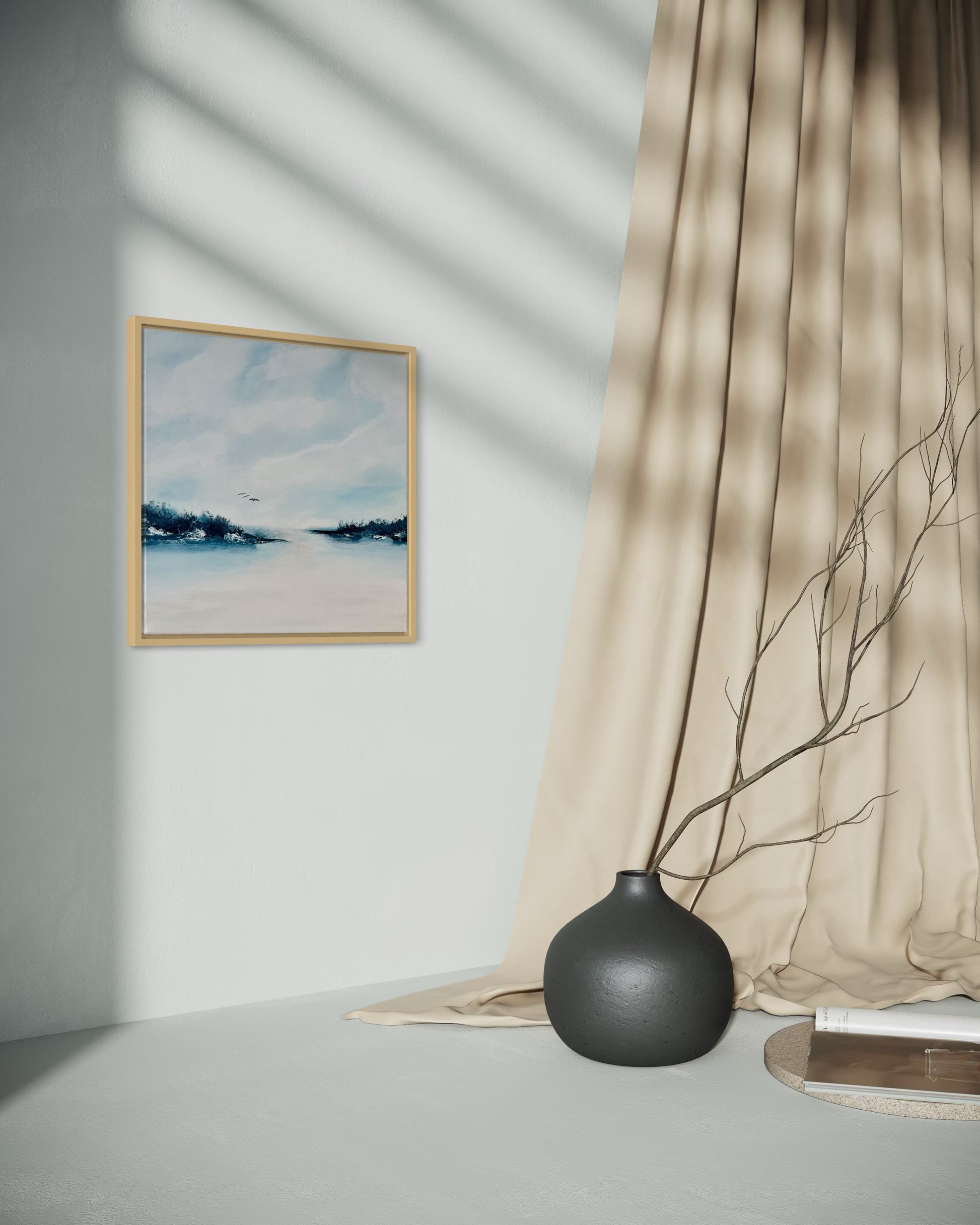Een schilderij dat de lichtheid van het moment vastlegt: " Breeze " geeft elke kamer een zachte, onopvallende elegantie.