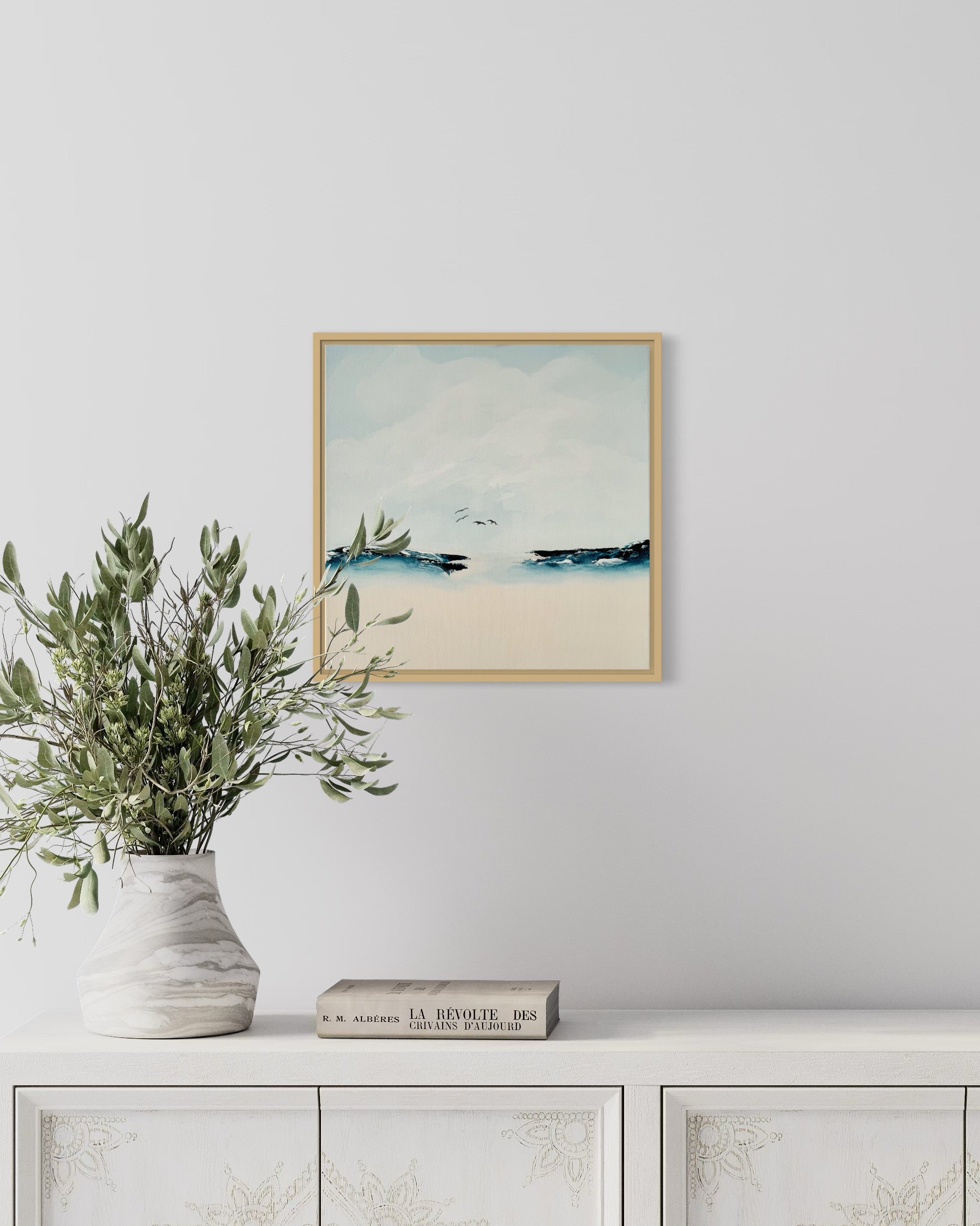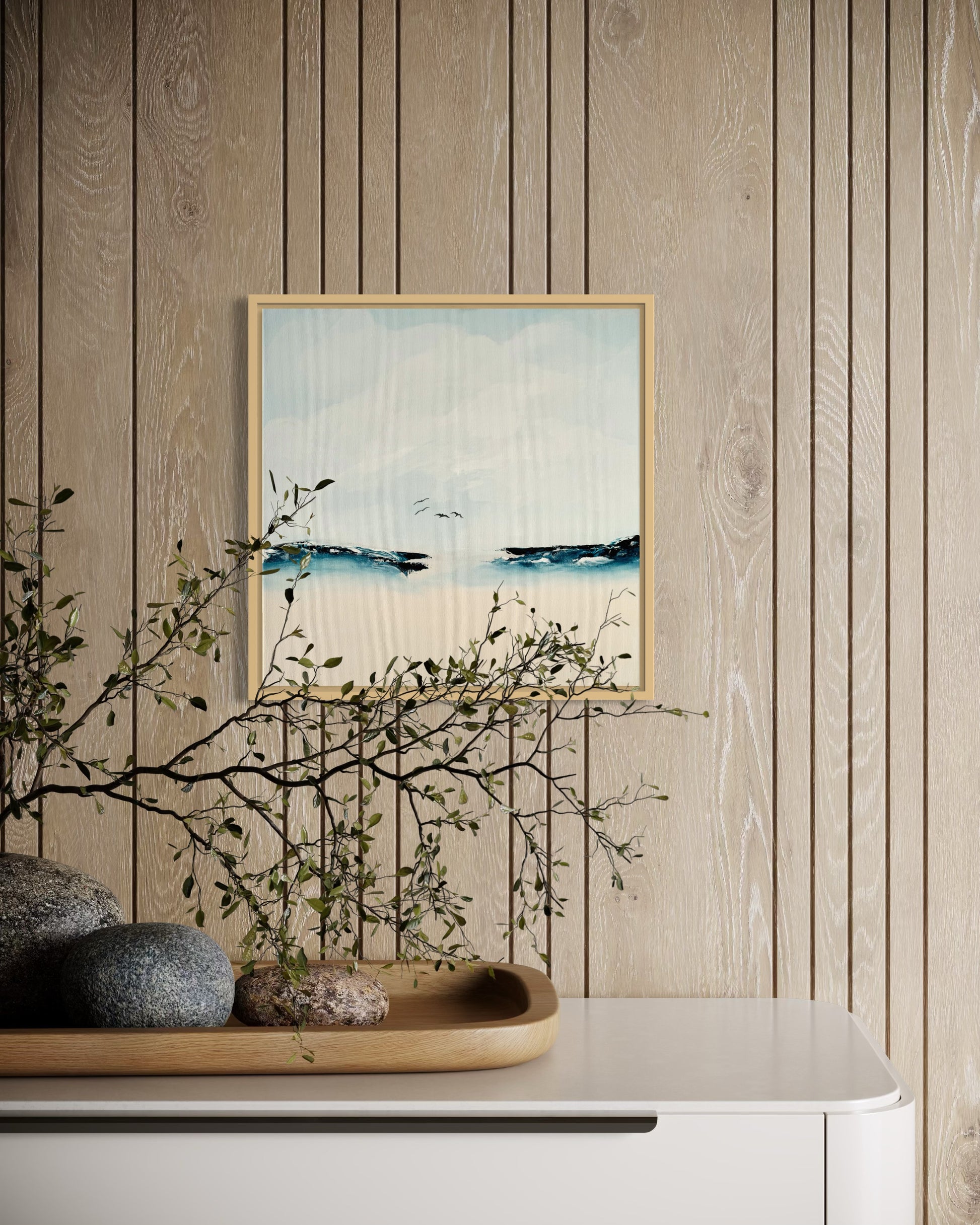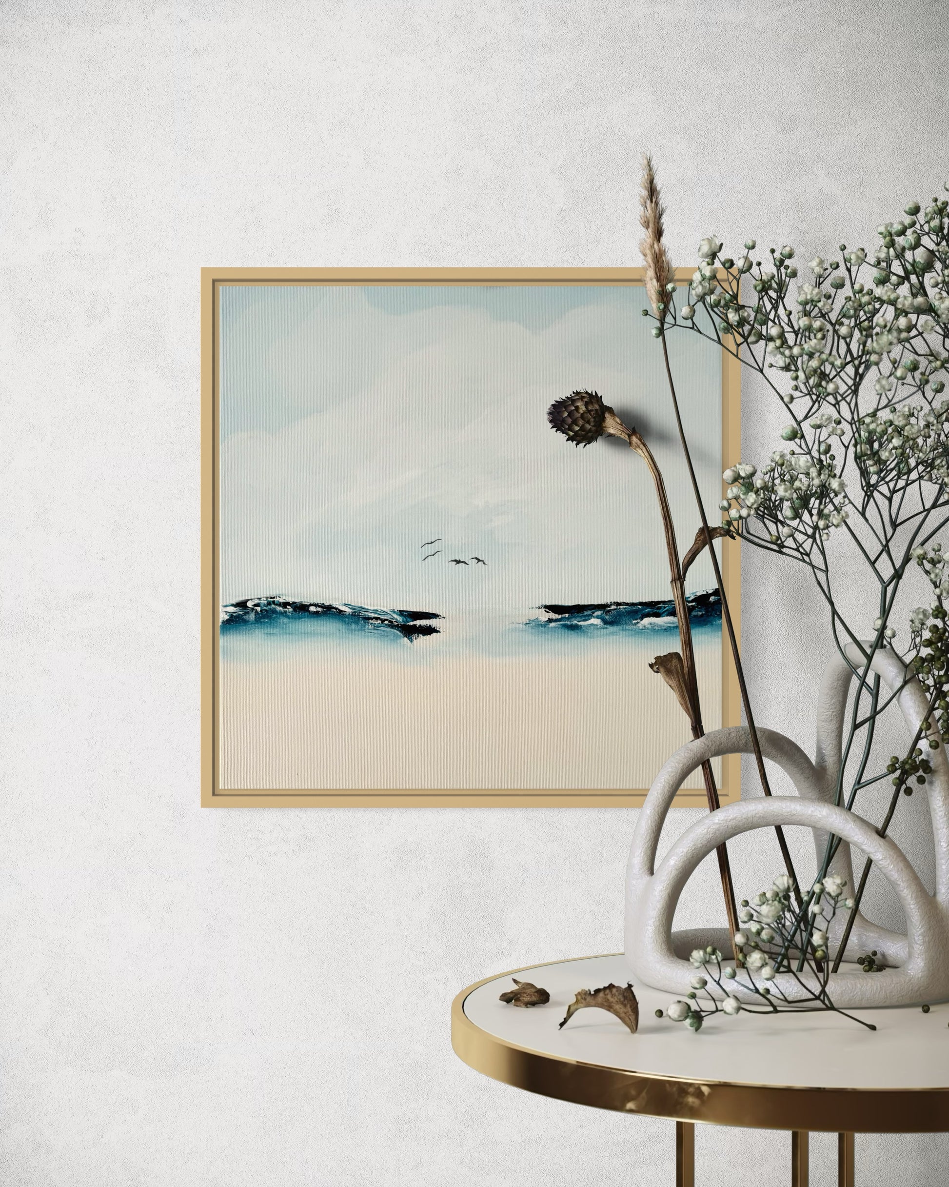 "Freedom" legt een moment van rust en ruimte vast. Met zachte kleuren en strakke lijnen brengt dit schilderij een eenvoudige maar krachtige sfeer in je kamer. Het nodigt je uit om even stil te staan en de dagelijkse sleur los te laten.