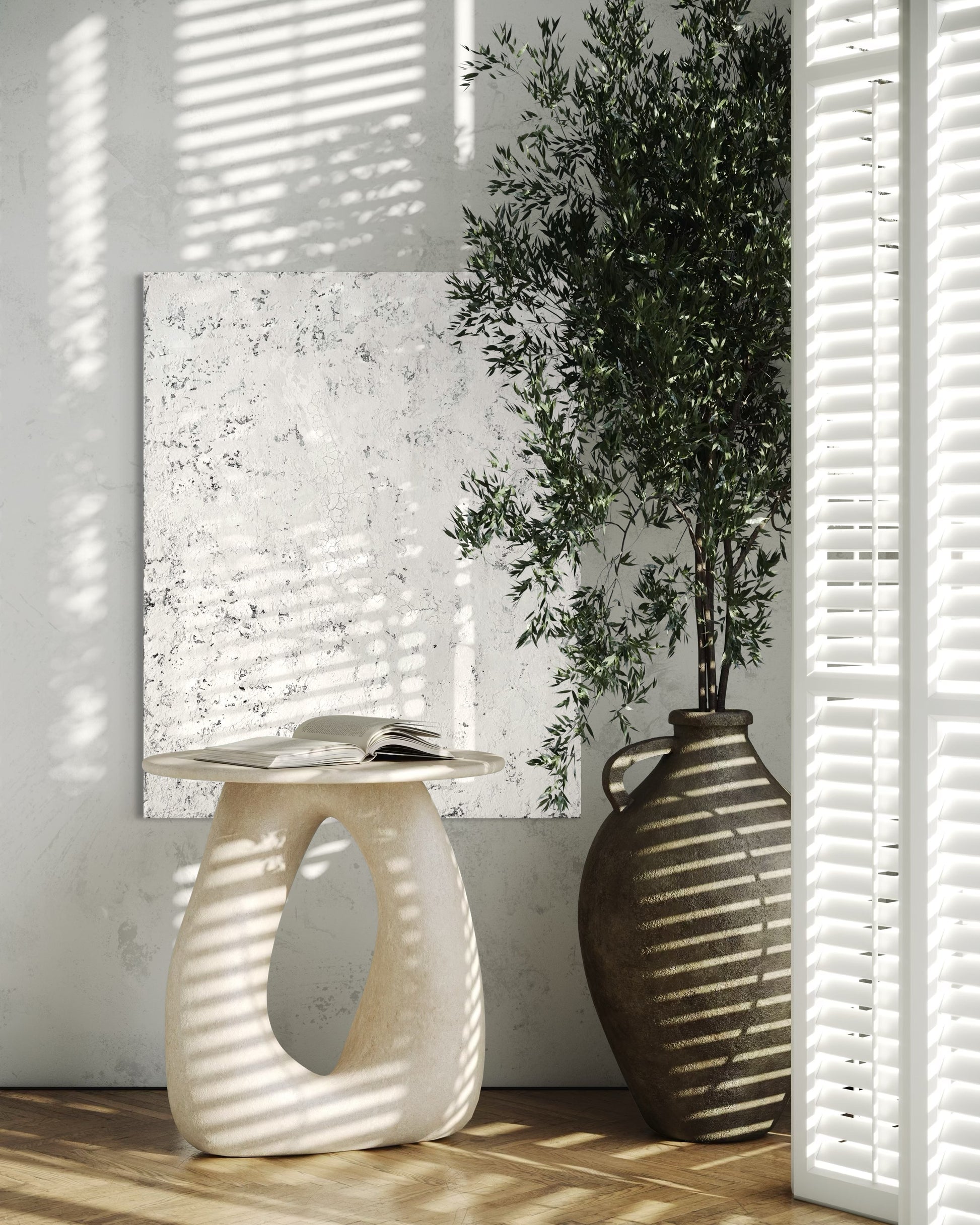 "Tranquil Light" is een modern, getextureerd acrylschilderij uit de Wabi-Sabi-serie . Met zachte witte tinten en diepzwarte accenten creëert het een elegant spel van licht en schaduw . Het gestructureerde oppervlak geeft het schilderij diepte en maakt het tot een uniek middelpunt in elke kamer.
