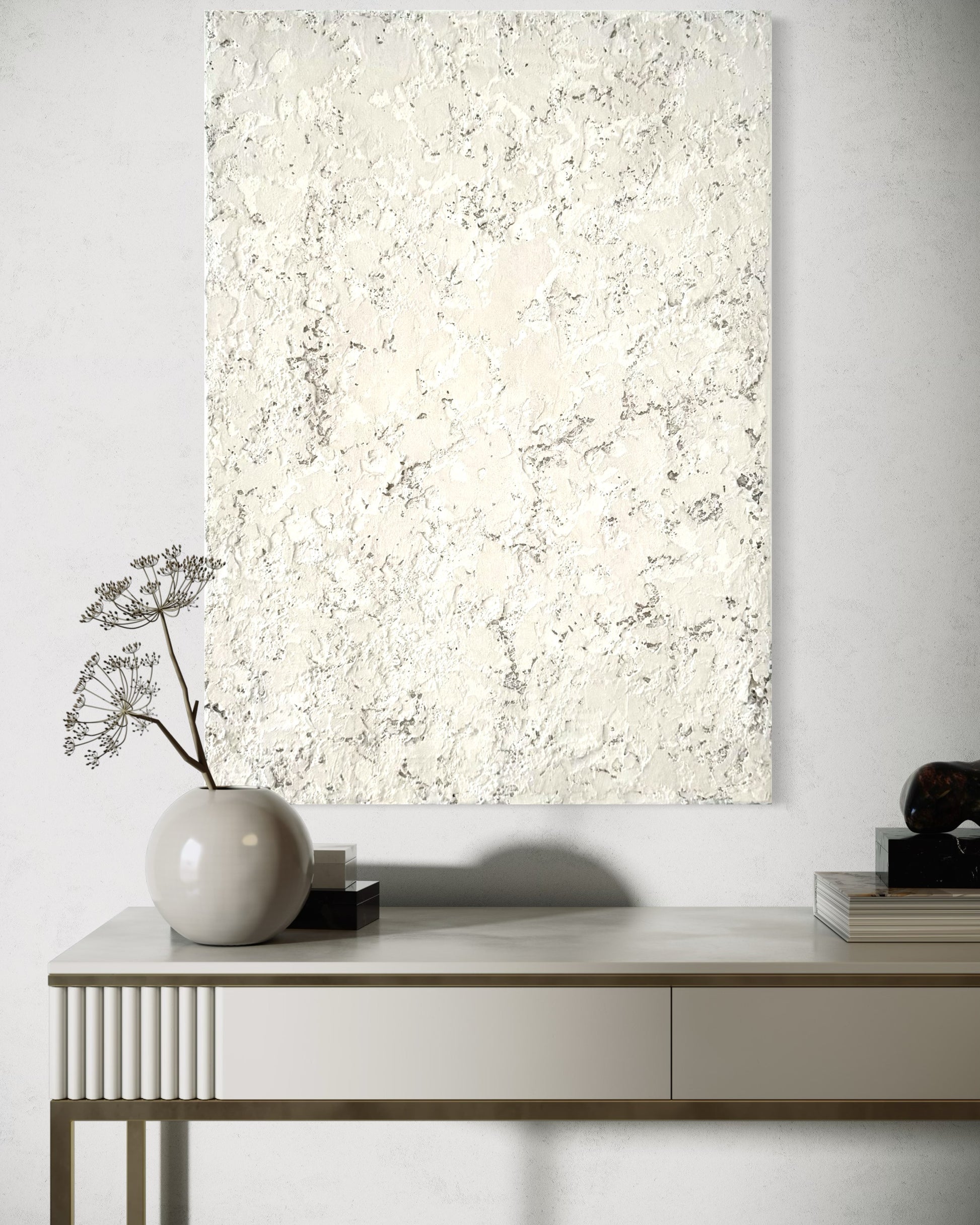 Minimalisme ontmoet zacht licht: "Hikari" is een bijzonder acrylschilderij met een gestructureerd oppervlak, geïnspireerd op de Japanse Wabi-Sabifilosofie.
