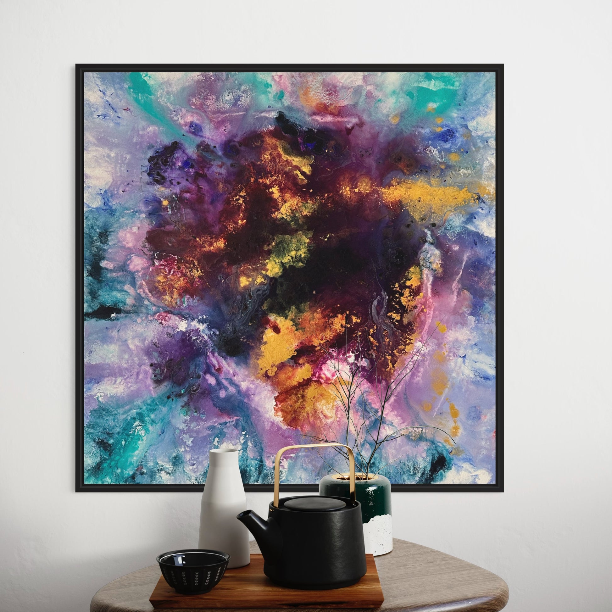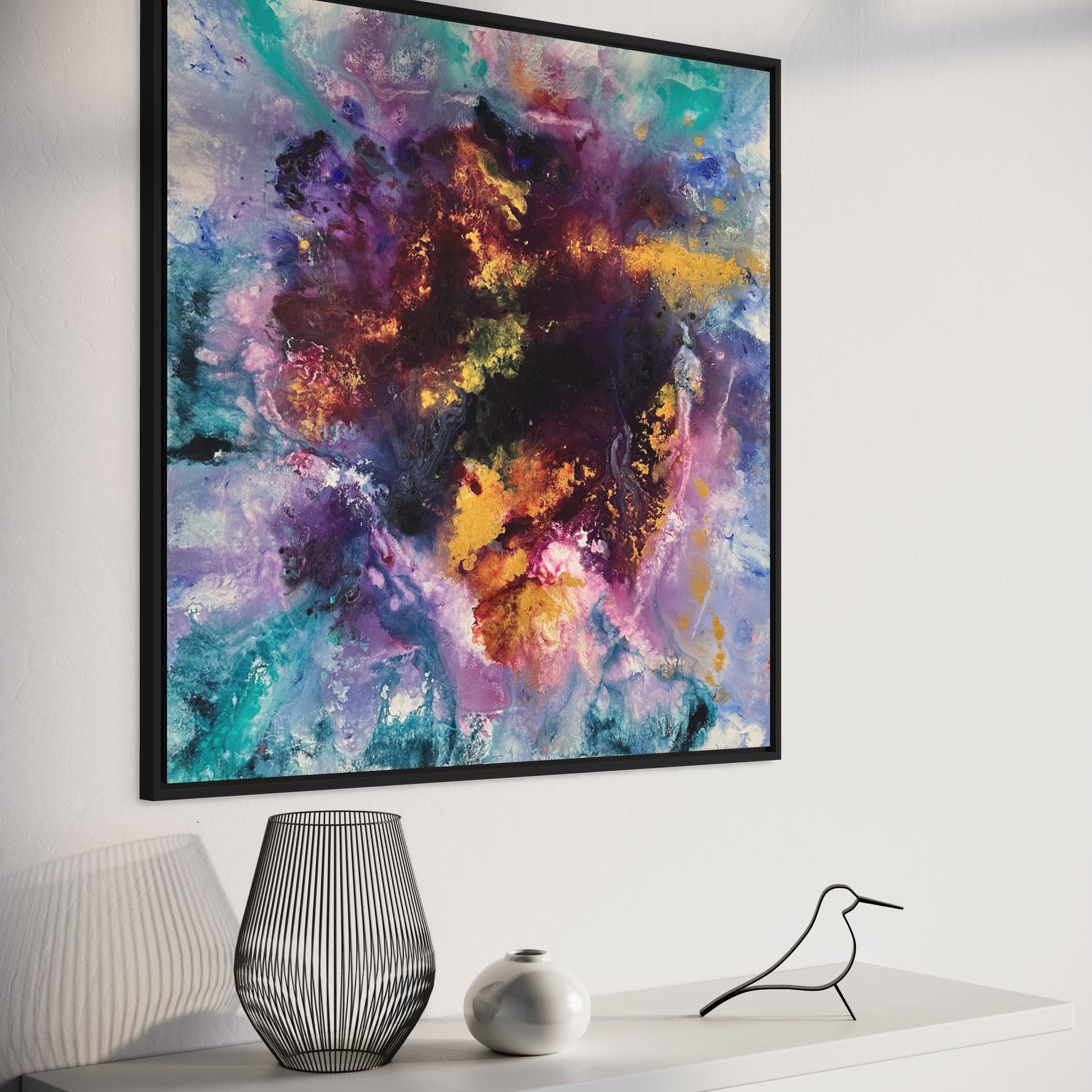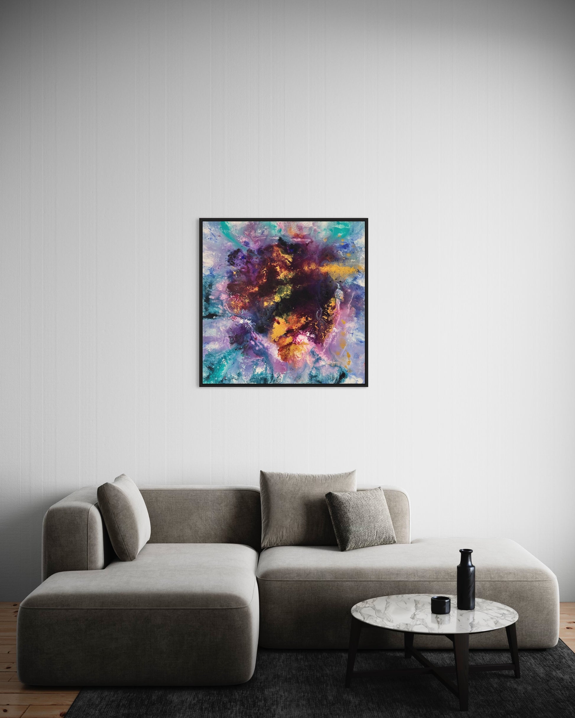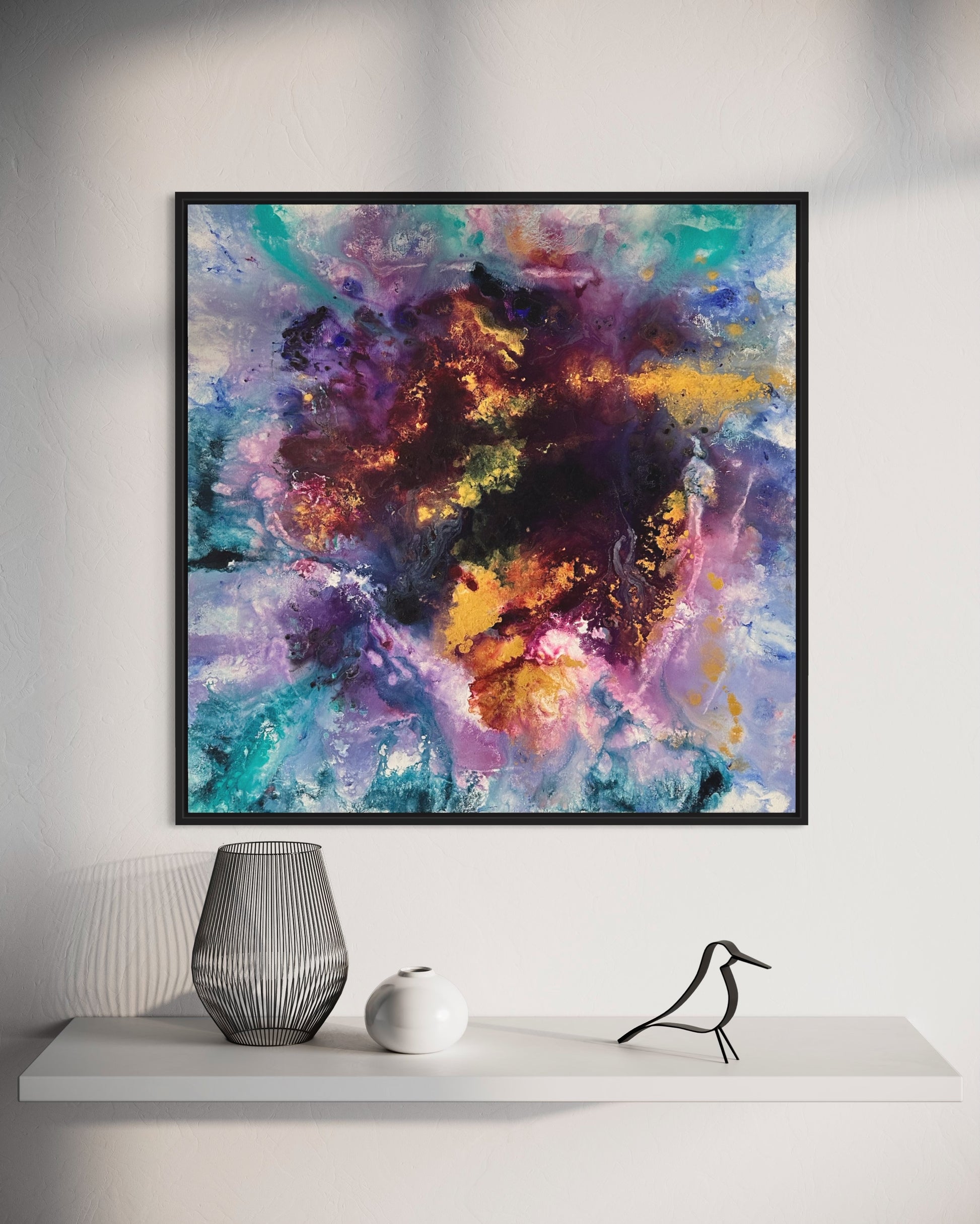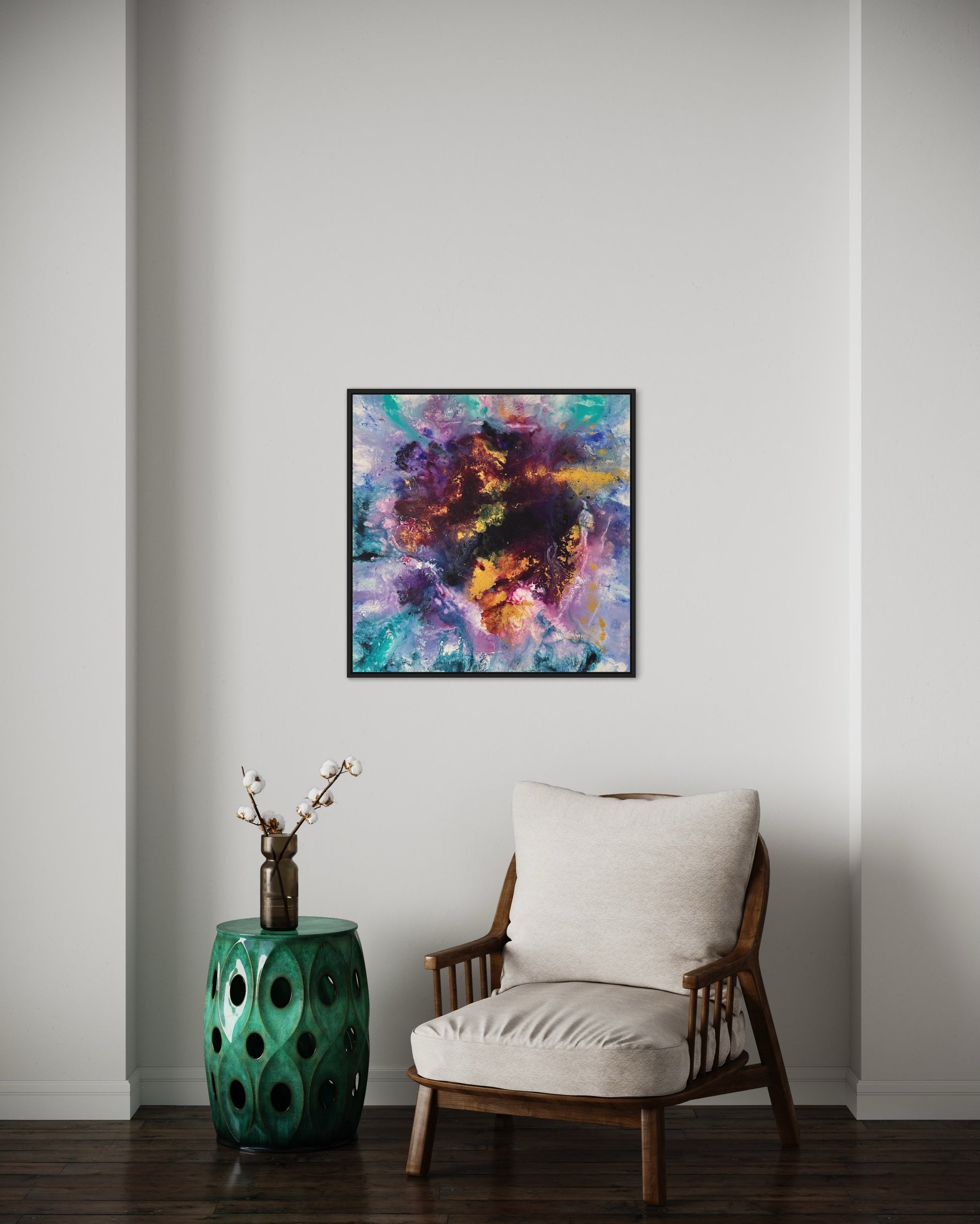 Met dit schilderij breng je een vleugje abstractie en kleur in je wereld. Dompel jezelf onder in de diepe ziel van dit kunstwerk en laat je fascineren door de mysterieuze aantrekkingskracht ervan.