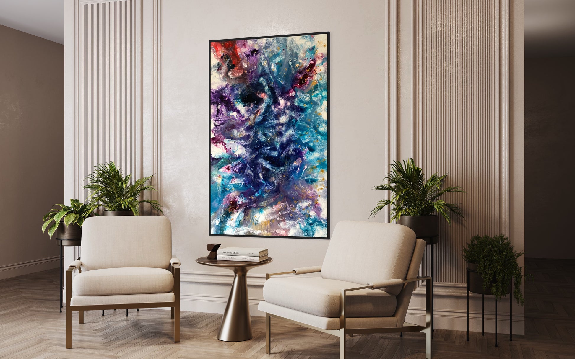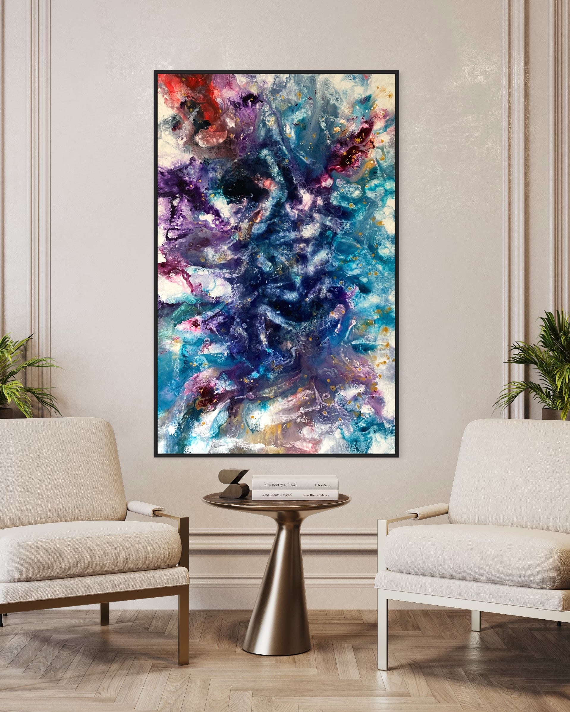 Dit abstracte schilderij is een opvallende toevoeging aan je huis, kantoor of elke andere ruimte die je wilt opfleuren. Het abstracte karakter van het schilderij maakt het mogelijk om je eigen interpretaties en gevoelens erin te projecteren, waardoor het een gespreksonderwerp wordt dat bewondering oproept.