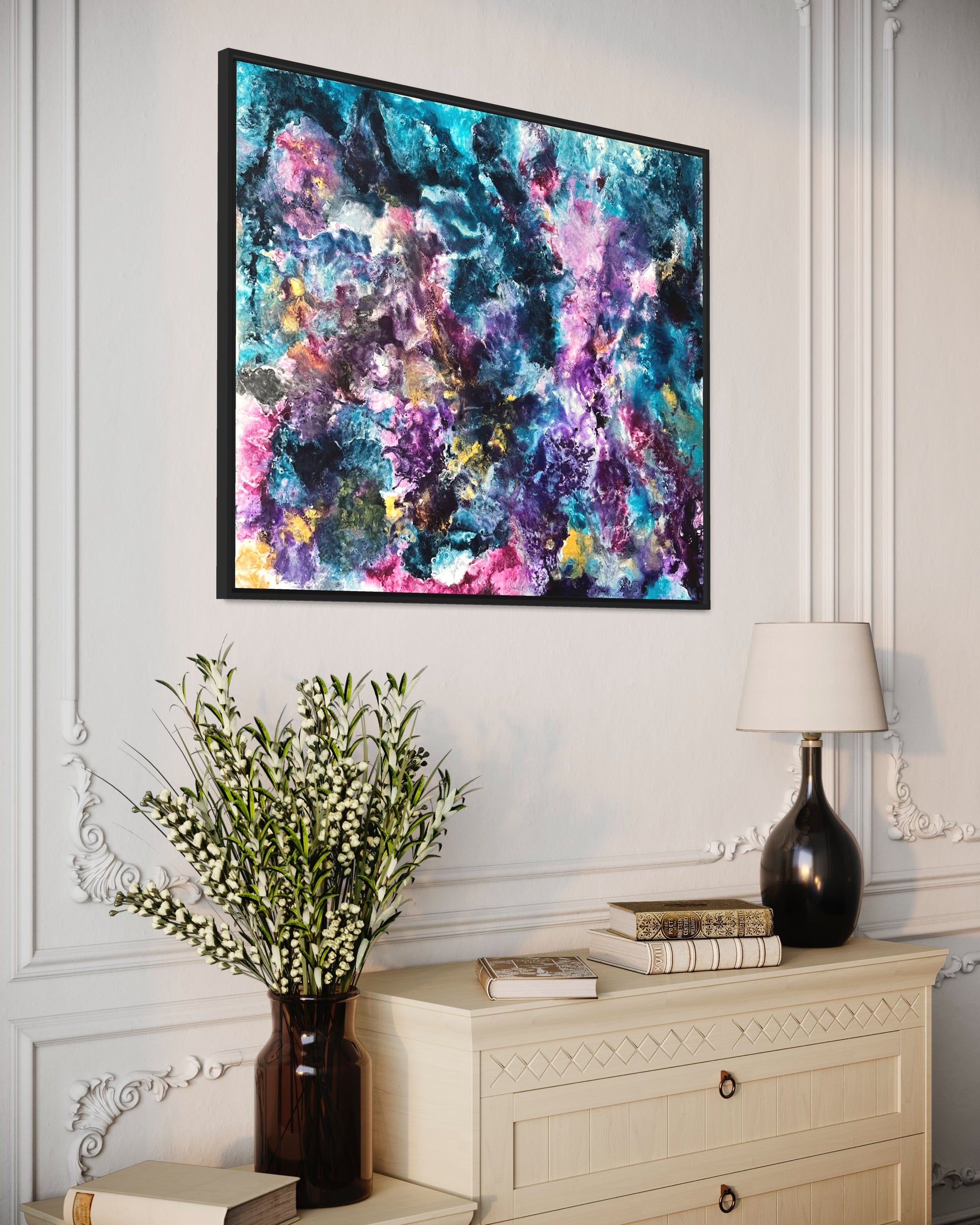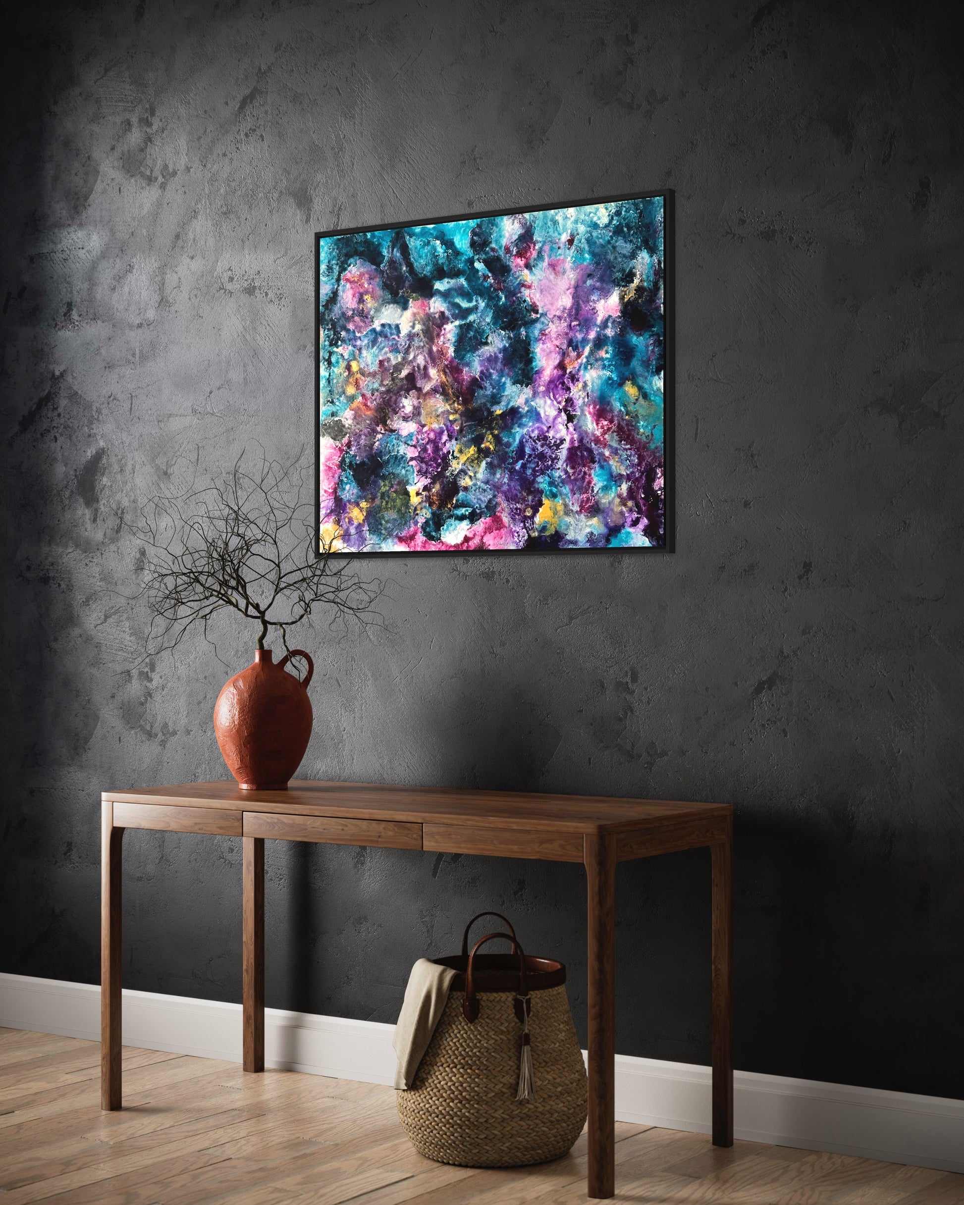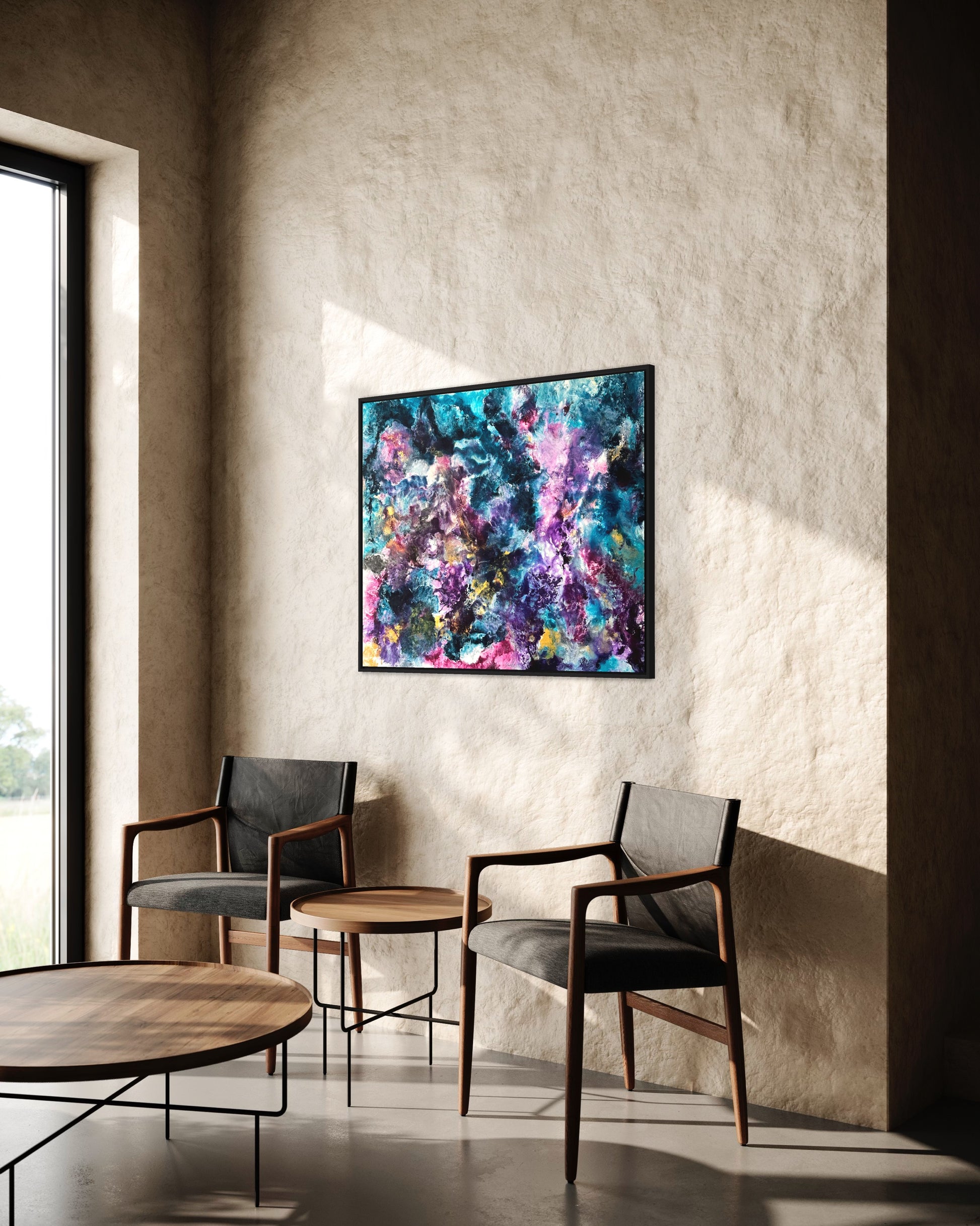 Het schilderij is een uitstekend middelpunt voor uw woonkamer, kantoor of elke kamer waar u op zoek bent naar een uitbarsting van energie en elegantie. Het boeiende kleur- en vormgebruik zal zeker de aandacht trekken en een gesprek onder uw gasten op gang brengen.
