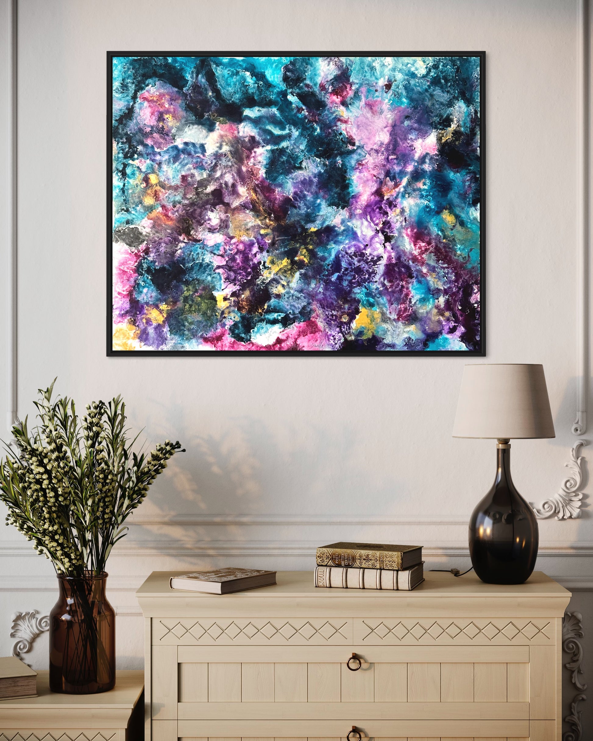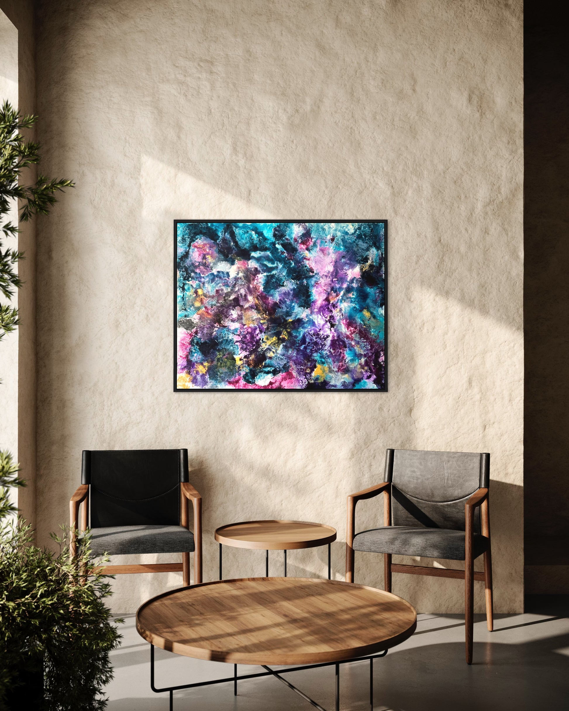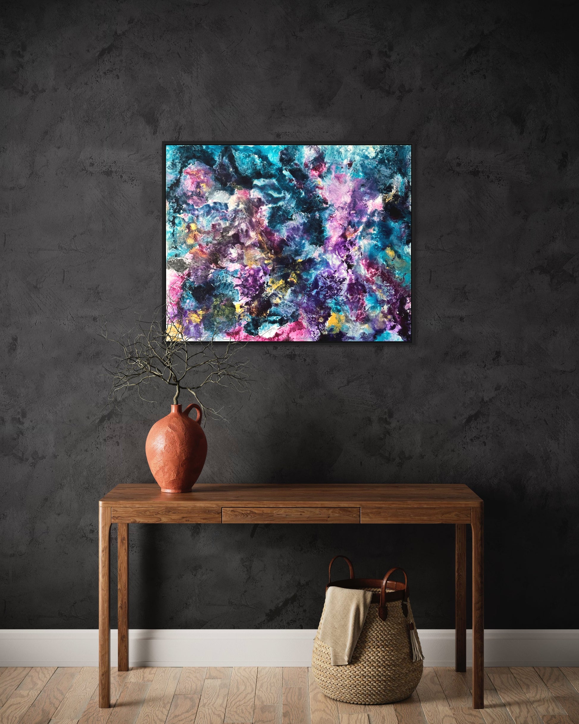 Het schilderij is een uitstekend middelpunt voor uw woonkamer, kantoor of elke kamer waar u op zoek bent naar een uitbarsting van energie en elegantie. Het boeiende kleur- en vormgebruik zal zeker de aandacht trekken en een gesprek onder uw gasten op gang brengen.