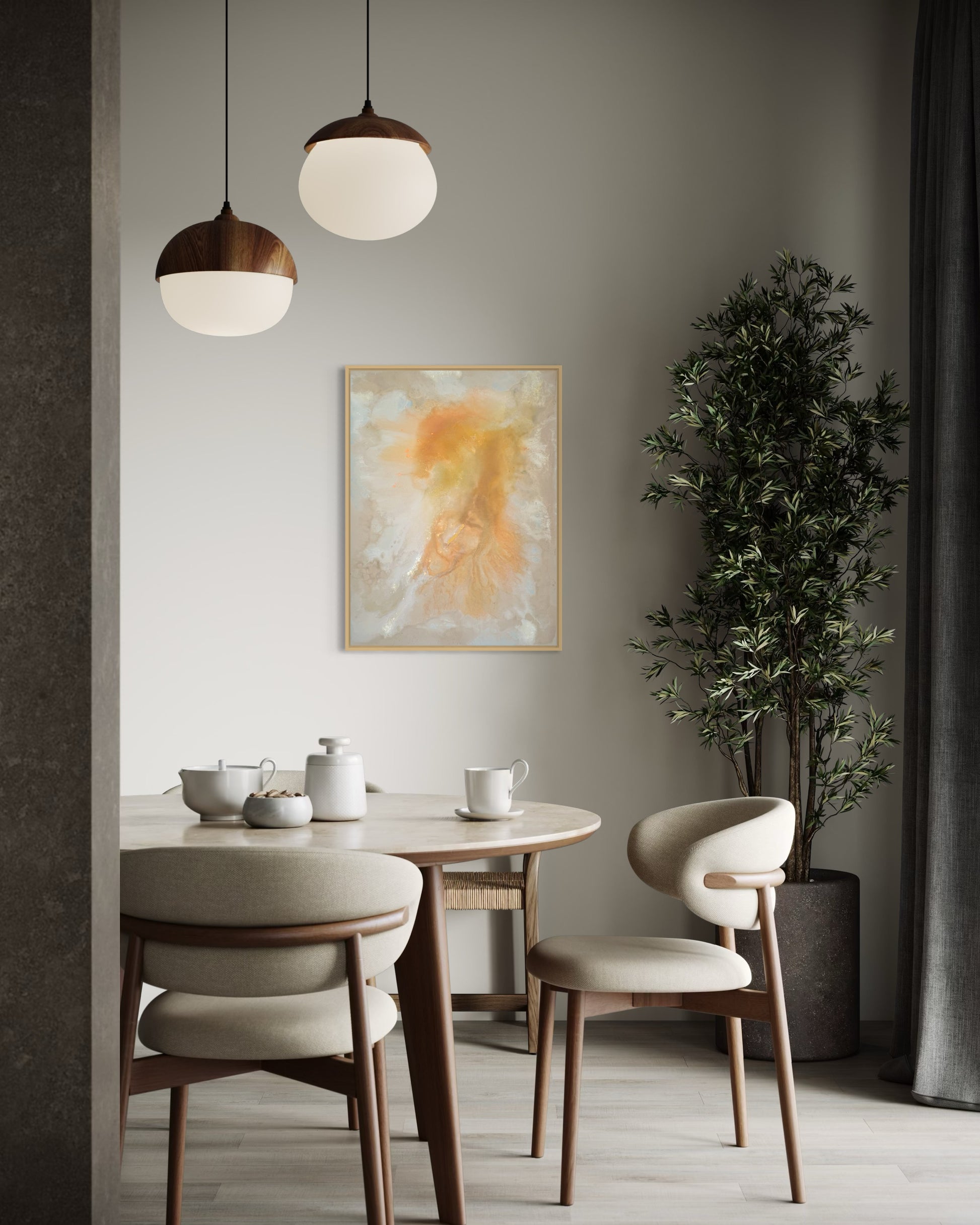 Evening Glow bringt die sanfte, beruhigende Wärme des Abendlichts in dein Zuhause und verleiht jedem Raum eine besondere Tiefe und Gelassenheit. Ideal für Wohnräume, Büros oder Galerien – dieses Werk schafft eine zeitlose Atmosphäre der Ruhe.