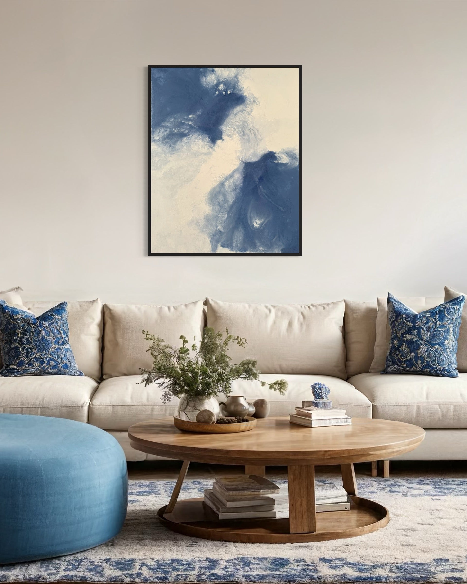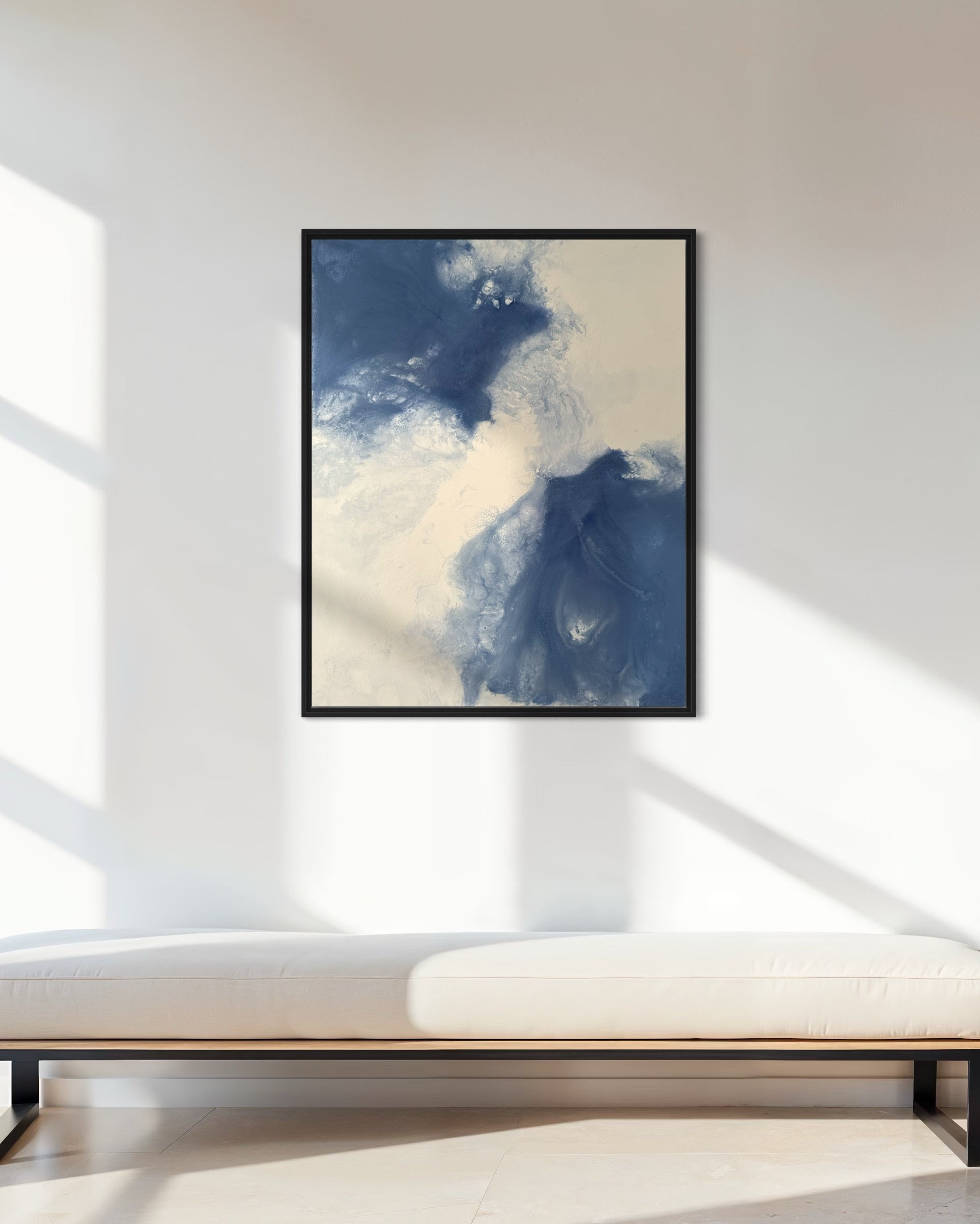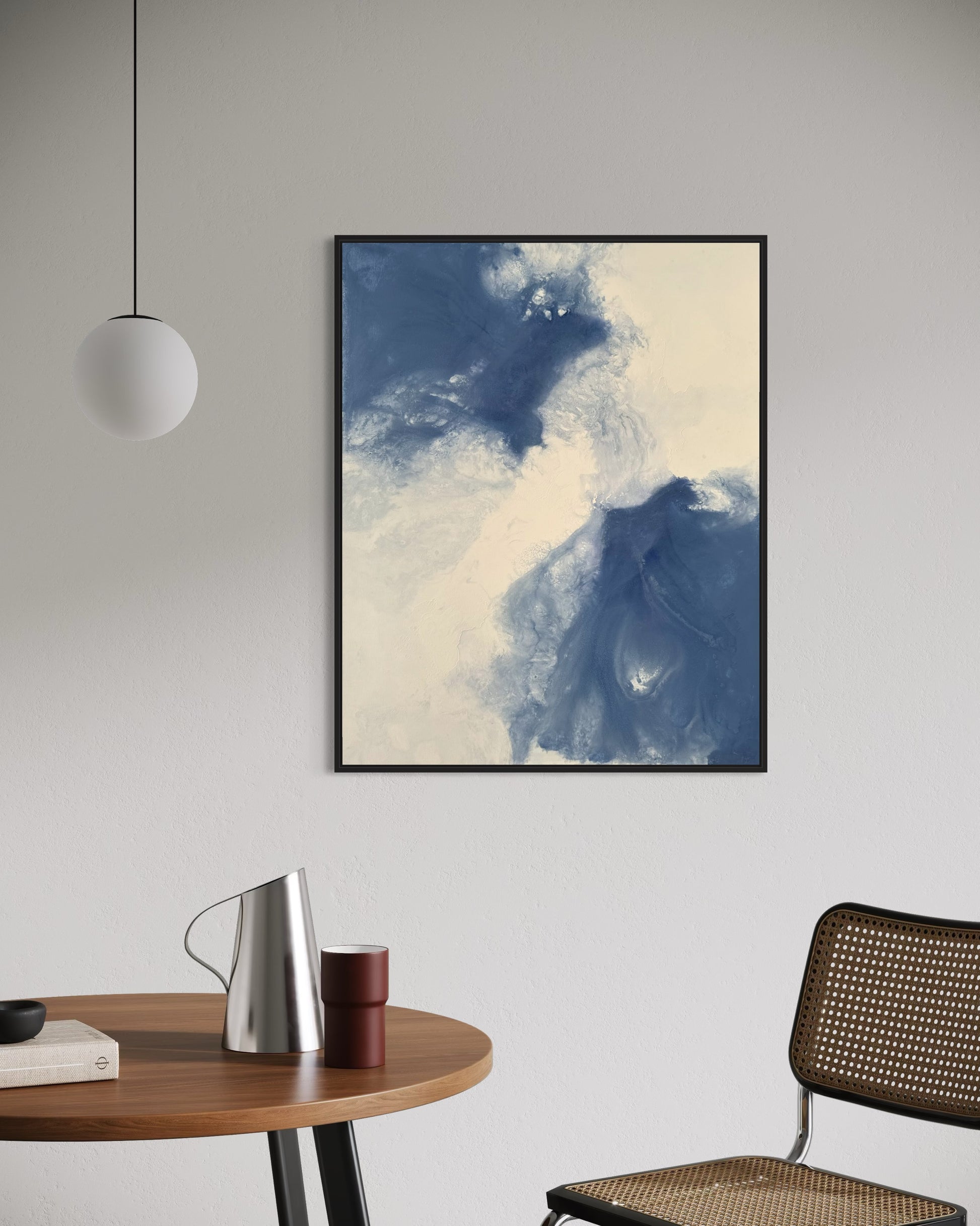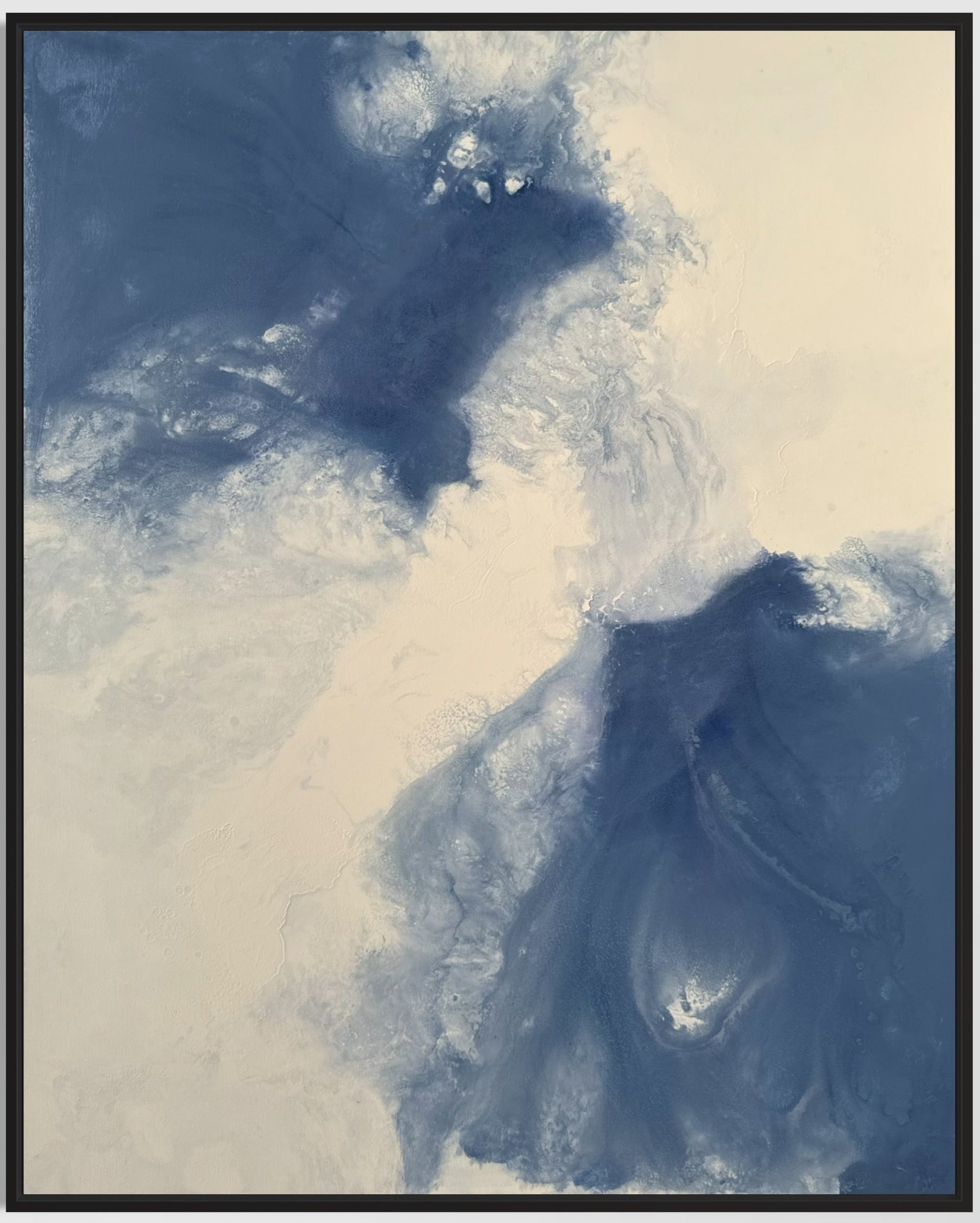 Only a Moment ist ein Acrylbild in Blau und Weiß – reduziert, ruhig und offen. Es steht für die stillen Zwischenräume im Alltag. Für Augenblicke, in denen scheinbar nichts geschieht, und doch eine Veränderung spürbar wird.