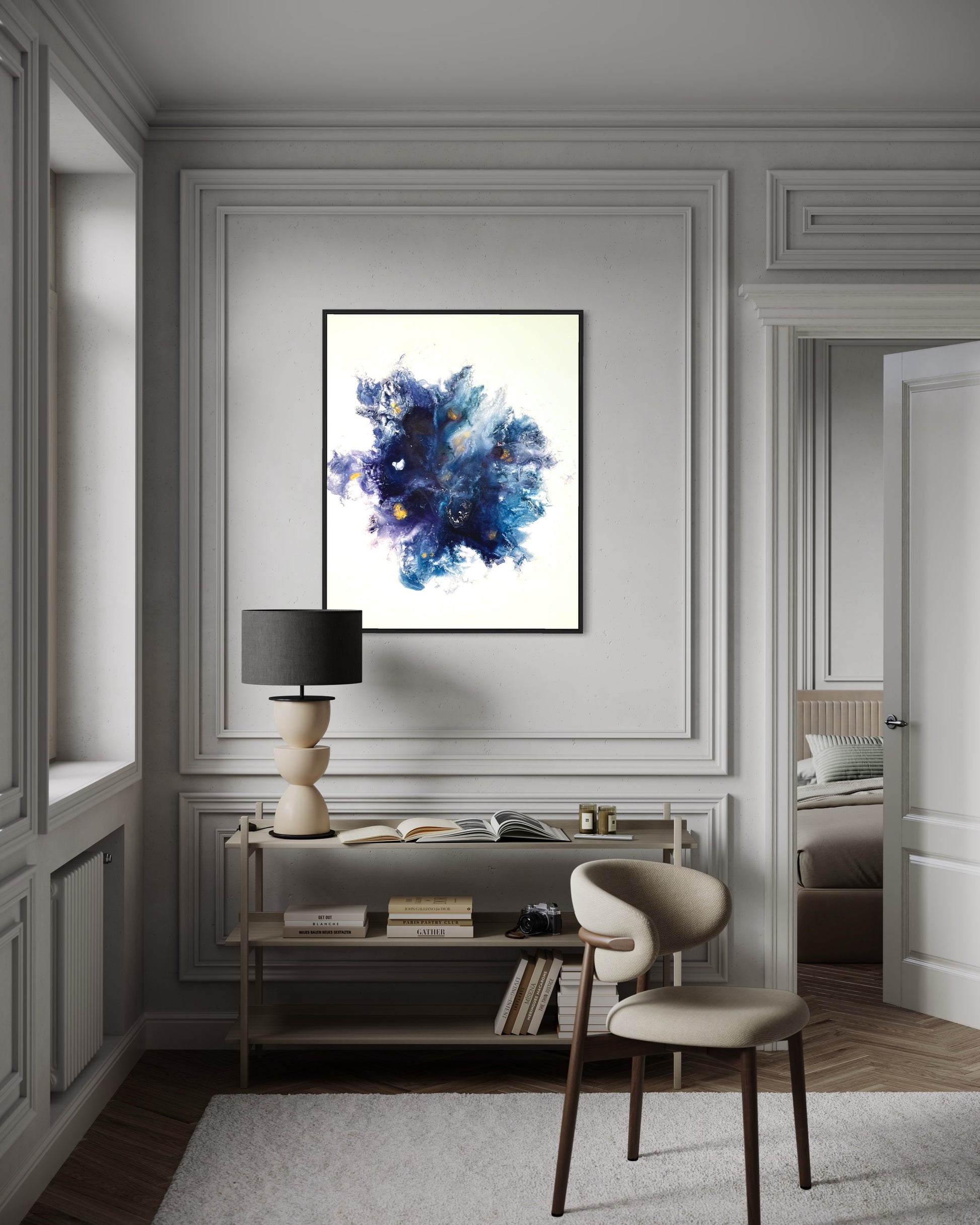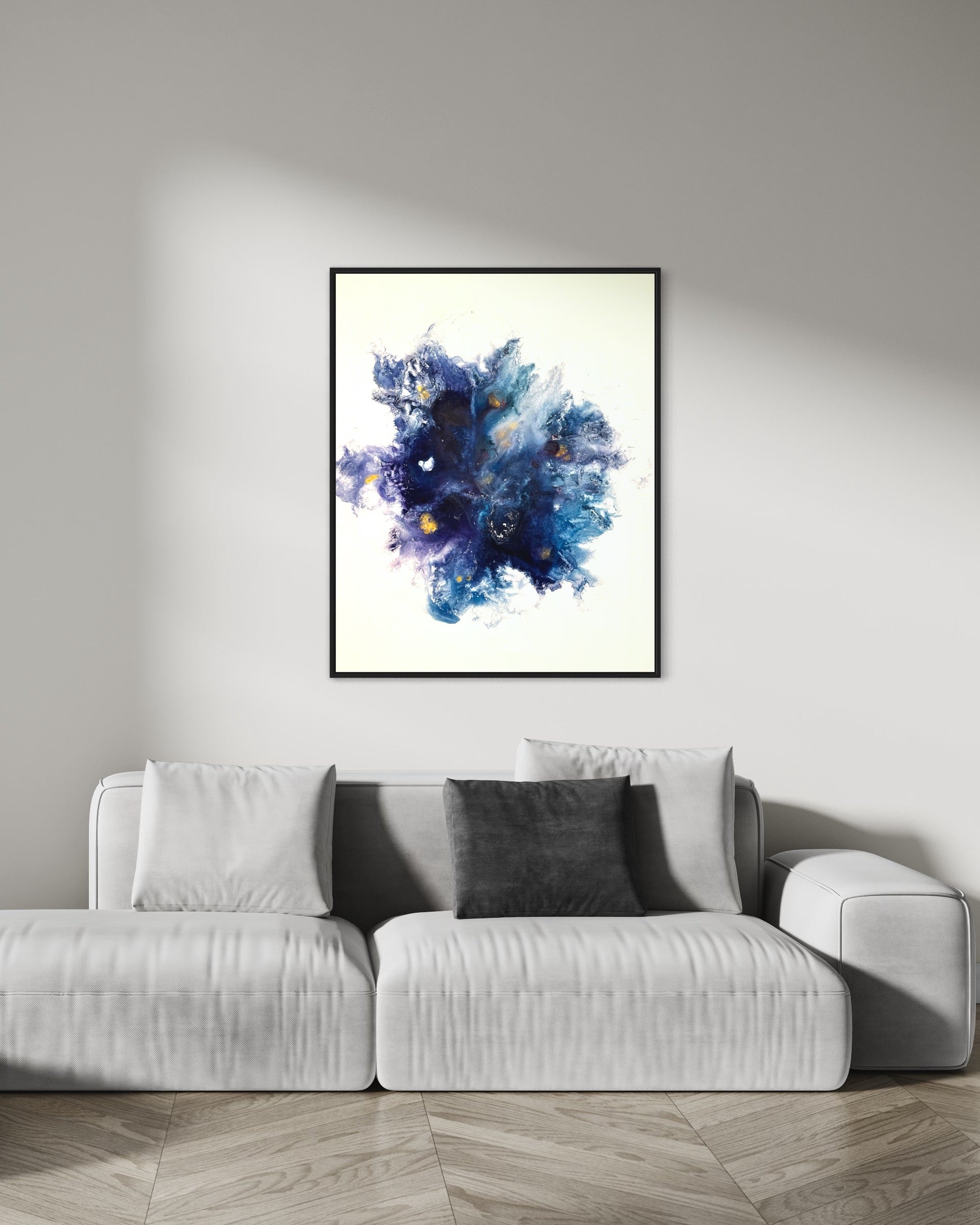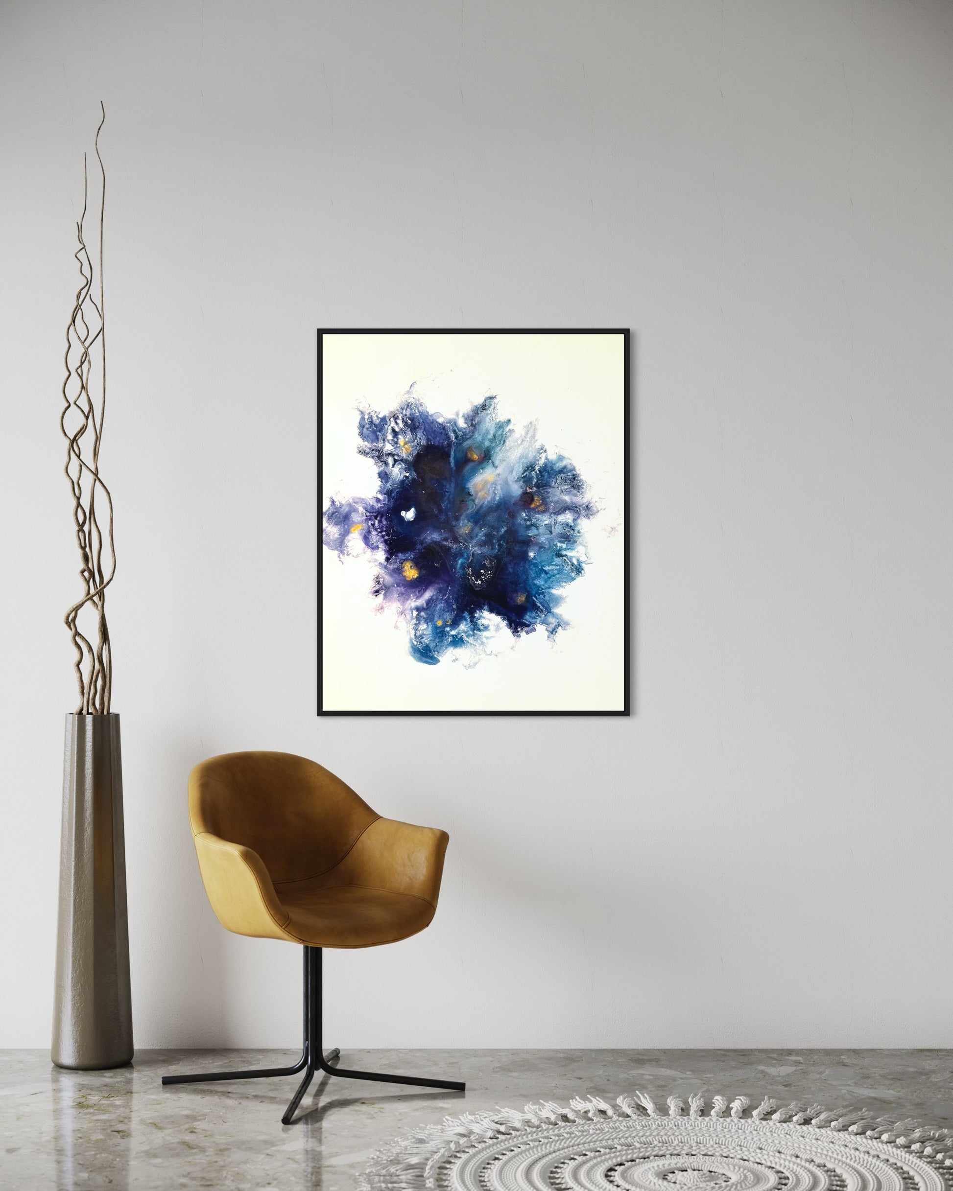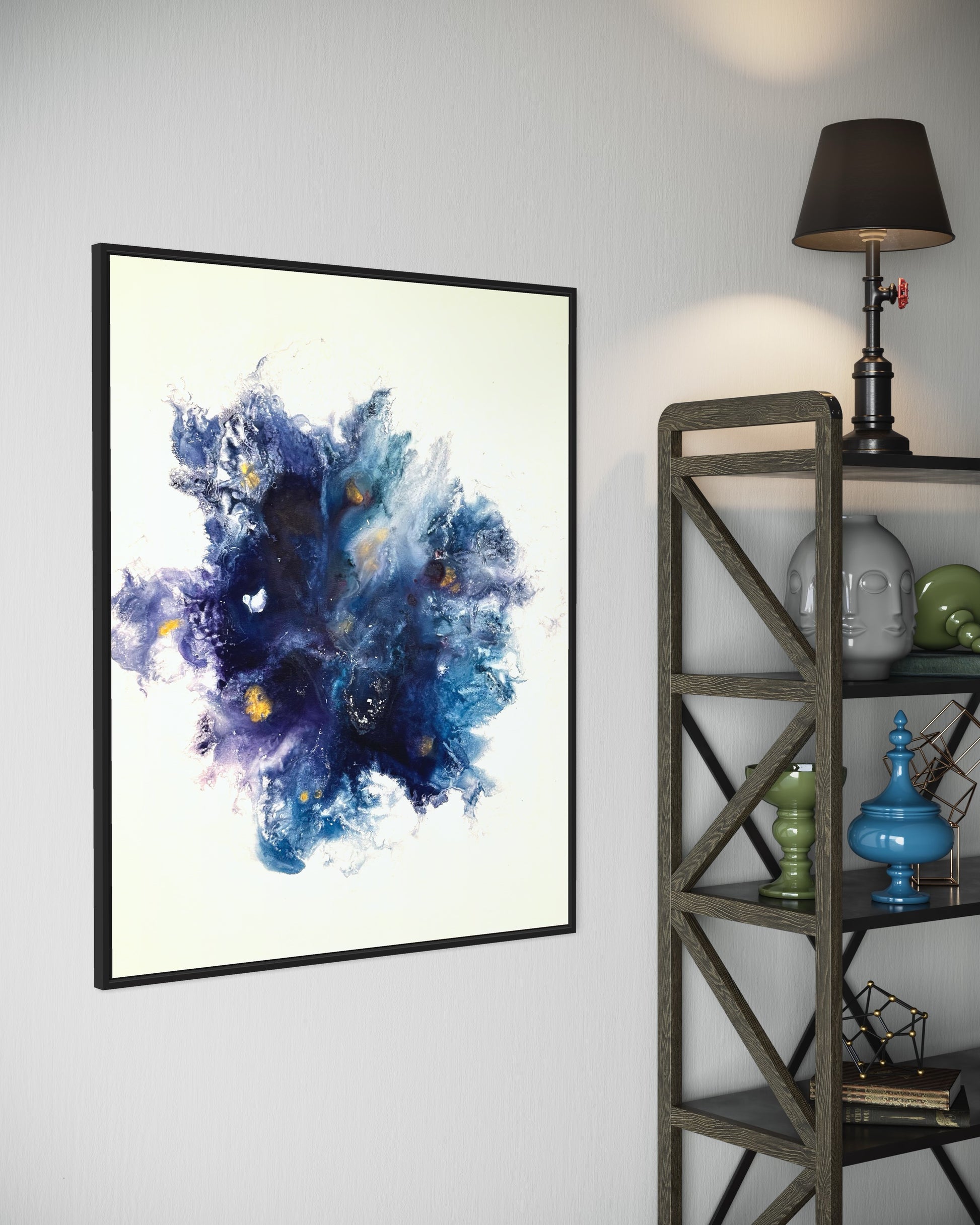 Jedes Detail dieses Gemäldes wurde mit Acrylfarben auf hochwertiger Leinwand kunstvoll gestaltet, um eine fesselnde Atmosphäre zu schaffen. Die harmonische Kombination von Blau und Lila wird jeden Betrachter in den Bann ziehen und eine Aura der Ruhe und Gelassenheit in jeden Raum bringen.