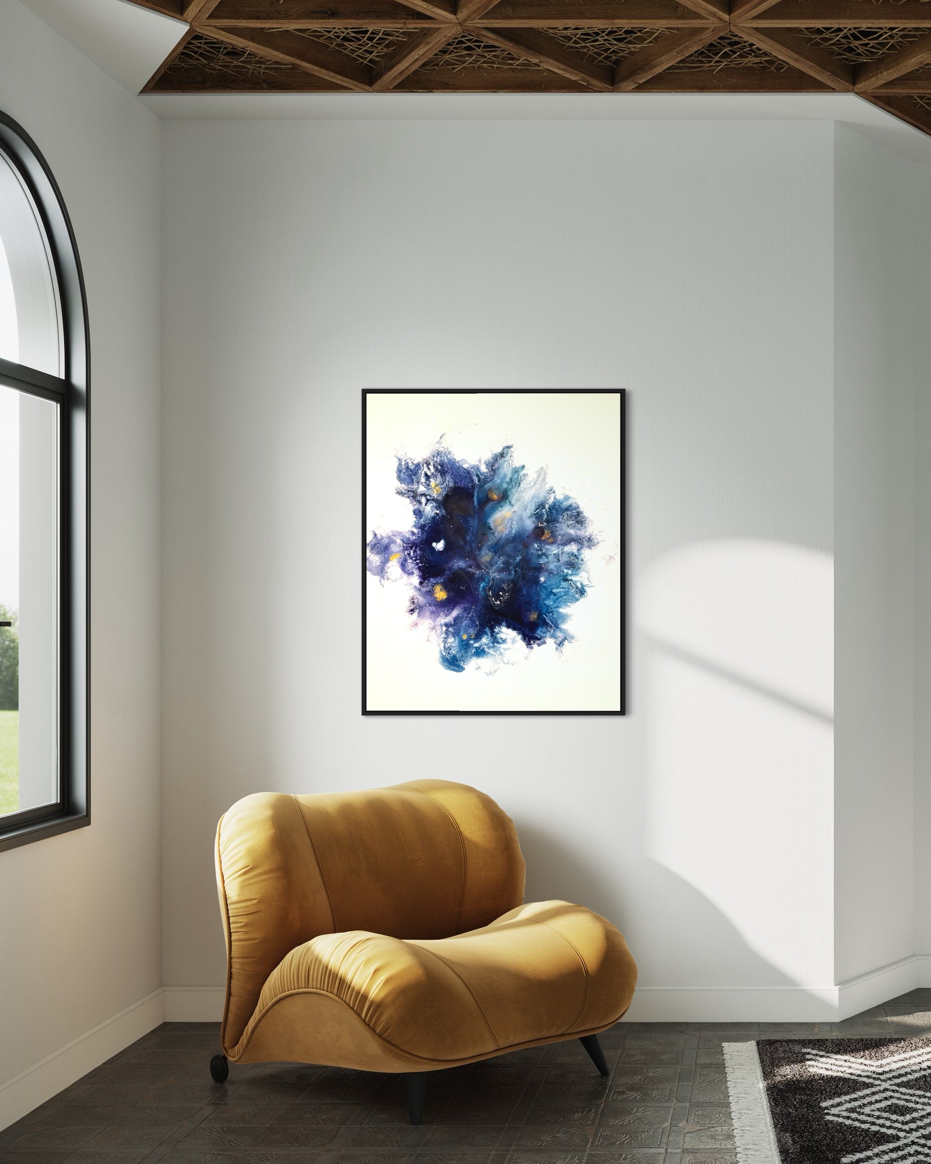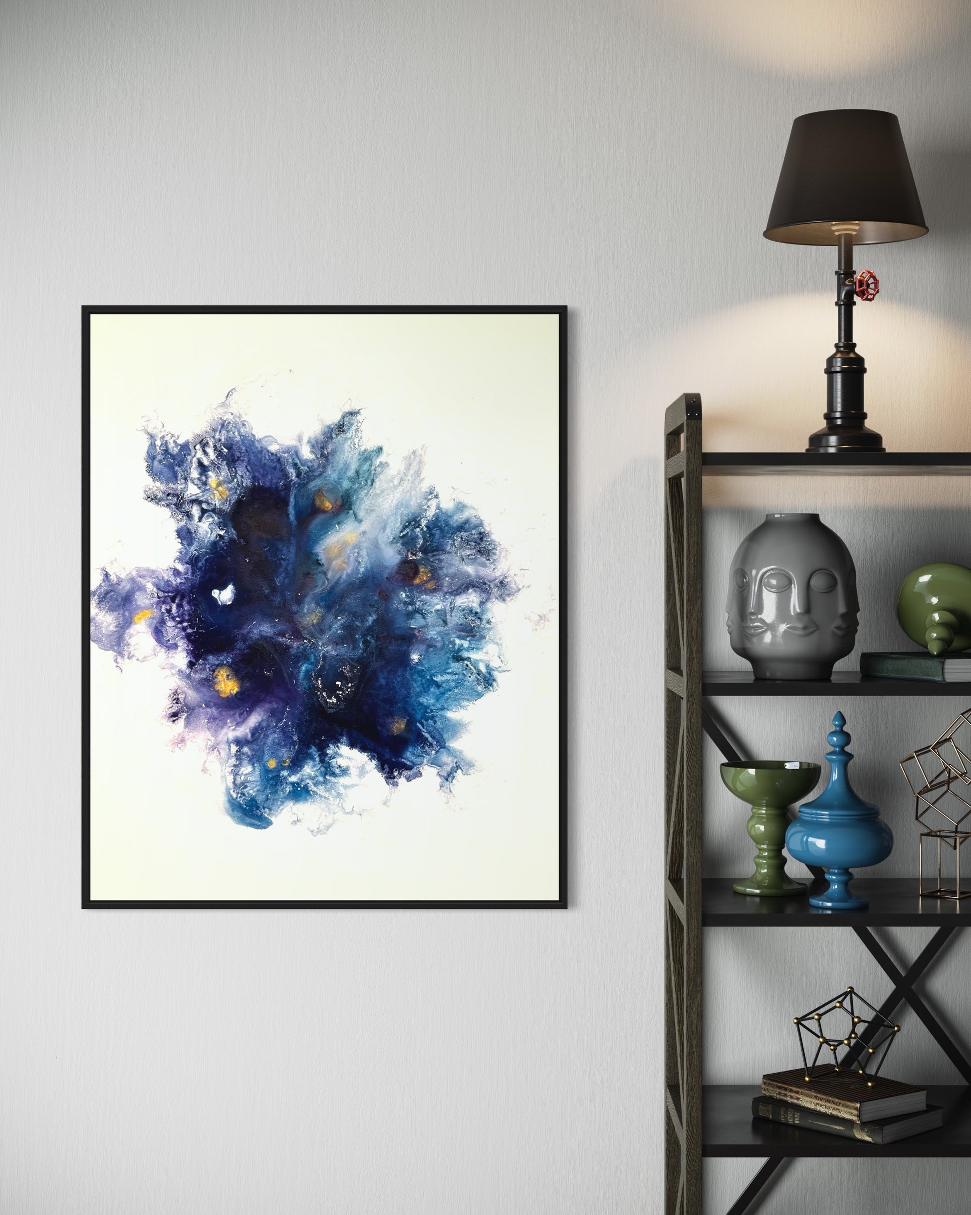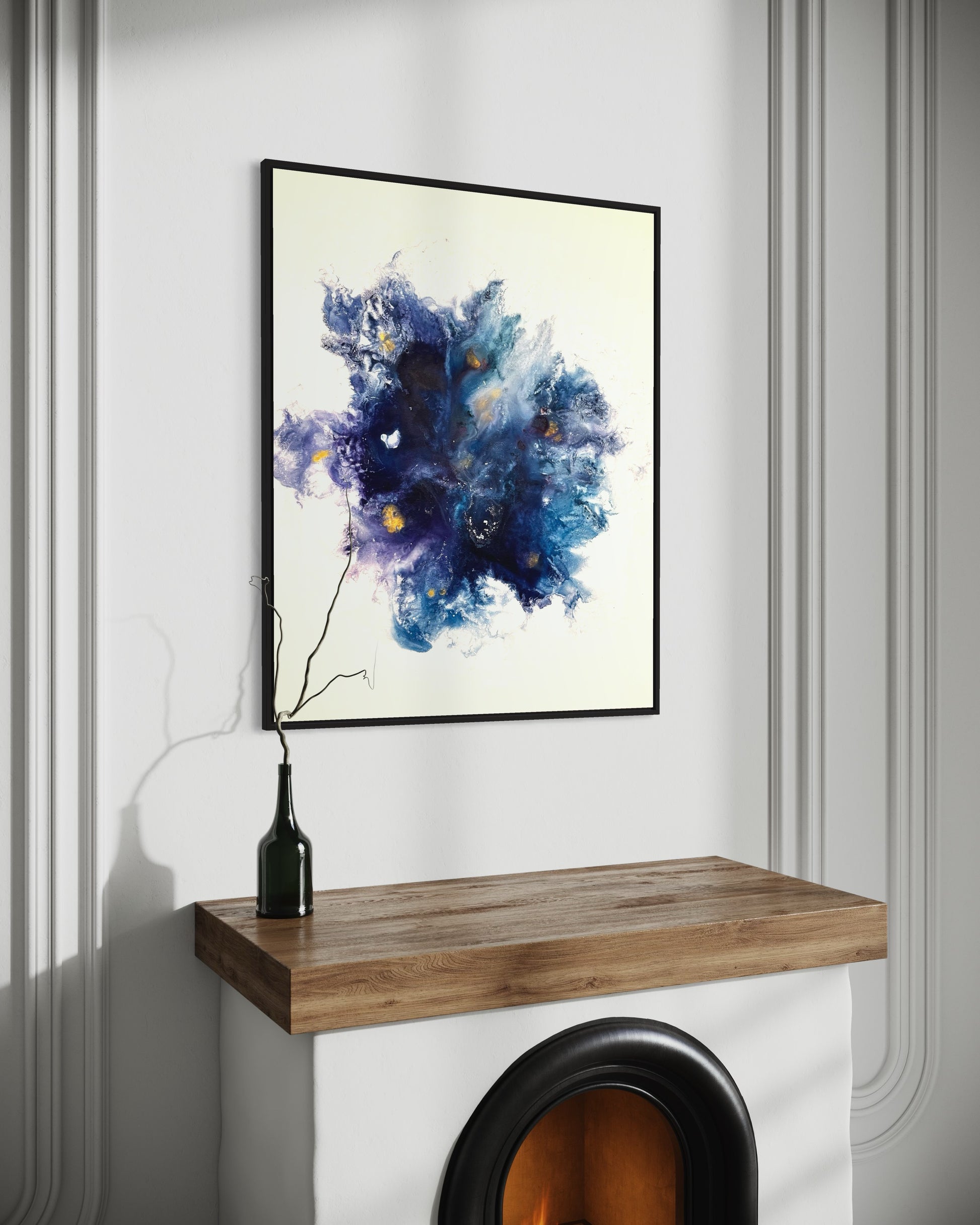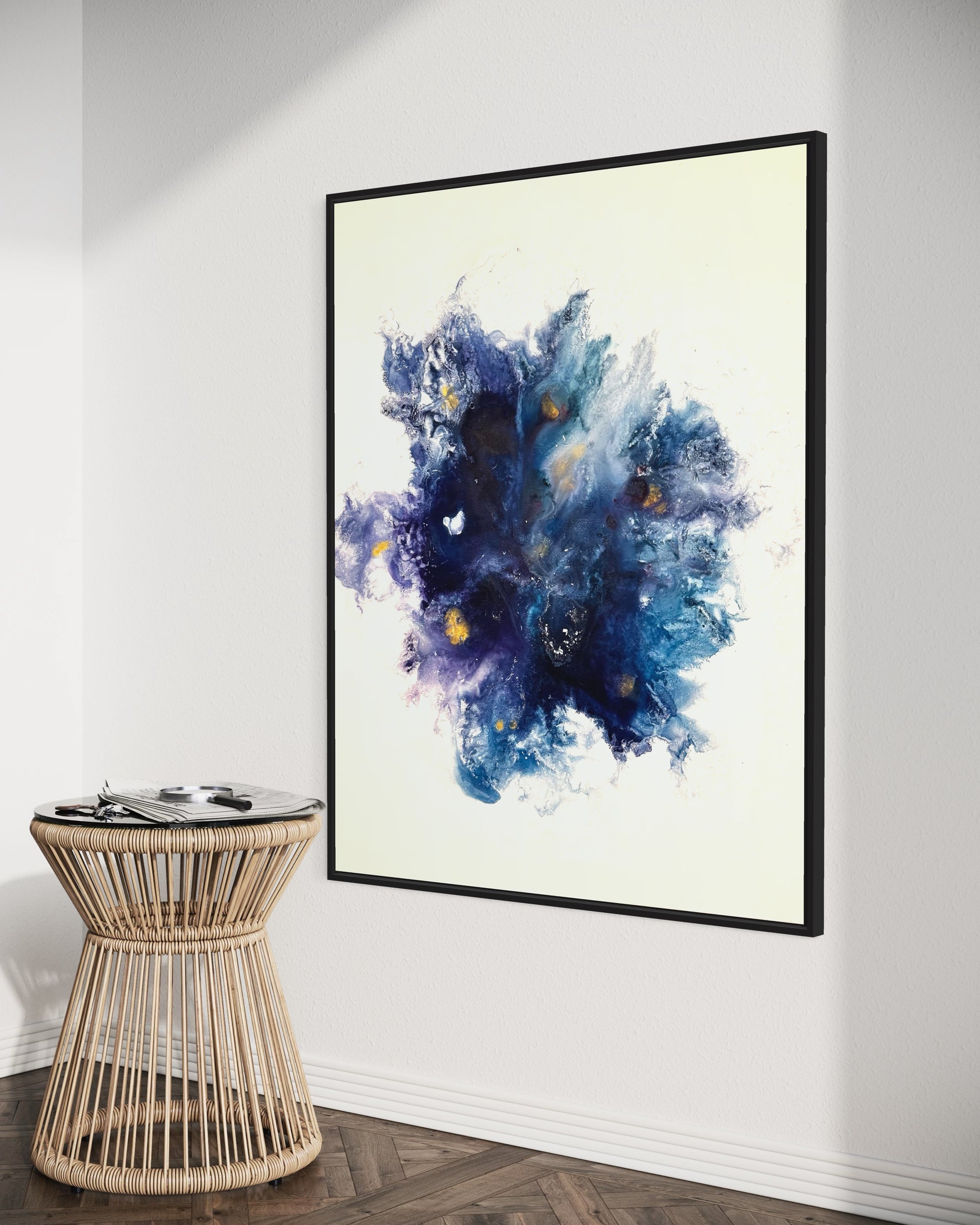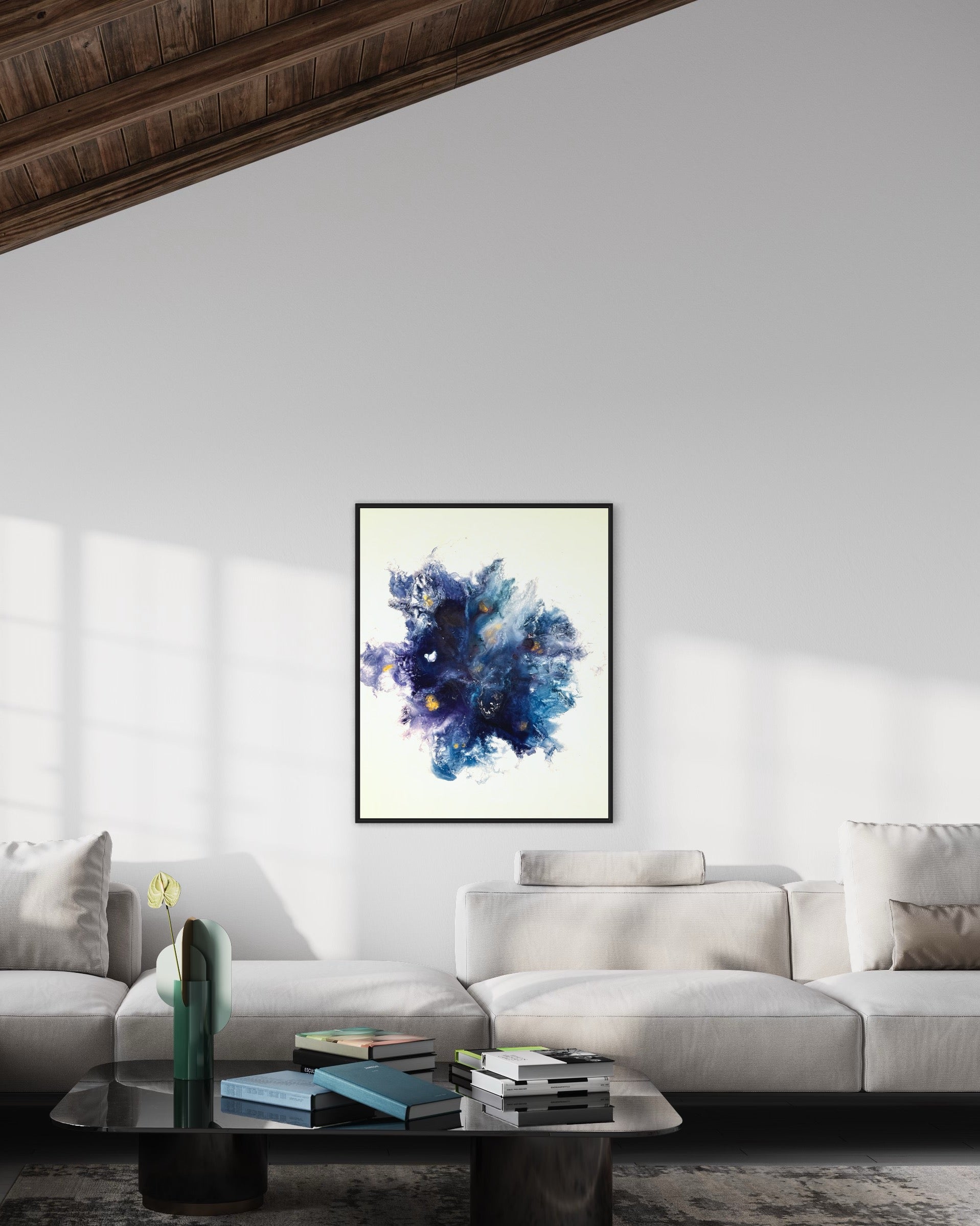 Jedes Detail dieses Gemäldes wurde mit Acrylfarben auf hochwertiger Leinwand kunstvoll gestaltet, um eine fesselnde Atmosphäre zu schaffen. Die harmonische Kombination von Blau und Lila wird jeden Betrachter in den Bann ziehen und eine Aura der Ruhe und Gelassenheit in jeden Raum bringen.