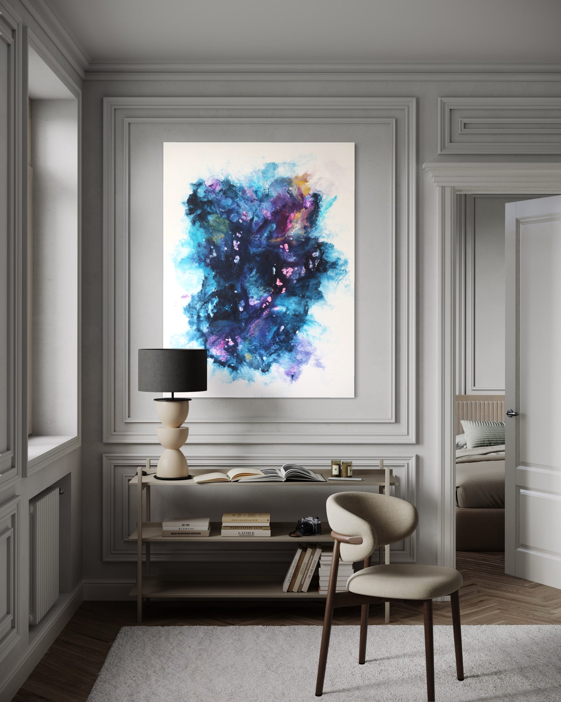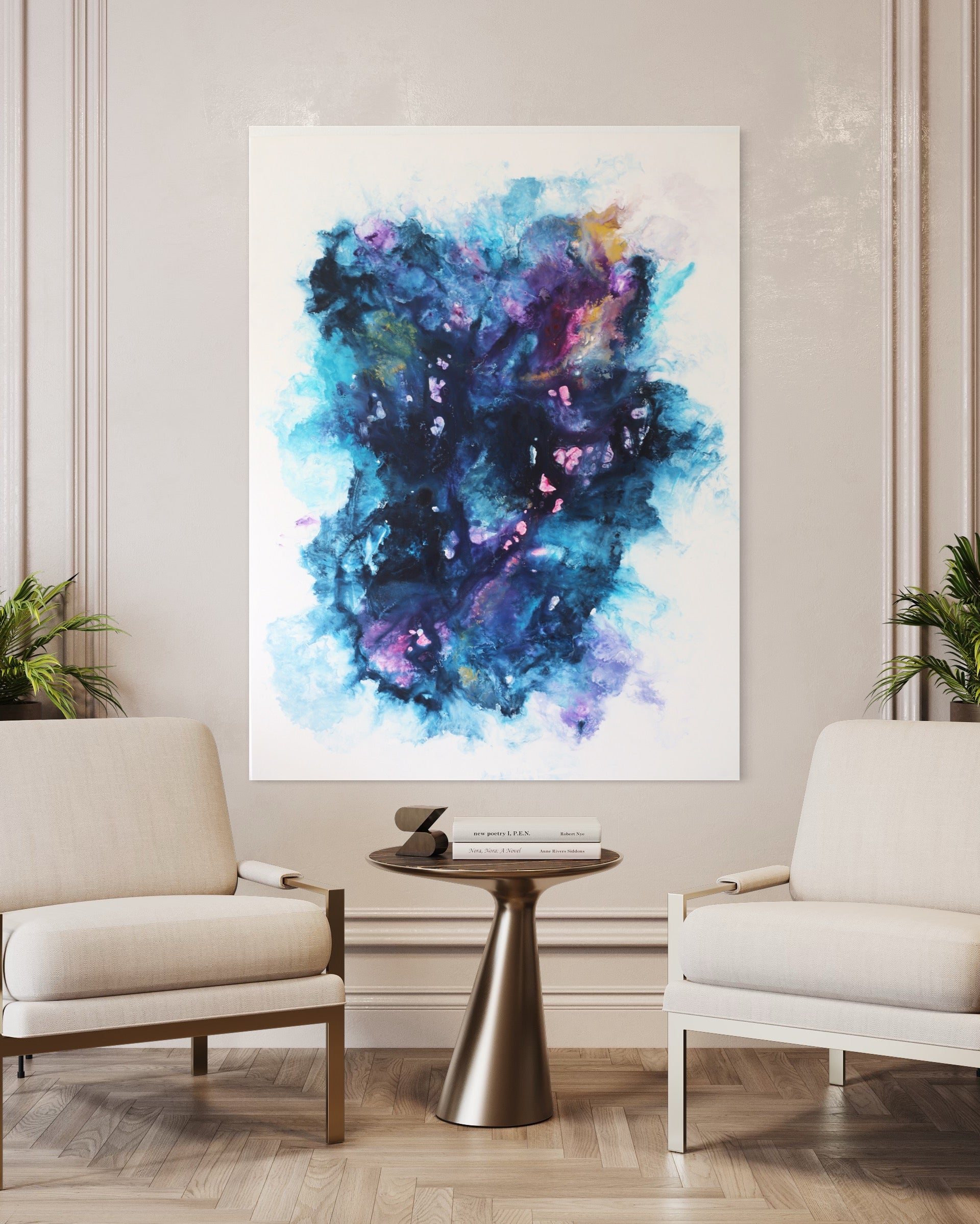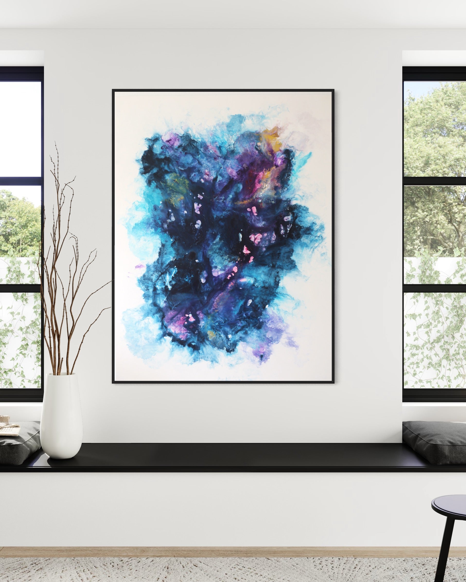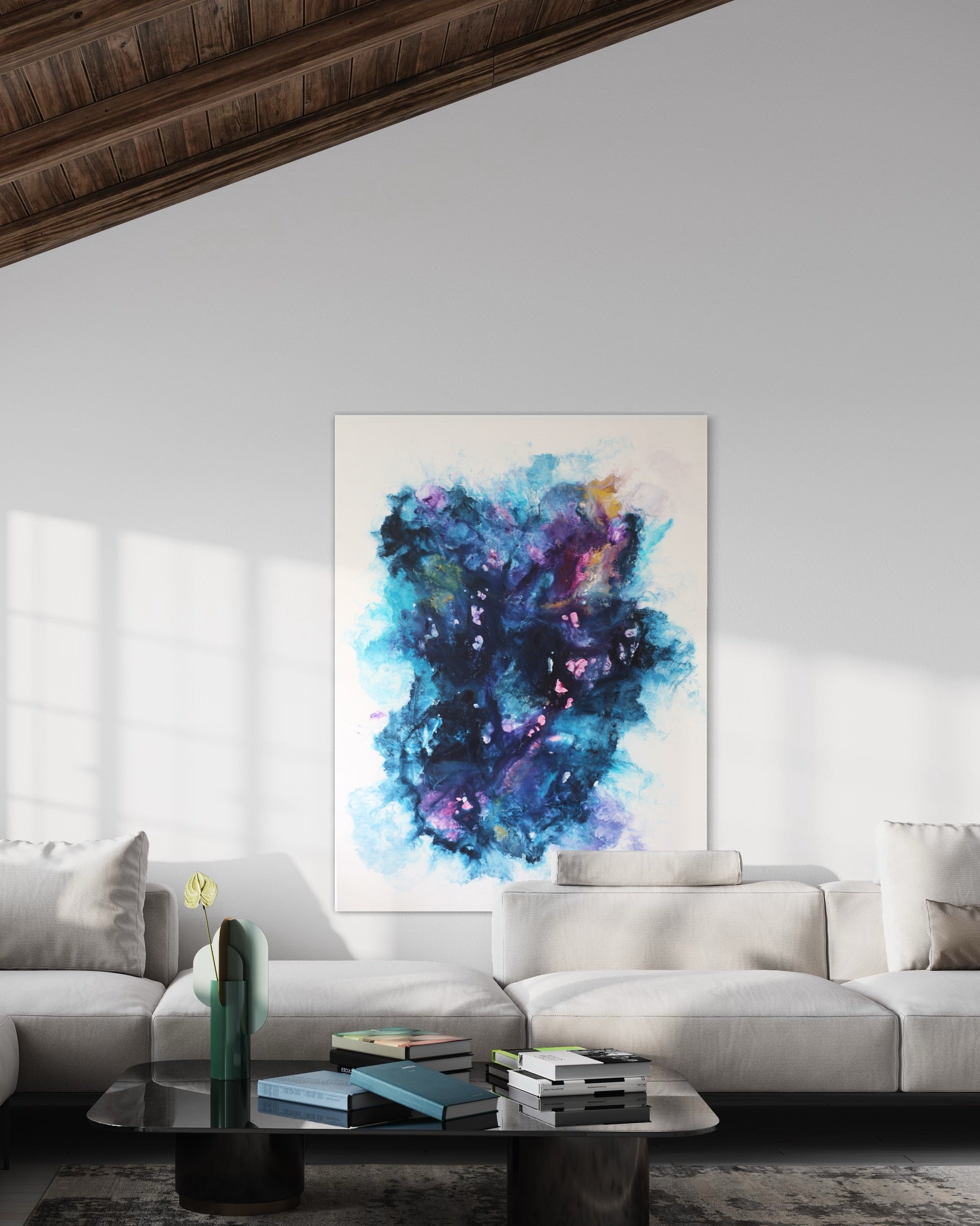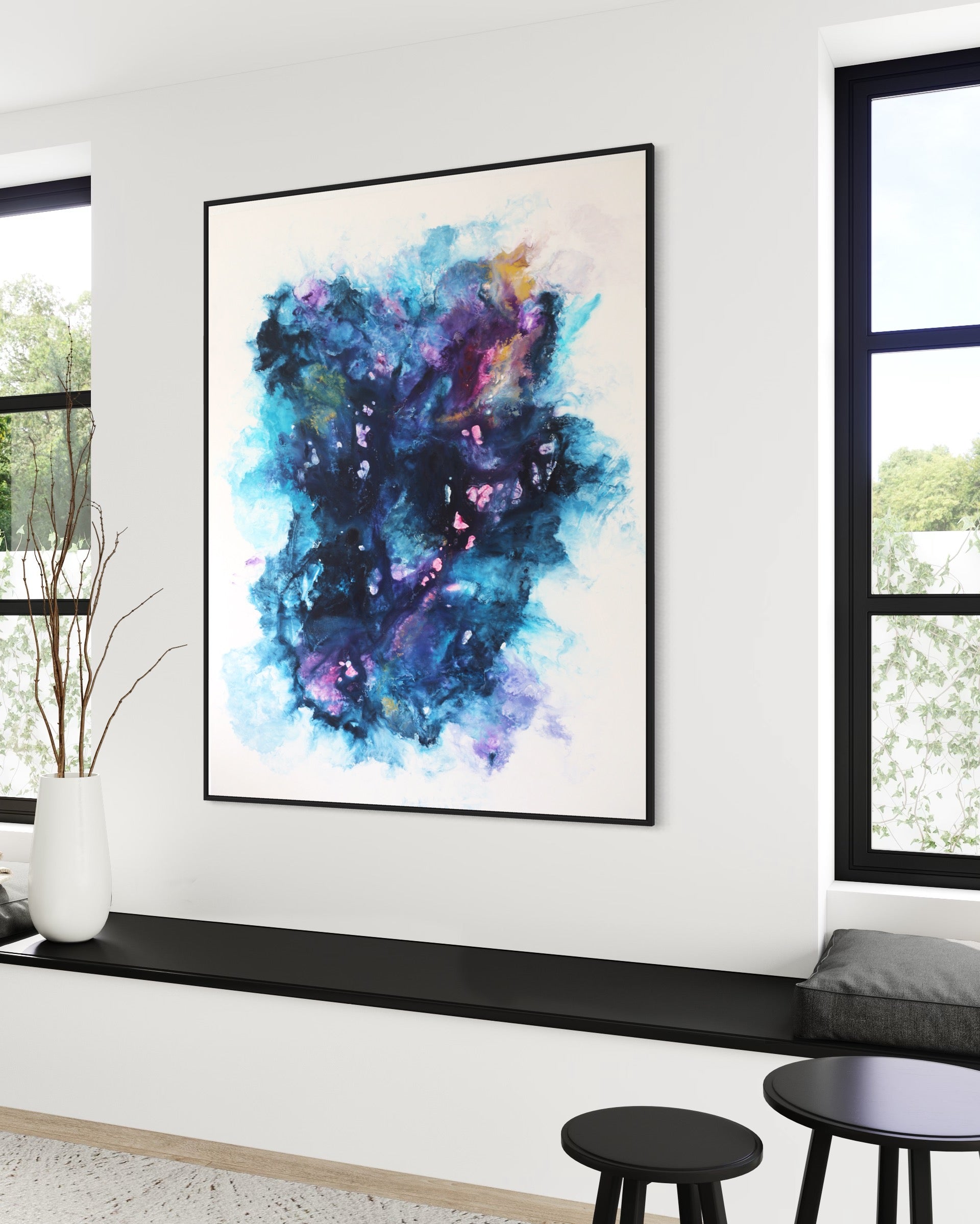 Warum "Life's Glow"? Dieses Gemälde ist mehr als nur Dekoration – es ist ein Ausdruck von Lebensfreude und Kreativität. Die leuchtenden Farben und die dynamischen Formen bringen eine positive Atmosphäre in jeden Raum und laden zum Träumen und Verweilen ein.