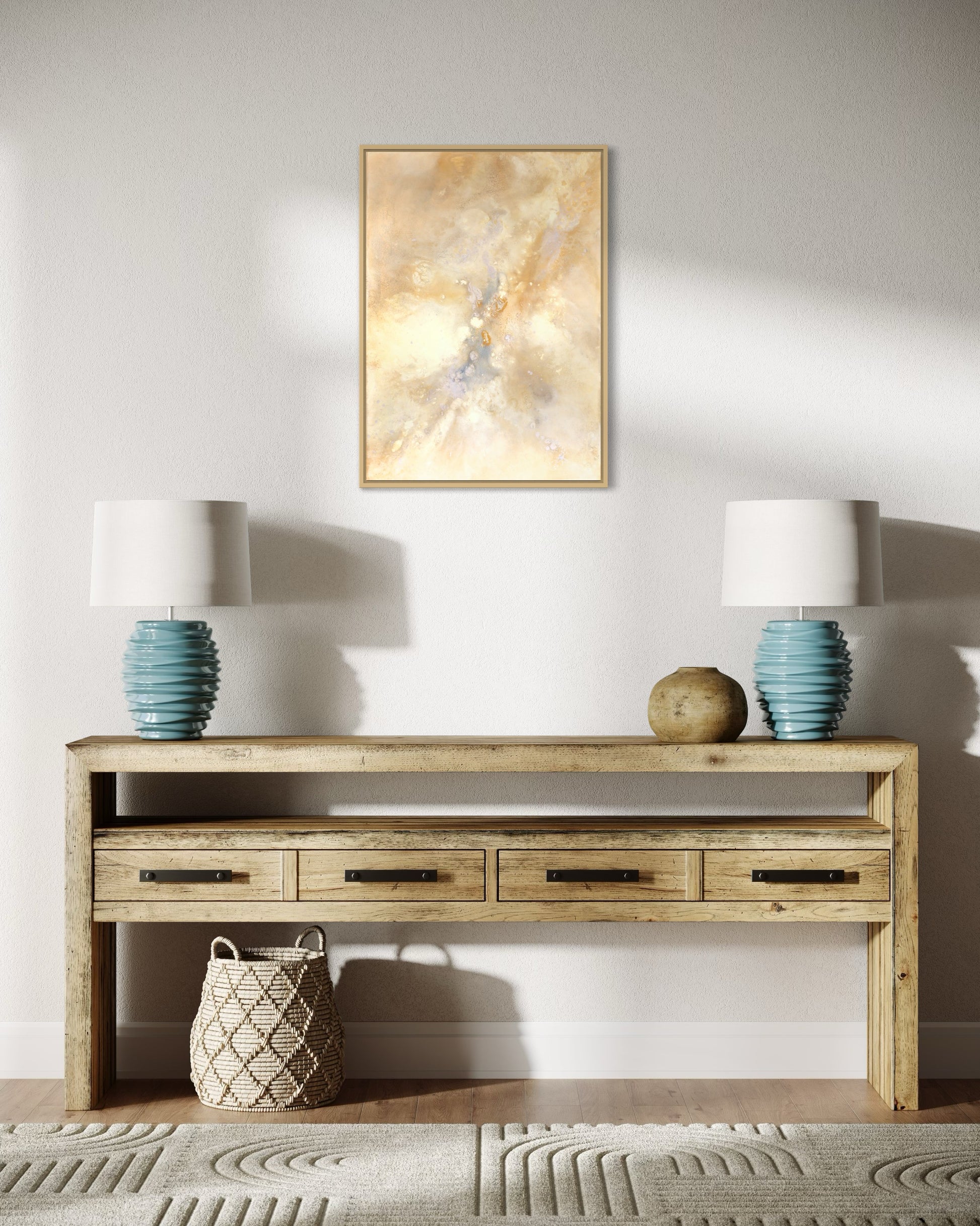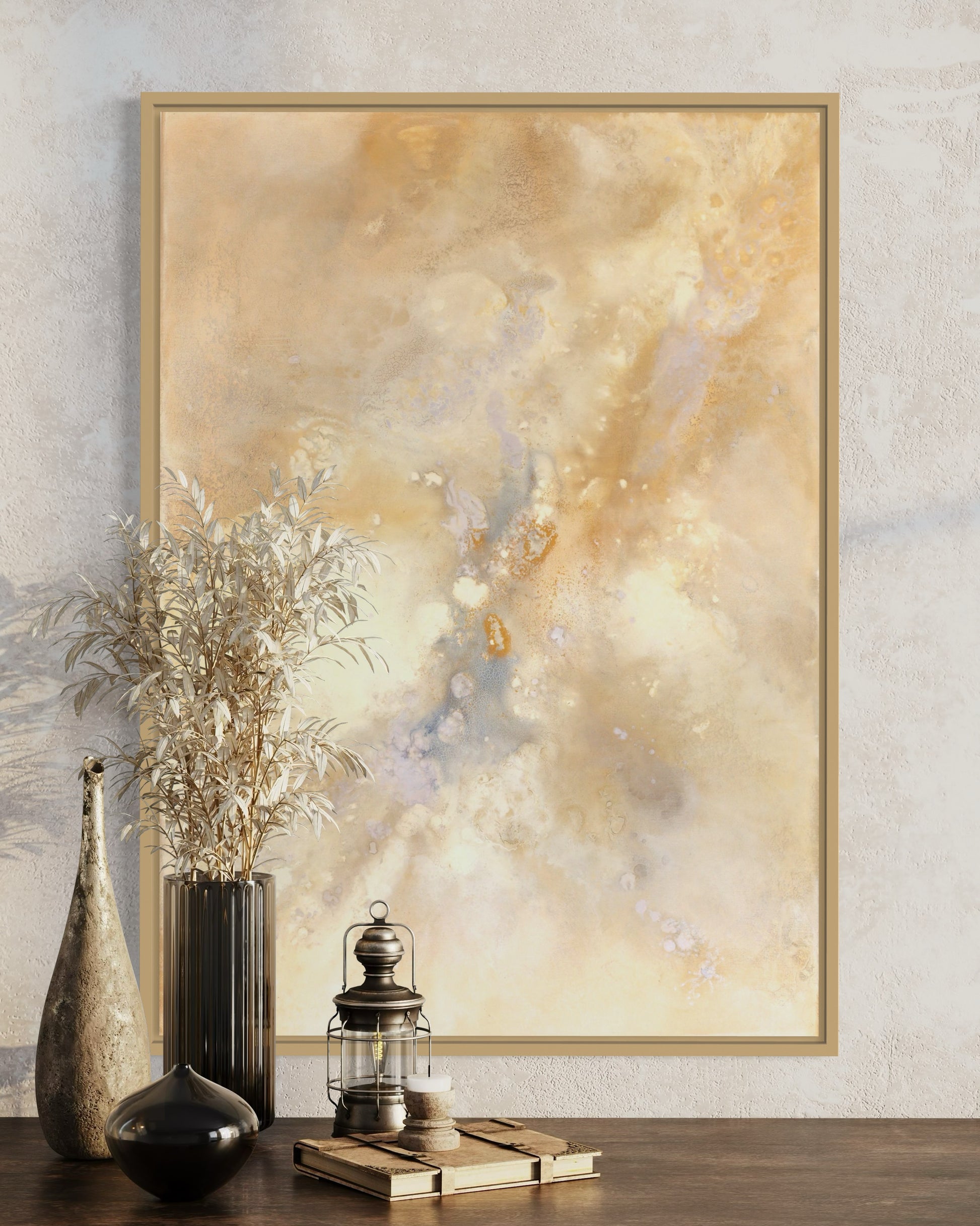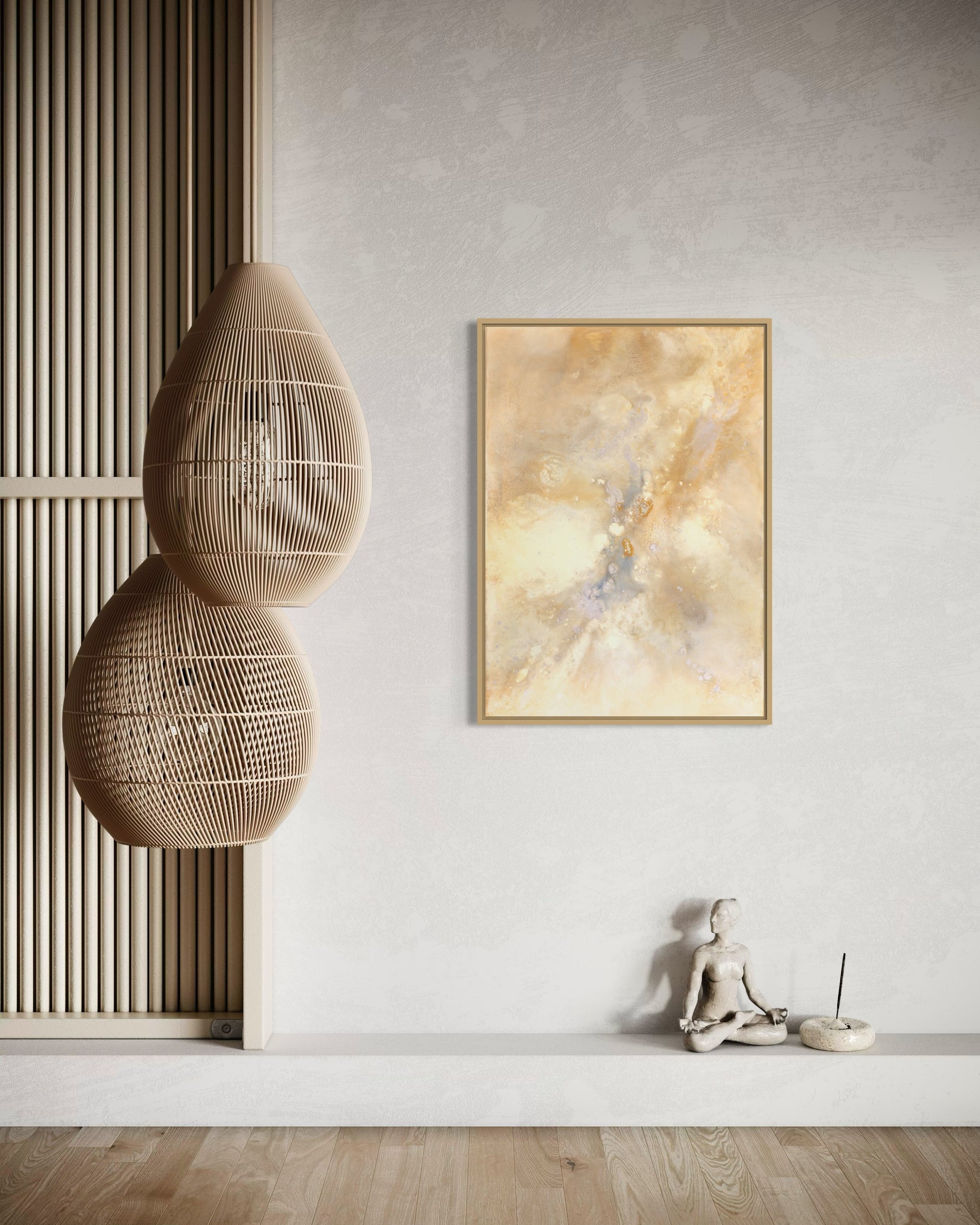 Perfekt für Wohnräume, Büros oder Galerien – "Elysium" bringt eine zeitlose Eleganz in jeden Raum. Gönn Dir ein Stück Paradies und lass Dich von der magischen Aura dieses Gemäldes verzaubern.