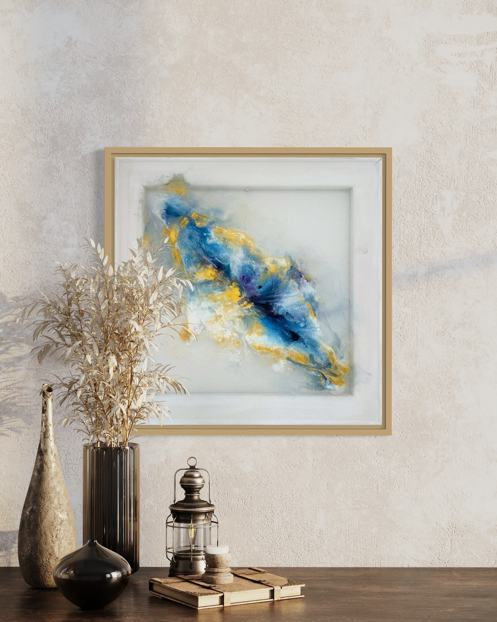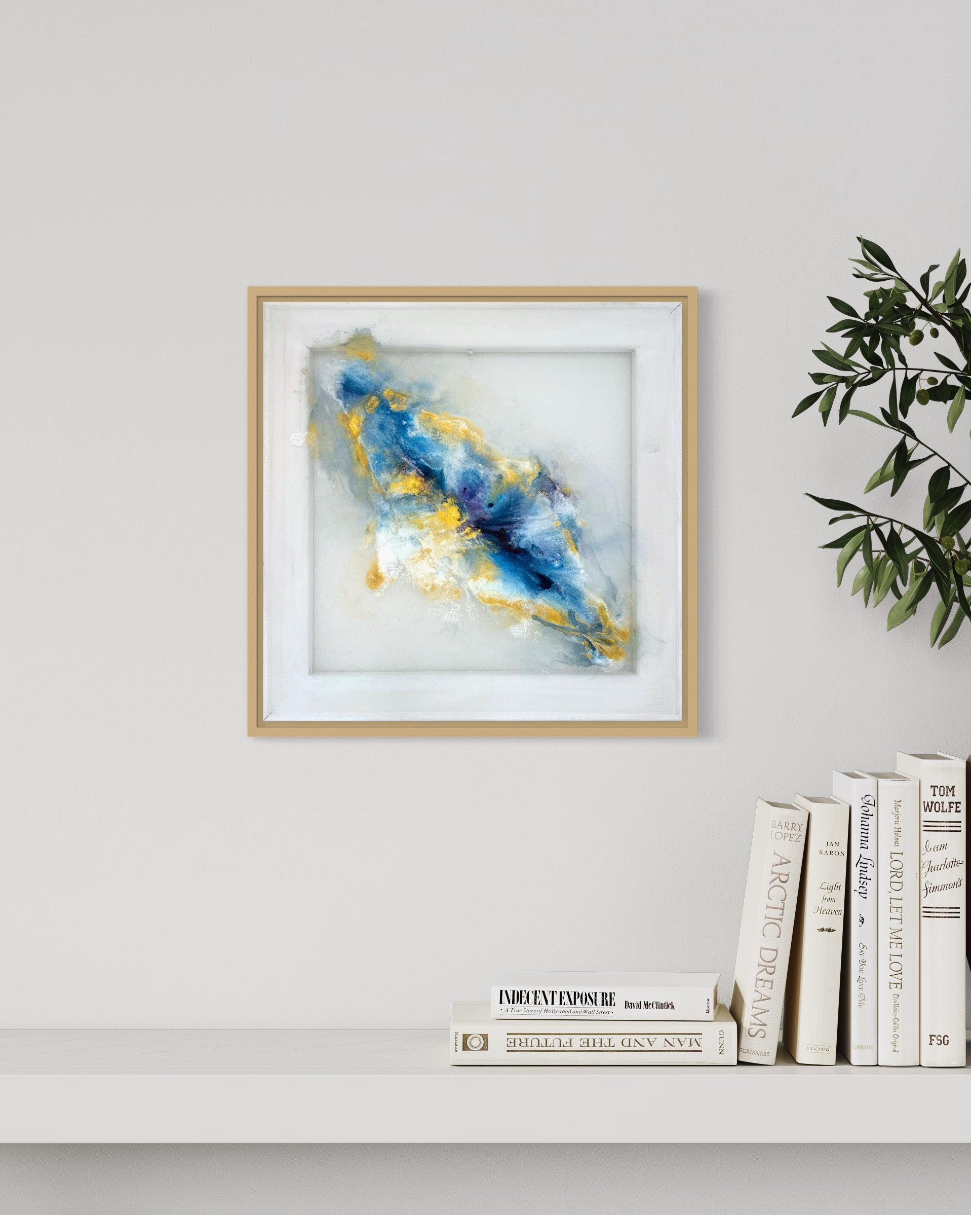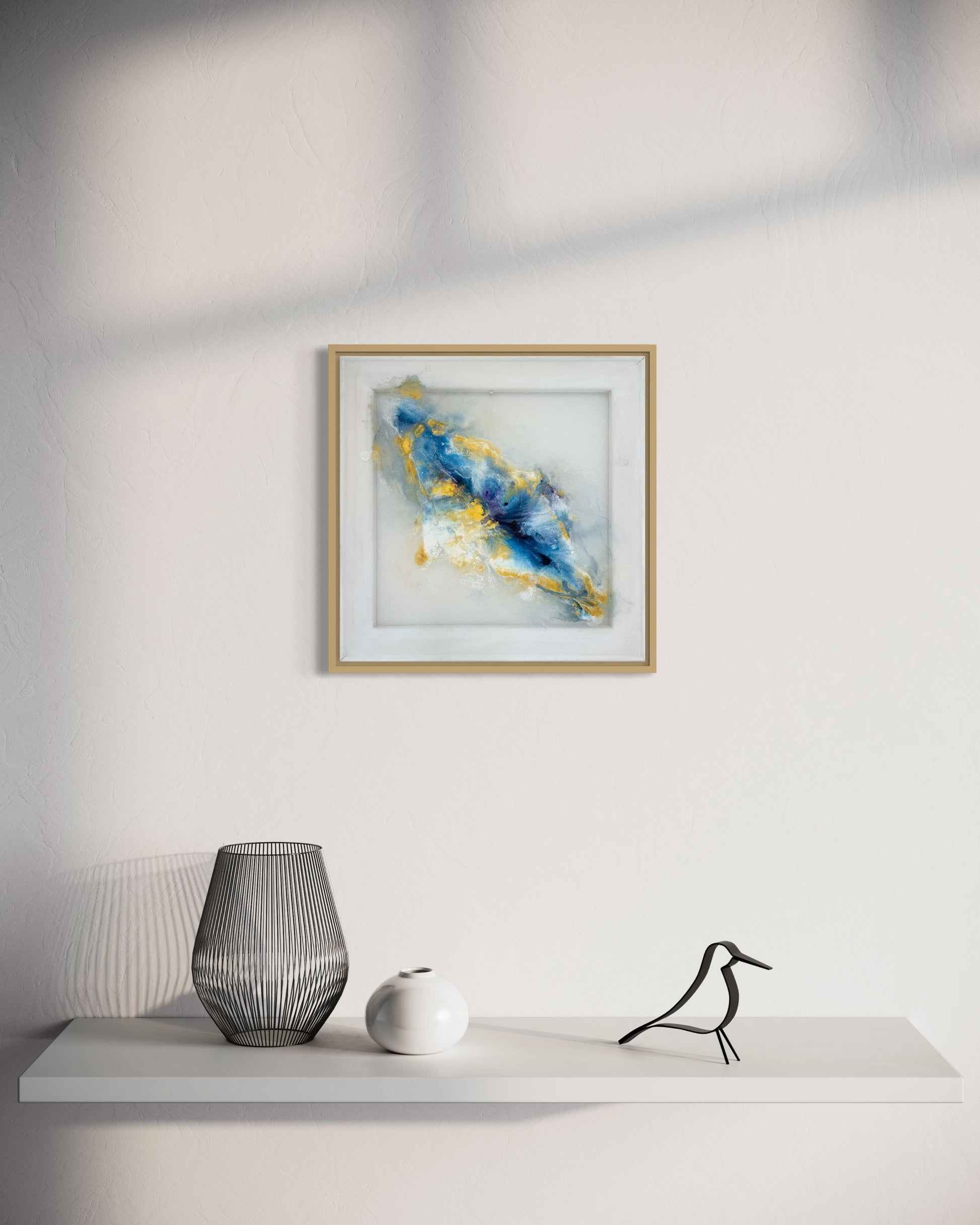 Erwecke mit meinem faszinierenden Kunstwerk "Himmelsfluss" deine Sinne zum Leben. Dieses atemberaubende Gemälde, präsentiert auf einer transparenten Leinwand und eingefasst in einen eleganten Rahmen, fängt die subtile Schönheit eines Flusses aus Blau, Gold, Lila und Weiß ein, der sanft von einer Ecke in die andere fließt. Jedes Detail dieses 40x40 cm großen Meisterwerks wurde mit Liebe und Sorgfalt geschaffen, um eine harmonische Atmosphäre zu schaffen. Ob in einem Wohnzimmer, Büro oder Empfangsbereich, dieses Kunstwerk verleiht jedem Raum eine ätherische Note. Tauche ein in die ruhige Eleganz von "Himmelsfluss" und lasse dich von seiner zeitlosen Schönheit verzaubern.