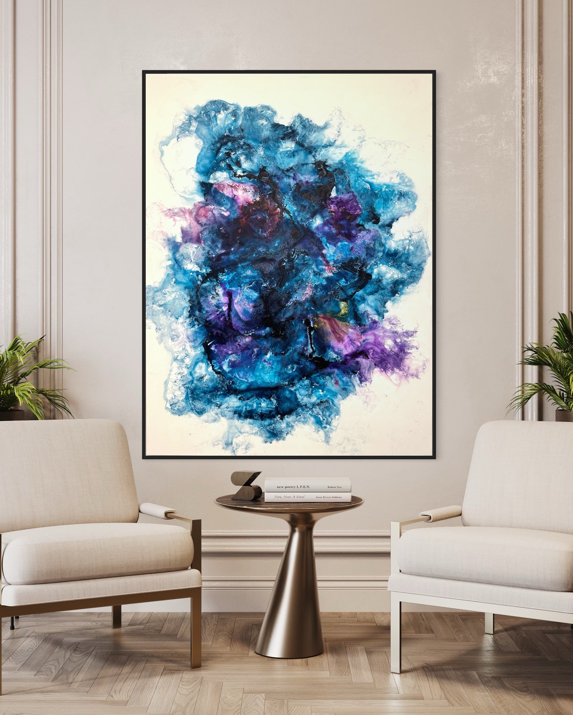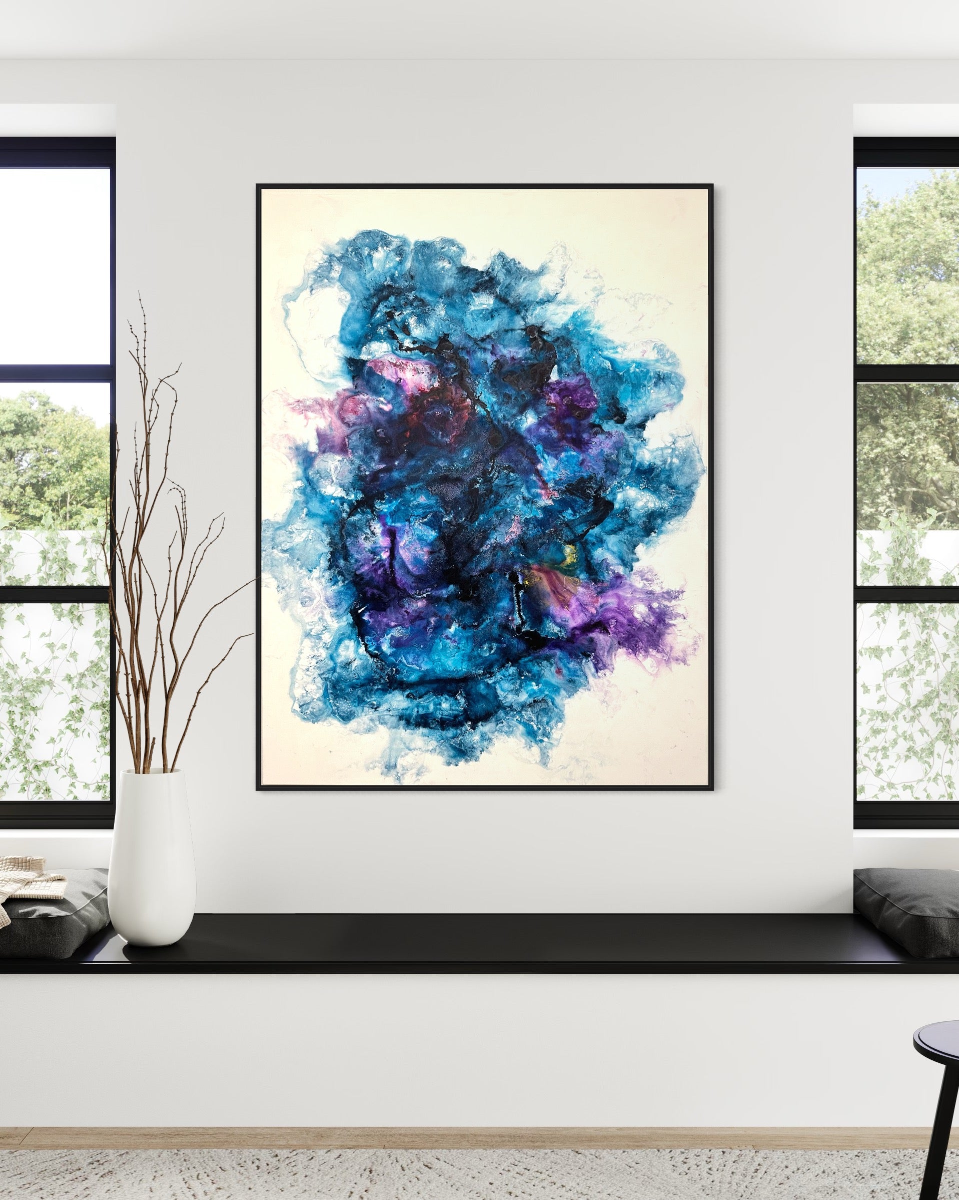 Der Titel "Aura" spiegelt die besondere Ausstrahlung und die energetische Präsenz des Gemäldes wider. Es bringt eine inspirierende und beruhigende Atmosphäre in jeden Raum und ist perfekt geeignet für moderne Wohnräume, Galerien oder Geschäftsräume.