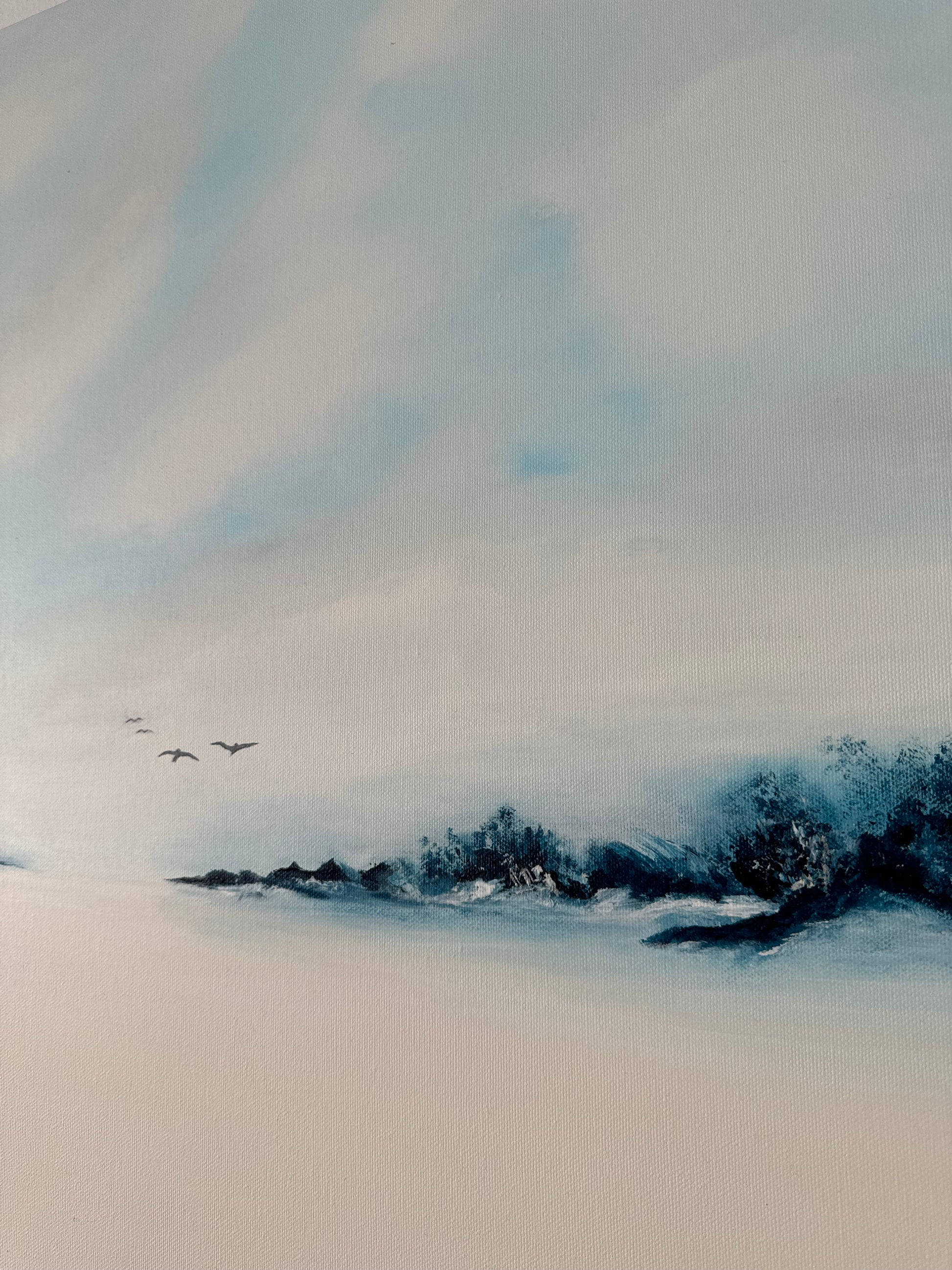 Soul Flight ist ein handgemaltes Acrylgemälde auf Leinwand – ein echtes Unikat. Mit ruhigen Farben, klarer Komposition und viel Gefühl bringt es Leichtigkeit und Balance in deinen Raum. Es eignet sich wunderbar als stilvolle Wanddekoration – ob für dein Zuhause, deine Praxis oder dein Büro.
