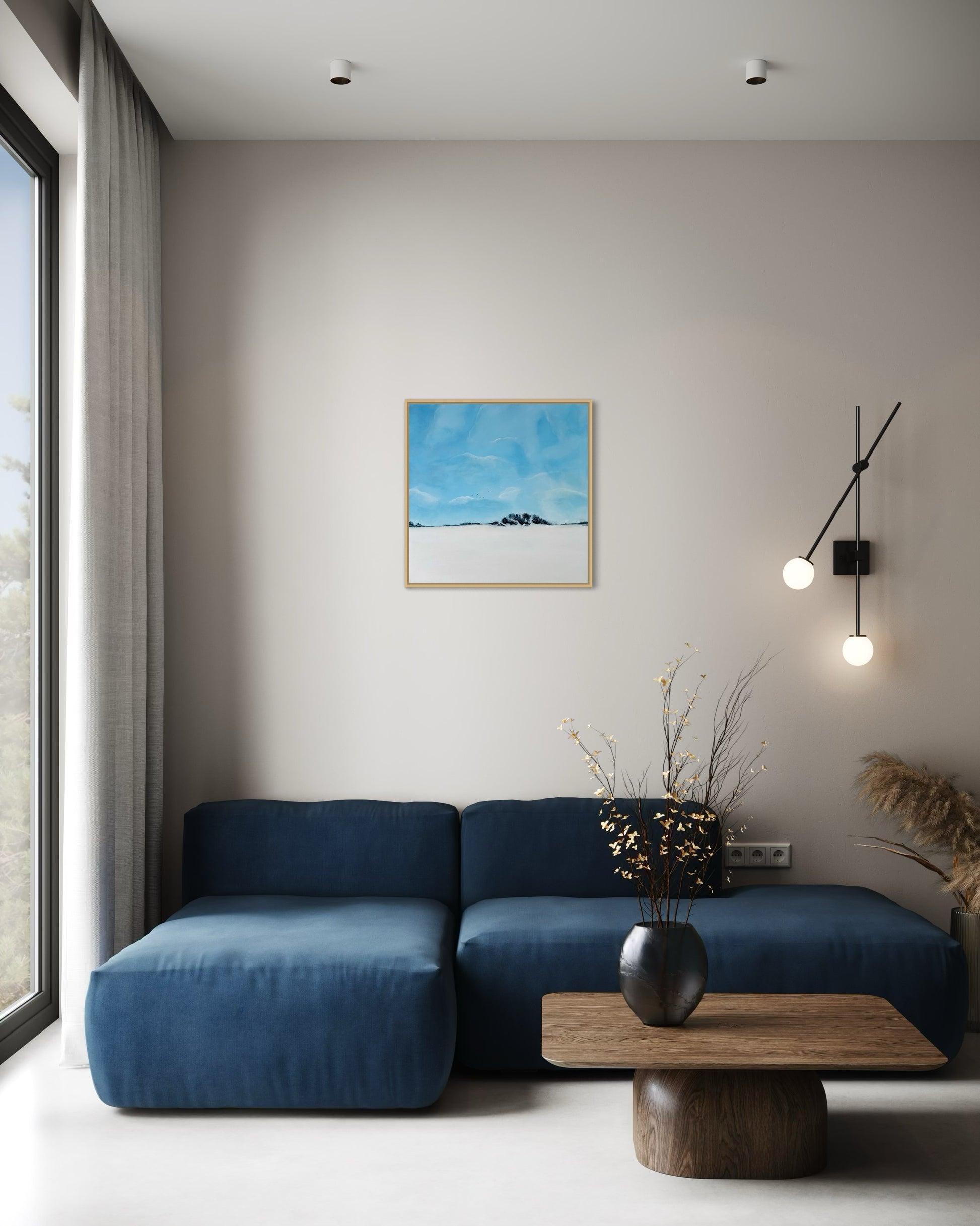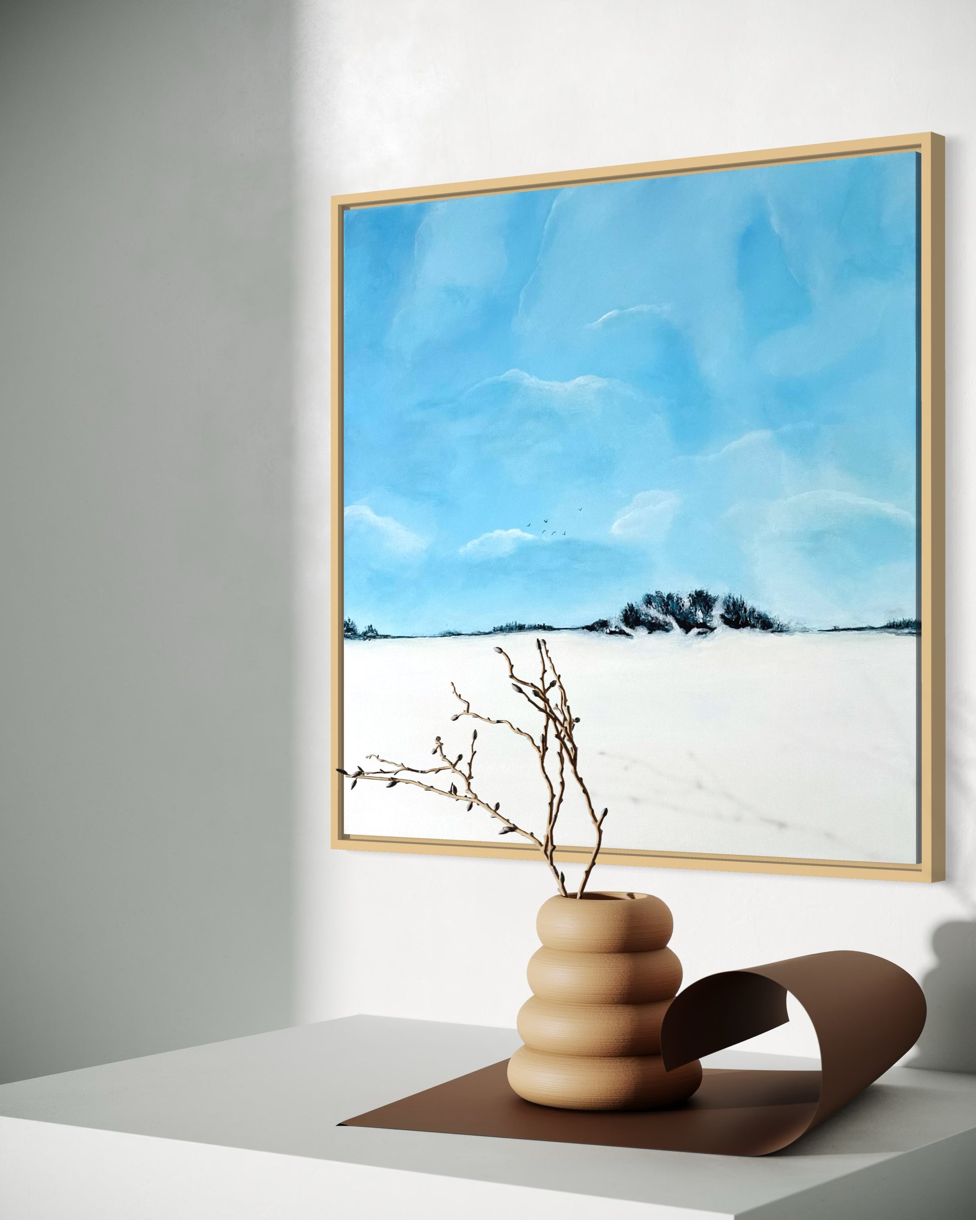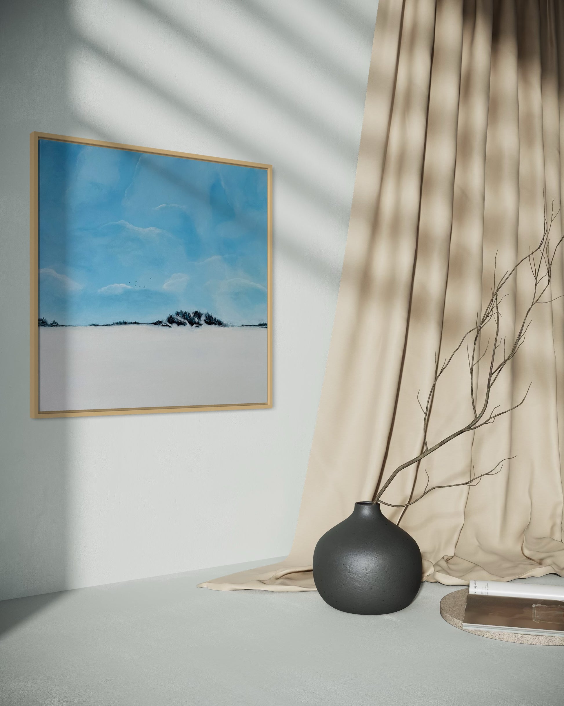 Ob im Wohnzimmer, Büro oder Meditationsraum – dieses Bild schafft Raum für Weite, Klarheit und ein stilles Gleichgewicht. Für Menschen, die zeitgenössische, reduzierte Kunst schätzen und nach Bildern suchen, die mehr sind als bloße Dekoration.