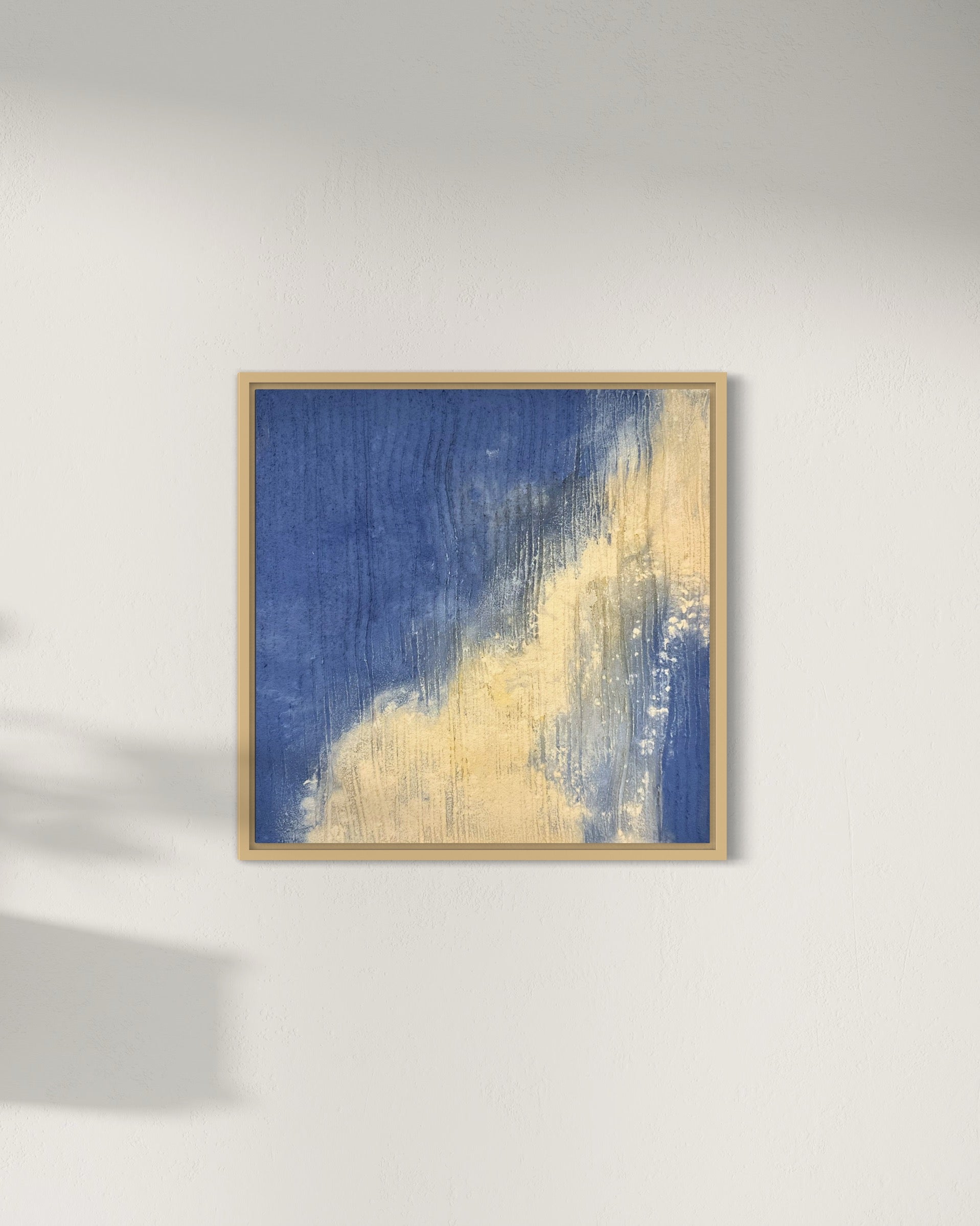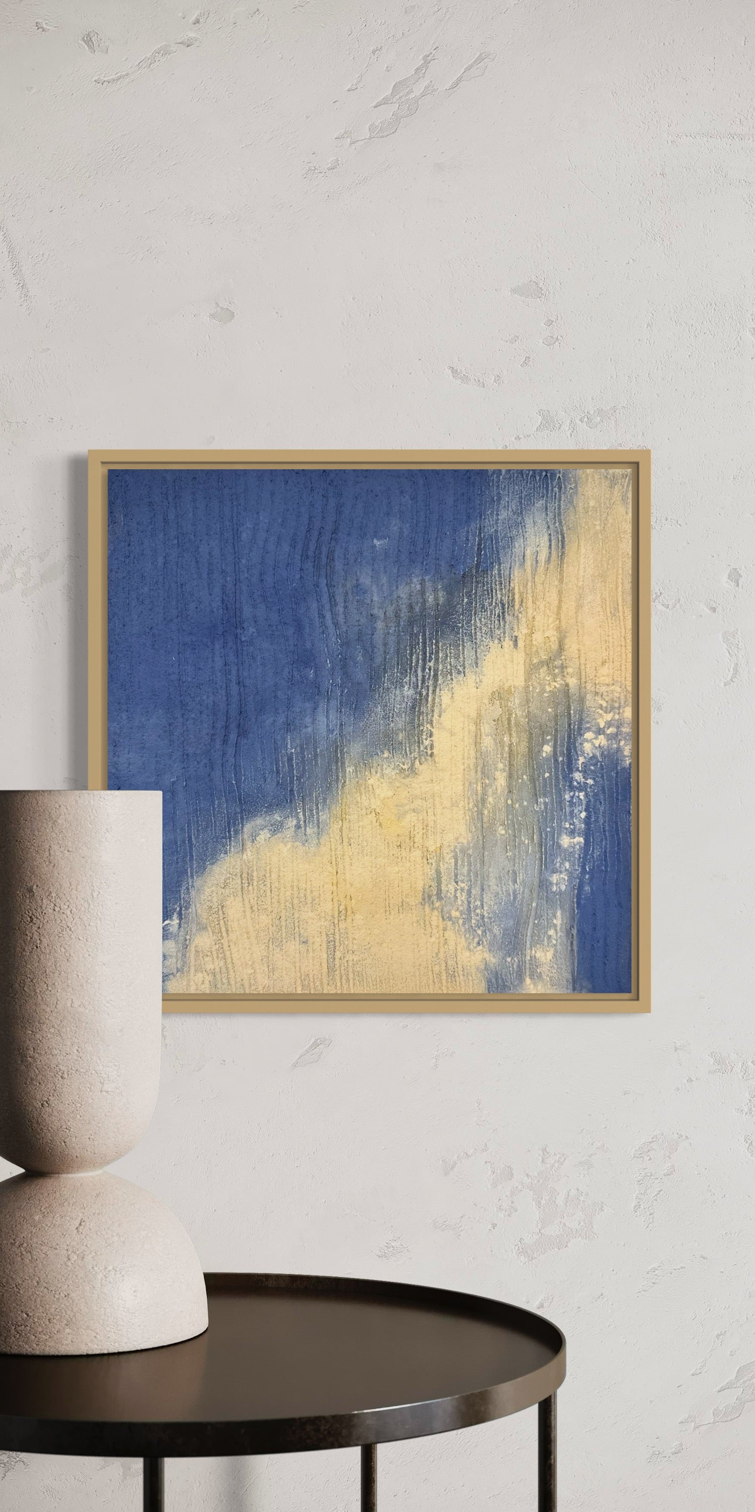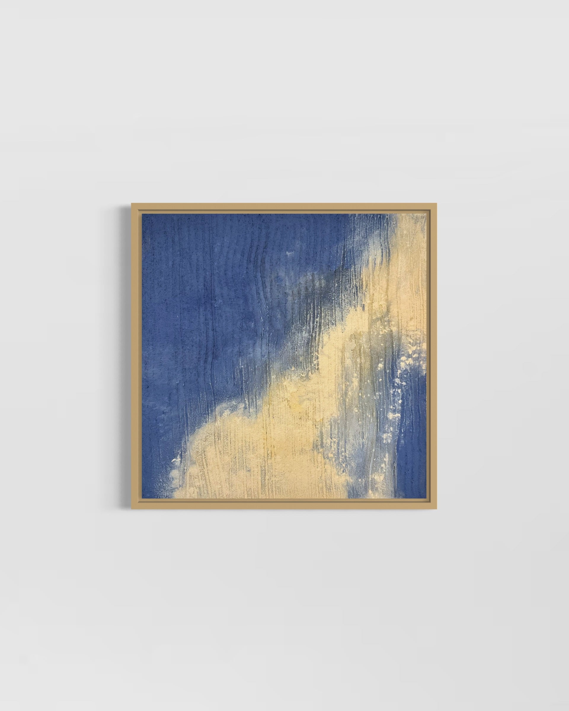 "Soft Light" verkörpert die Essenz von Wabi-Sabi – die Schönheit des Einfachen, Natürlichen und Unvollkommenen. Die harmonischen Blau- und Goldtöne, kombiniert mit der lebendigen Struktur, schaffen ein Kunstwerk, das sowohl zeitlose Eleganz als auch eine beruhigende Atmosphäre ausstrahlt.