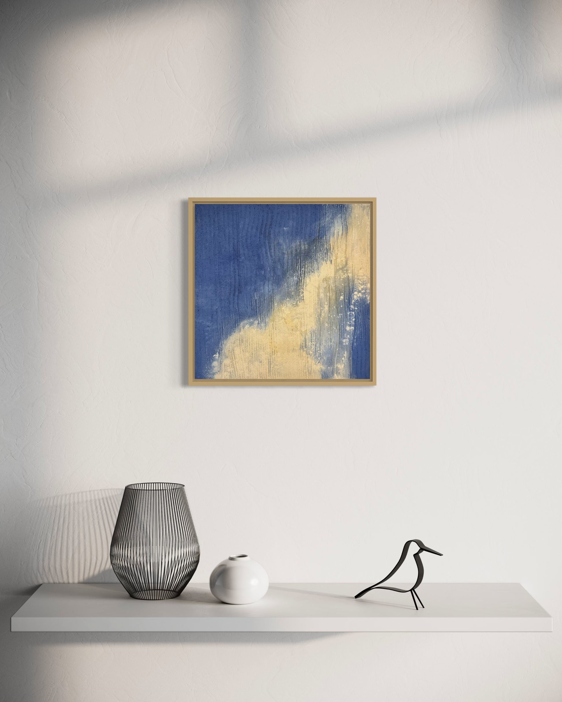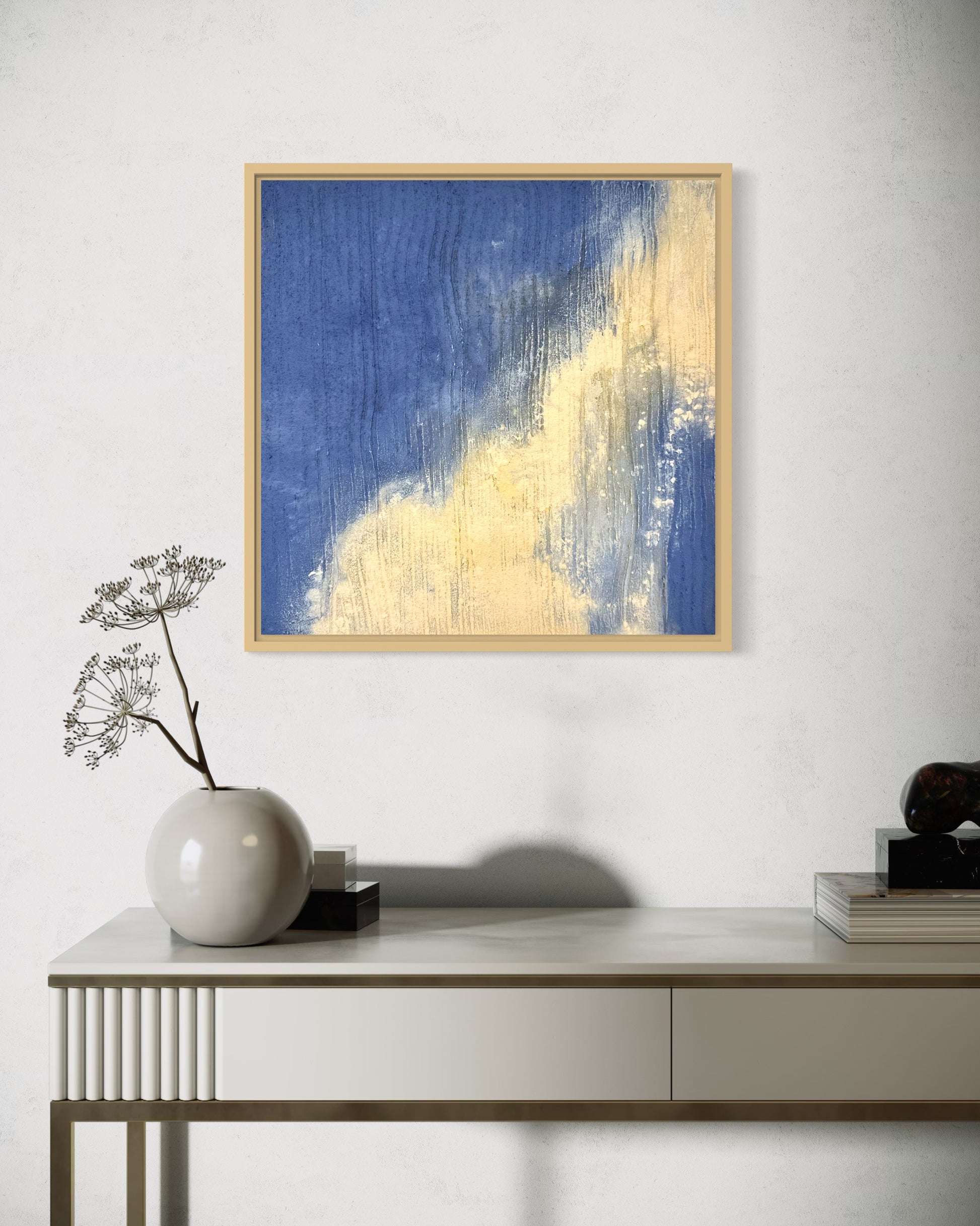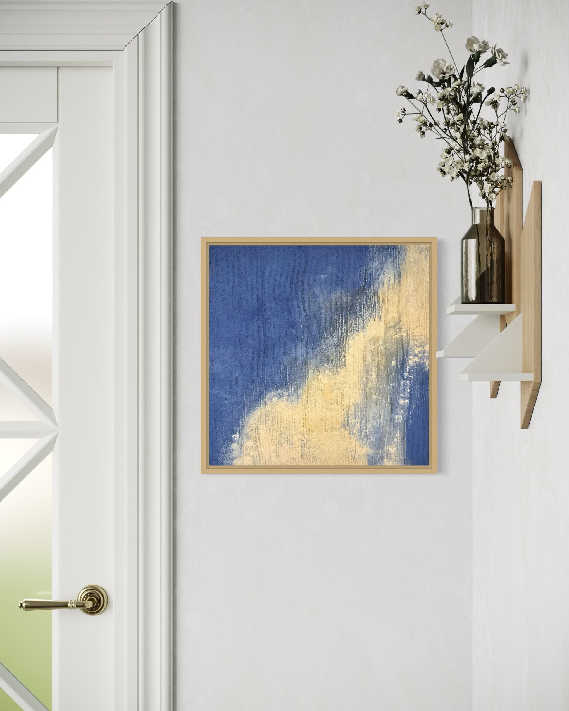 "Soft Light" verkörpert die Essenz von Wabi-Sabi – die Schönheit des Einfachen, Natürlichen und Unvollkommenen. Die harmonischen Blau- und Goldtöne, kombiniert mit der lebendigen Struktur, schaffen ein Kunstwerk, das sowohl zeitlose Eleganz als auch eine beruhigende Atmosphäre ausstrahlt.