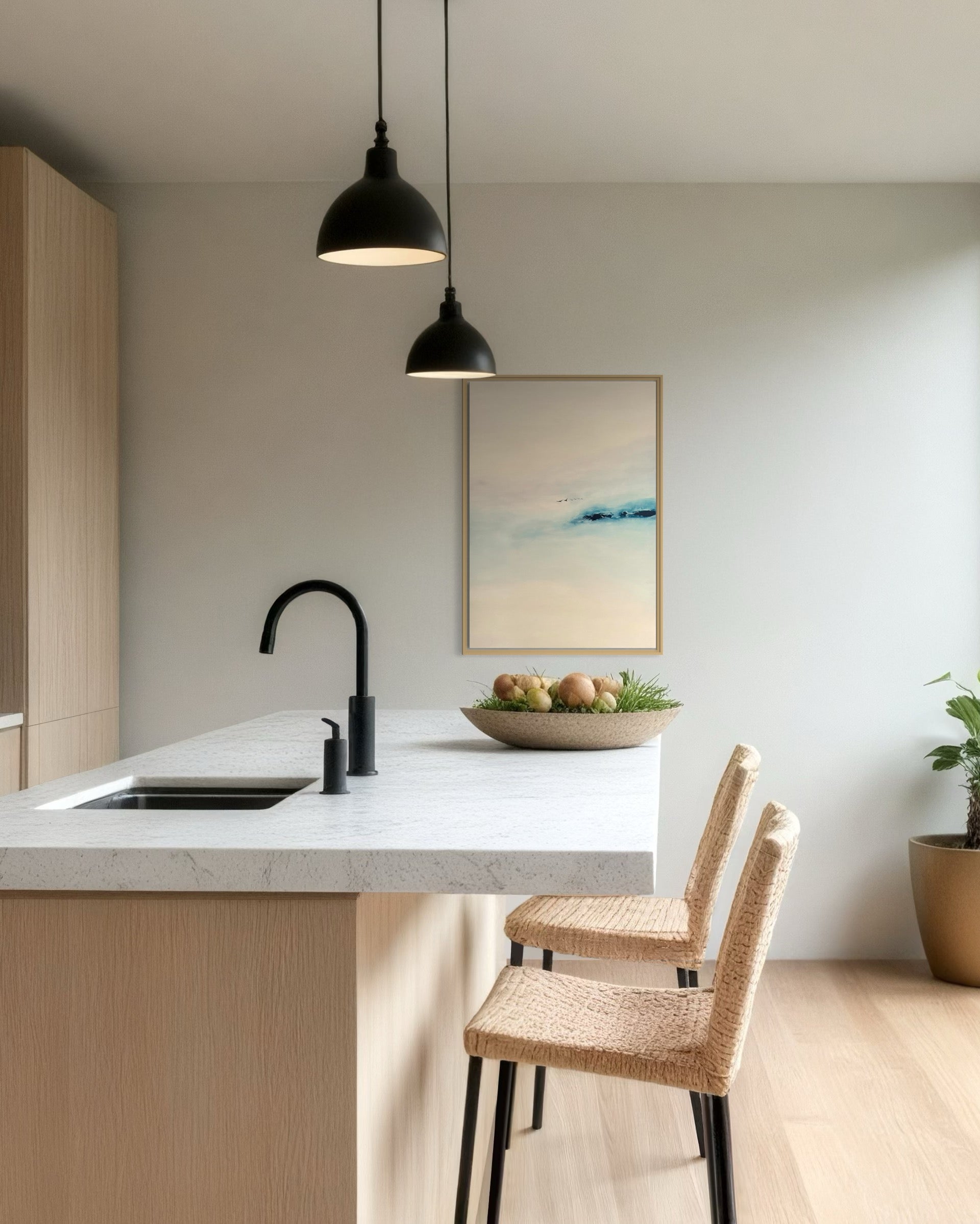 Mit "Calm" holst du dir ein modernes und harmonisches Kunstwerk nach Hause. Das handgemalte Bild in der Größe 100 x 70 cm besticht durch seine sanfte Farbgestaltung und die klare Komposition. Es fügt sich mühelos in jede Einrichtung ein und schafft eine ruhige, angenehme Atmosphäre – egal ob im Wohnraum, Büro oder einem anderen Bereich.