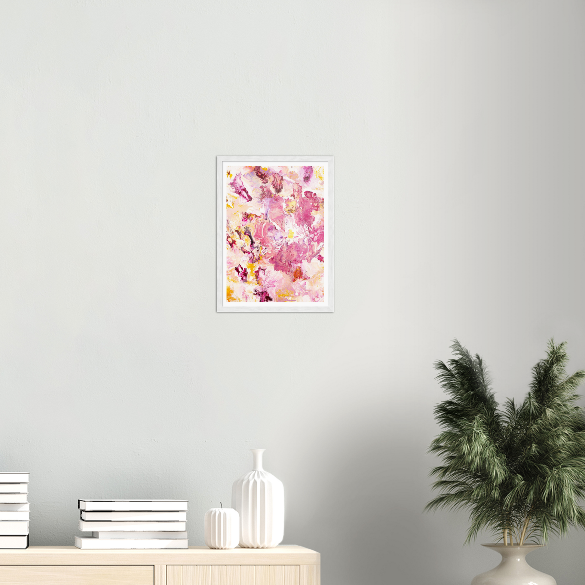 Pink Rose Print auf Premium Matt Papier mit Holzrahmen